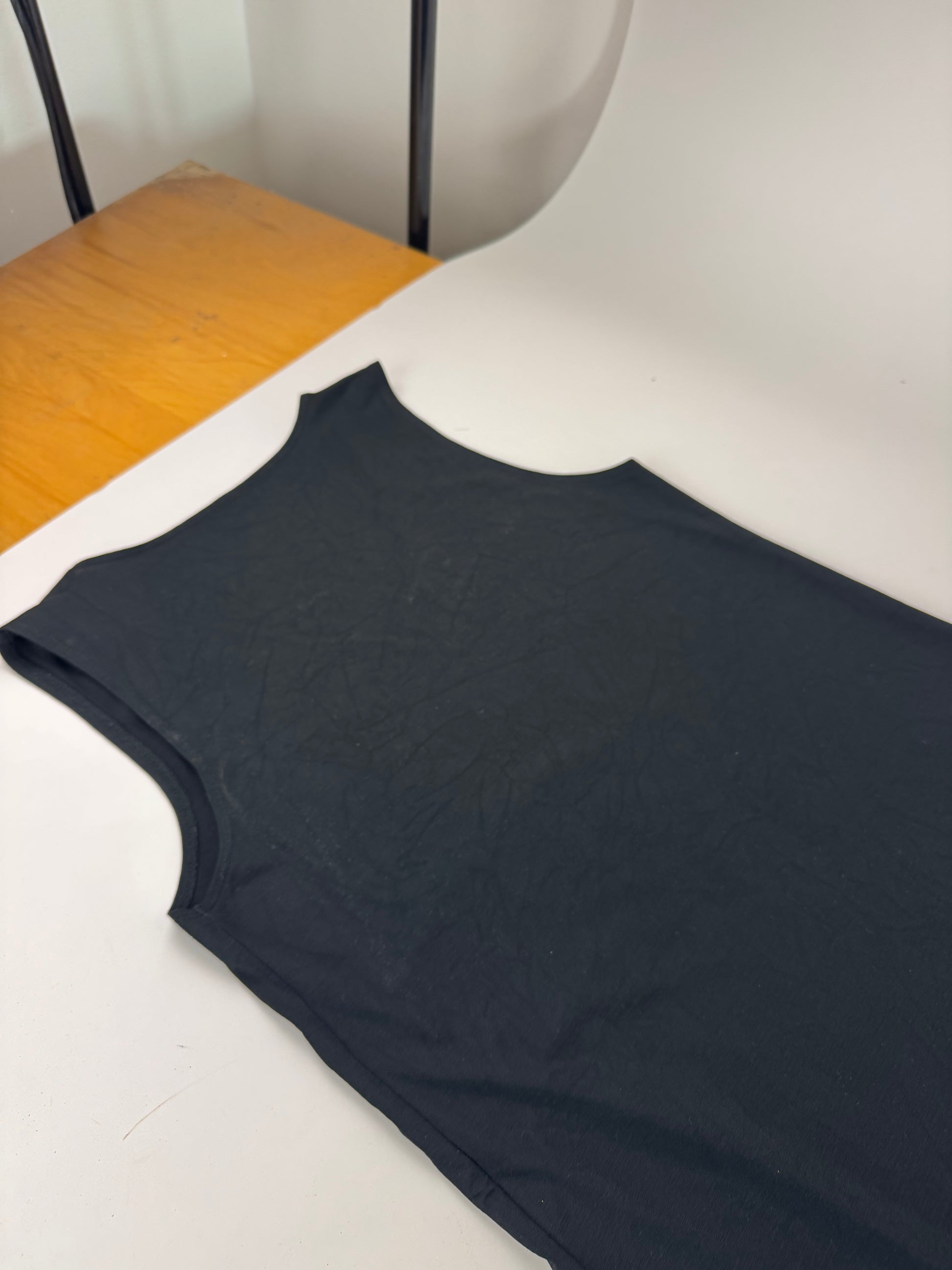 ISSEY MIYAKE Vintage Dress. This elegant vintage dress is crafted from a soft and flexible black fabric blend consisting of 70% viscose, 20% polyester, and 10% elastane. The design reflects Issey Miyake’s innovative approach to modern silhouettes and wearable comfort. The dress is presented on a mannequin wearing size 38 / M.