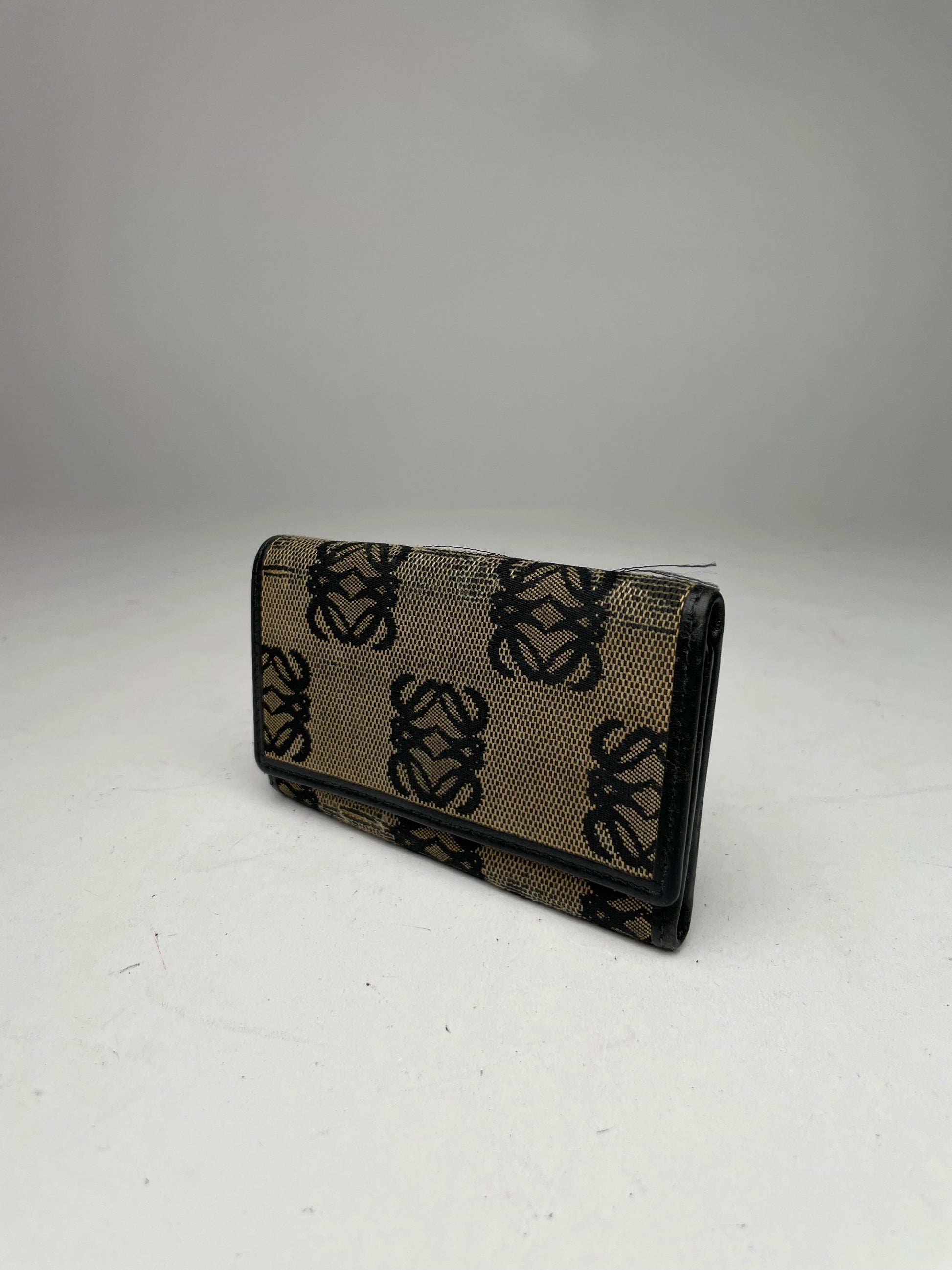 LOEWE MADRID Vintage Key Holder. This classic vintage key holder is crafted from brown and black canvas featuring the iconic Loewe monogram, with a refined leather interior and silver-tone steel hardware.
