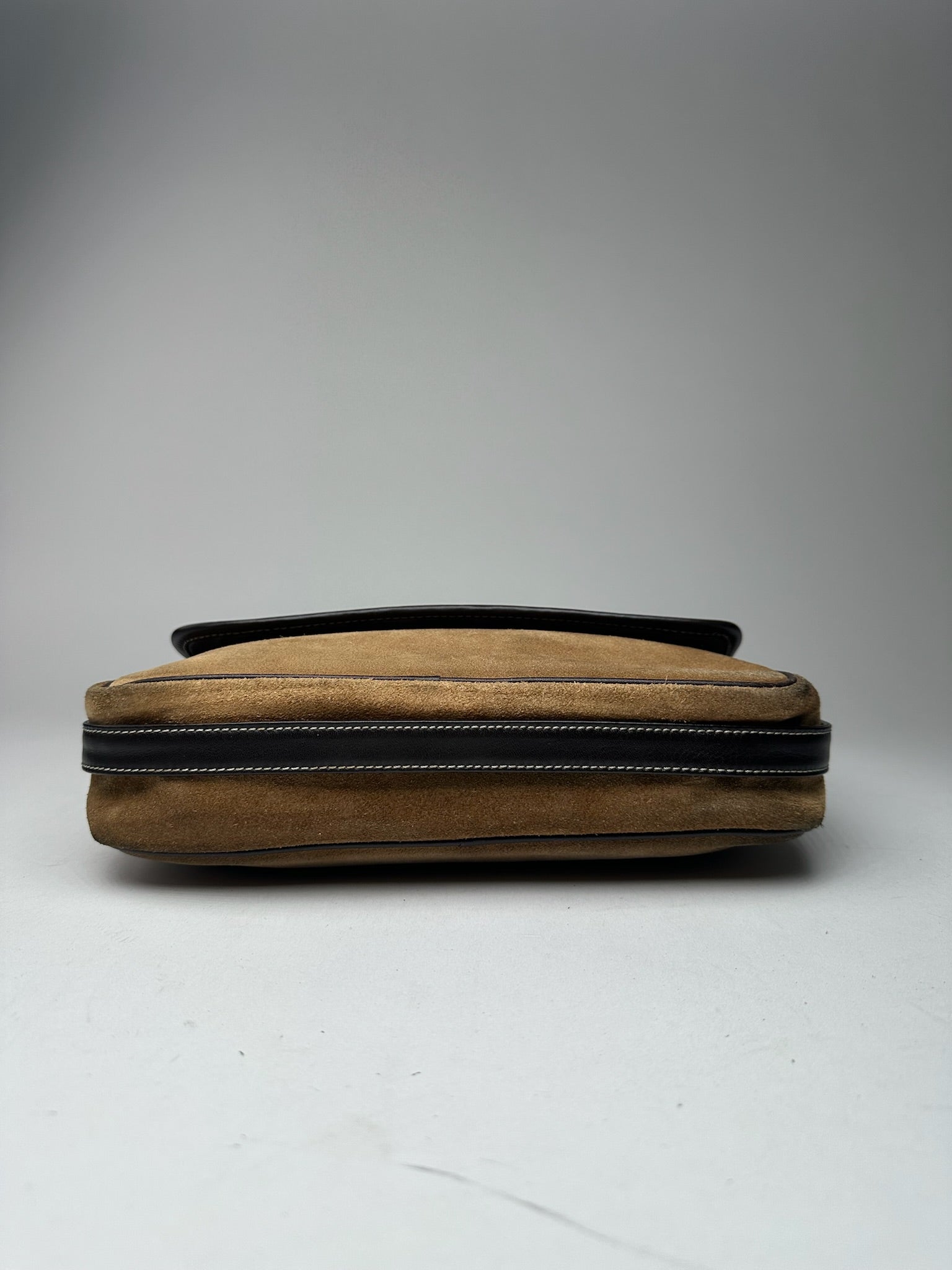 Condition Details: The suede and leather are in very good condition with light signs of wear. The hardware and strap are well preserved.