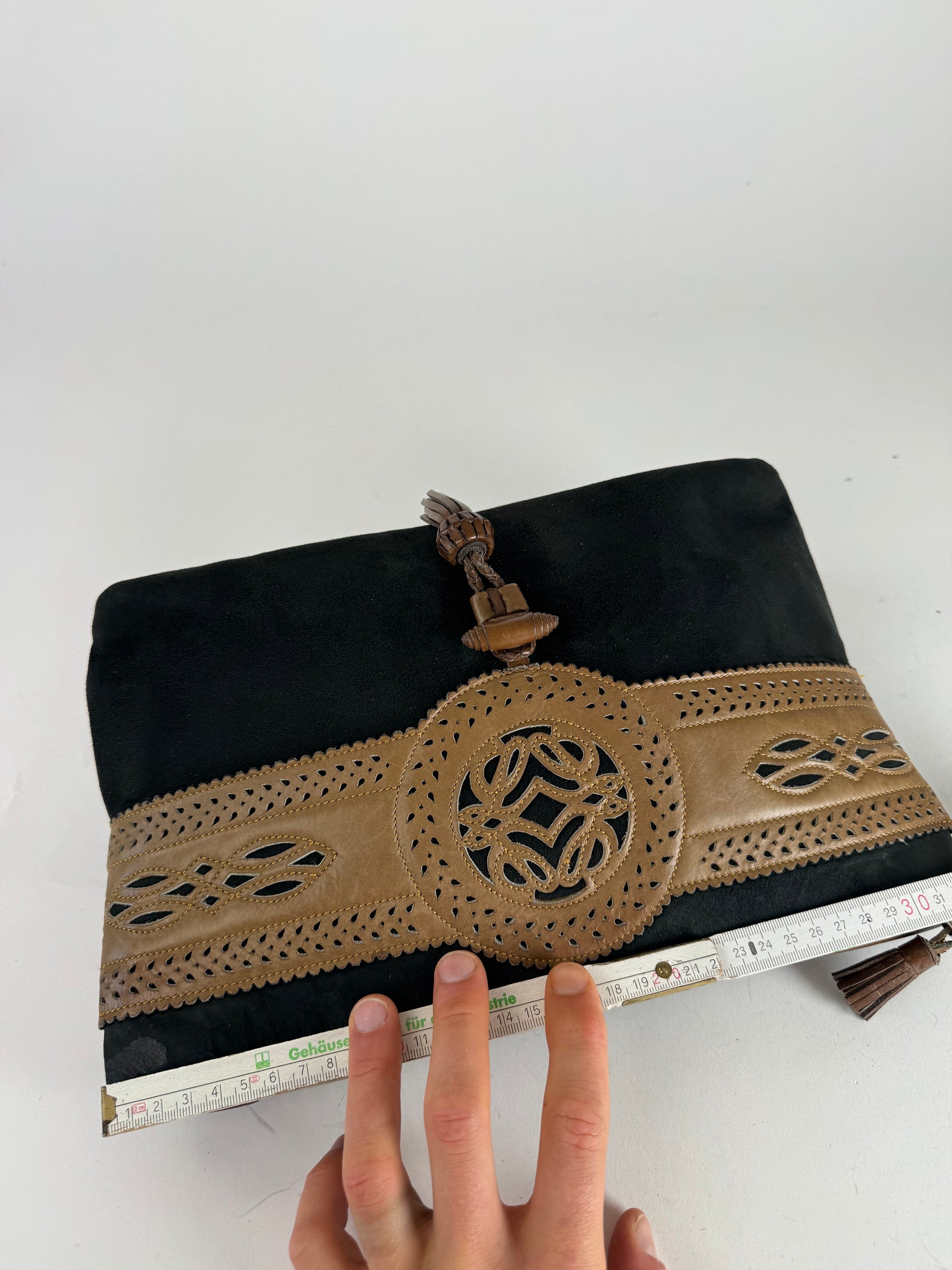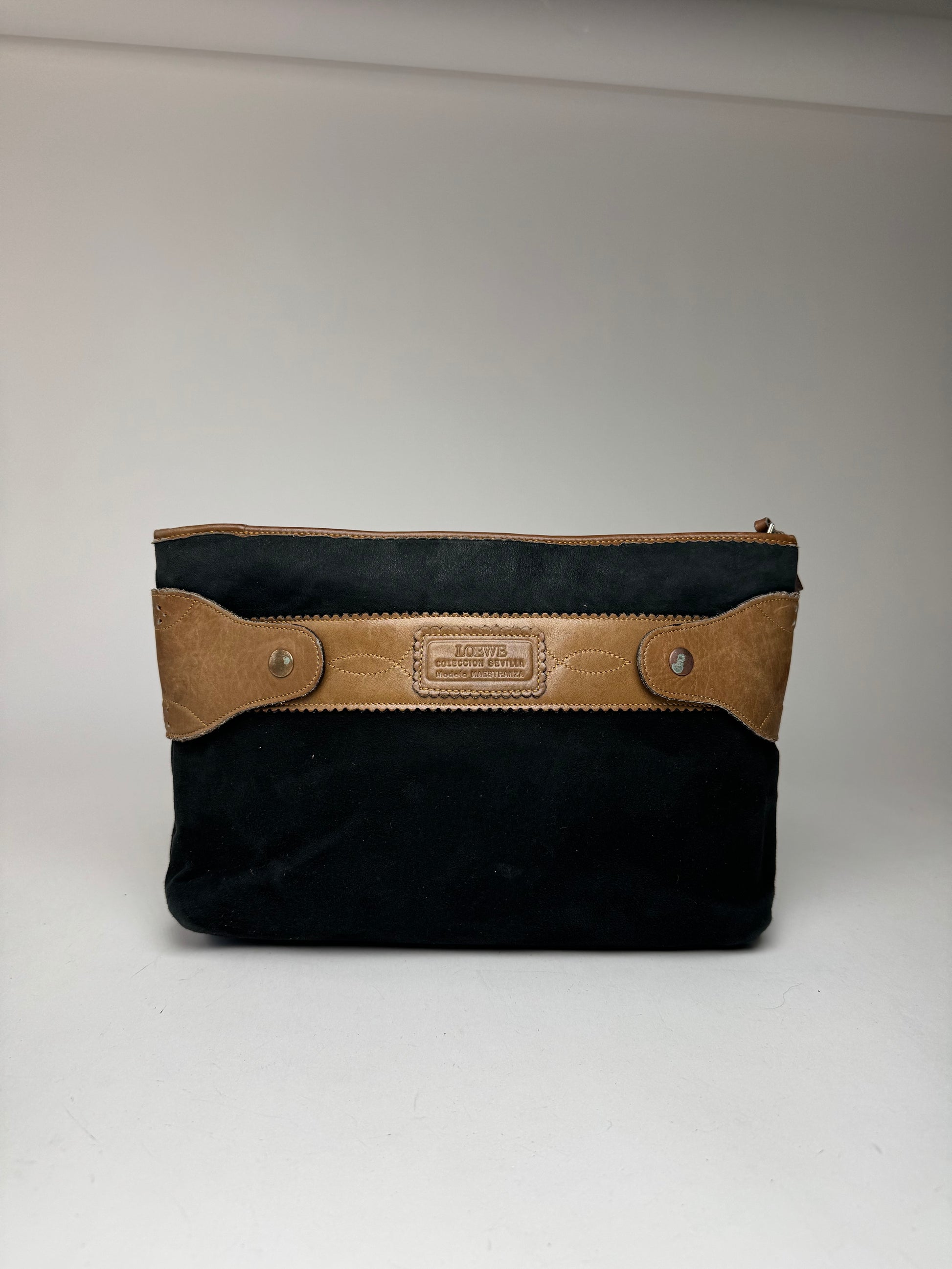 Vintage Loewe Madrid Suede Leather Clutch black brown