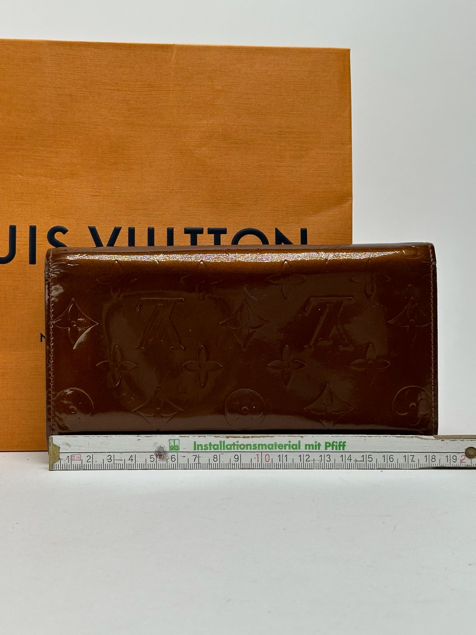 LOUIS VUITTON Gold-Brown Vernis Leather Wallet.