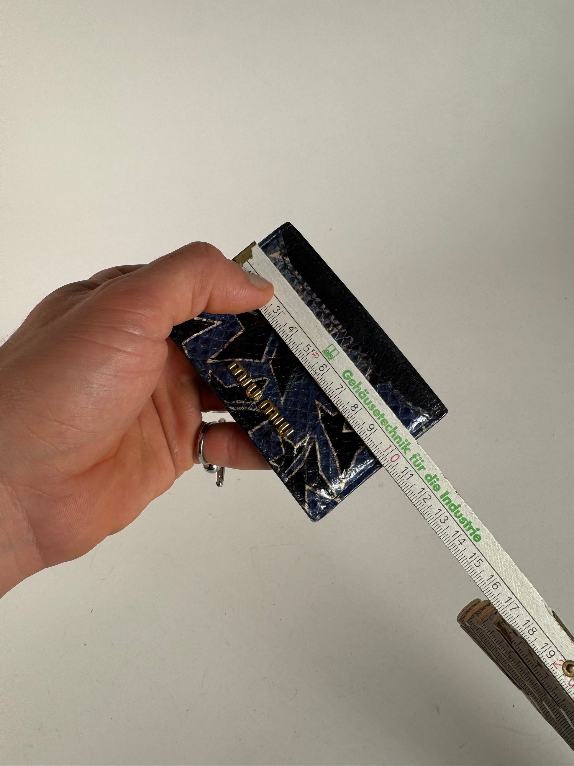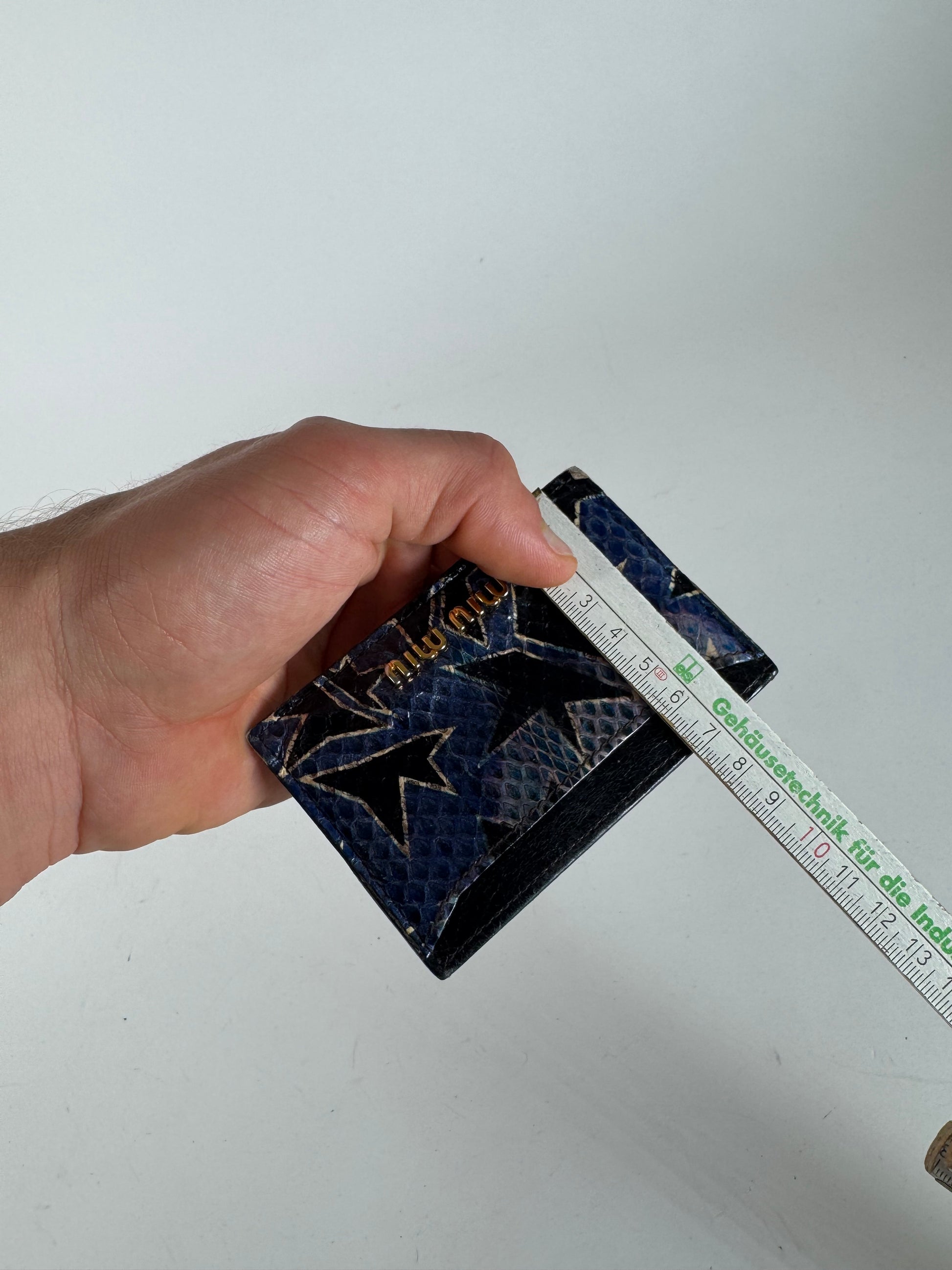 MIU MIU Vintage Card Holder. This vintage Miu Miu card holder is crafted from black snake-embossed leather and features a gold-tone steel hardware finish. The surface is adorned with a subtle star pattern , adding a unique and stylish touch. A sleek and modern unisex accessory in very good condition .