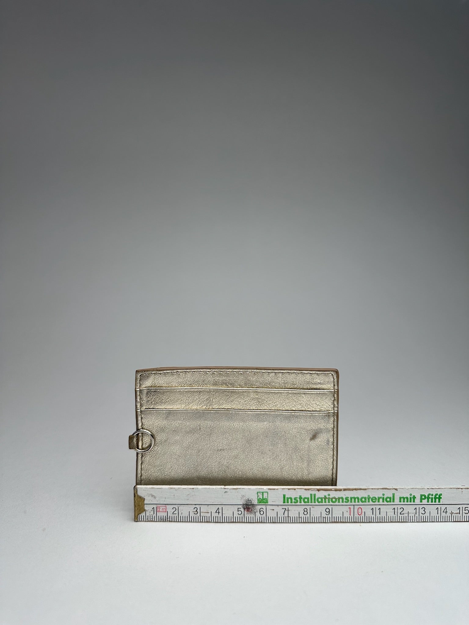 Condition Details: The leather shows stains and scratches, but overall the card holder is in very good condition.