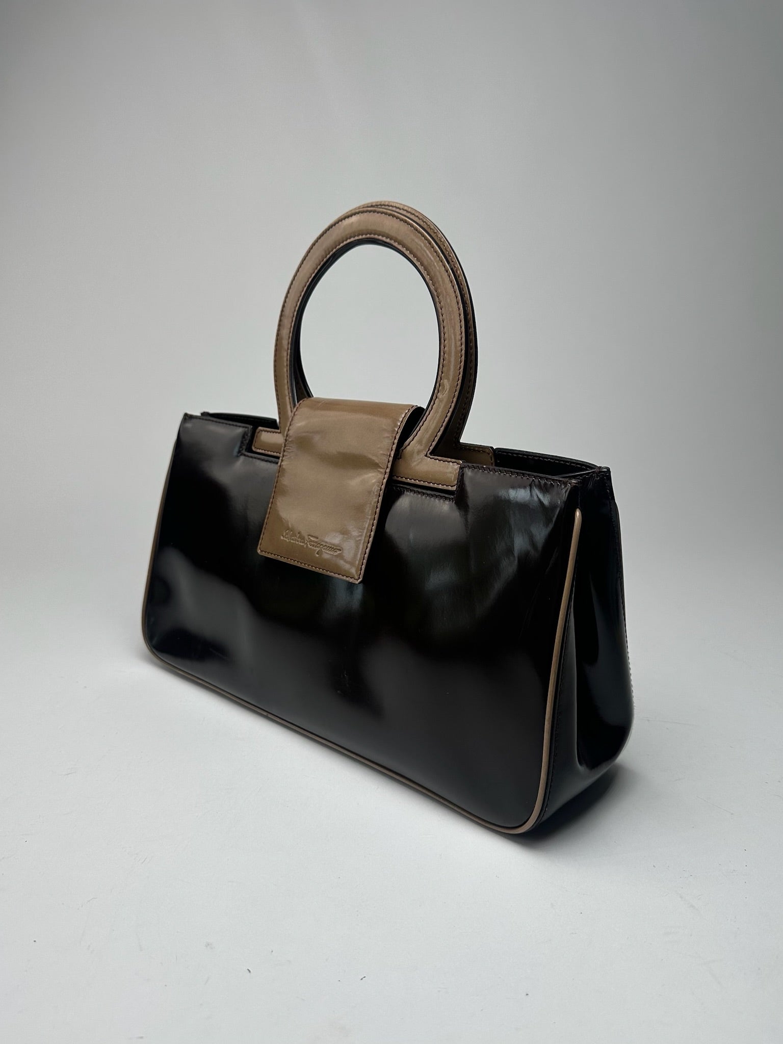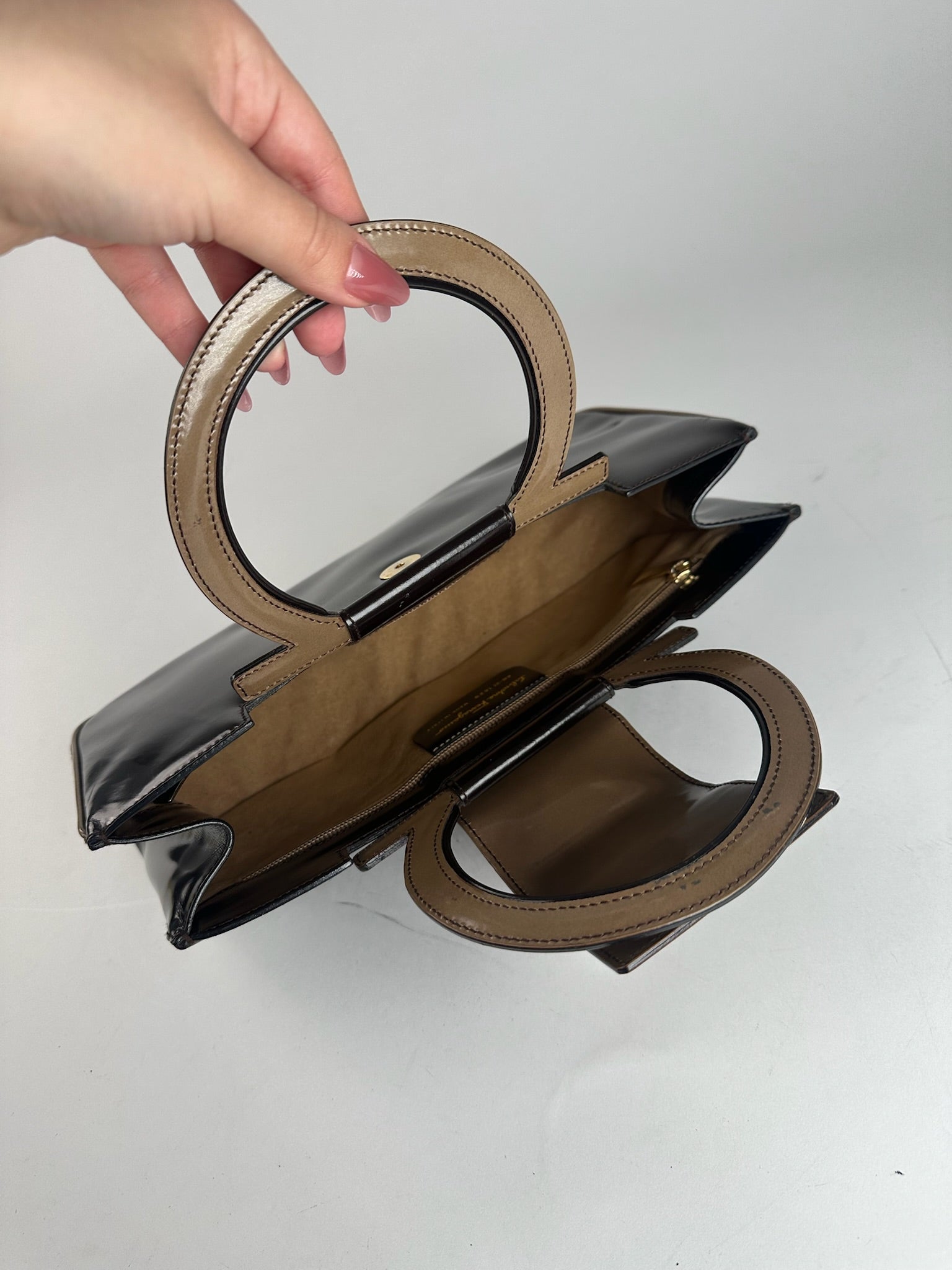 Vintage Salvatore Ferragamo Patent Leather Bag black brown
