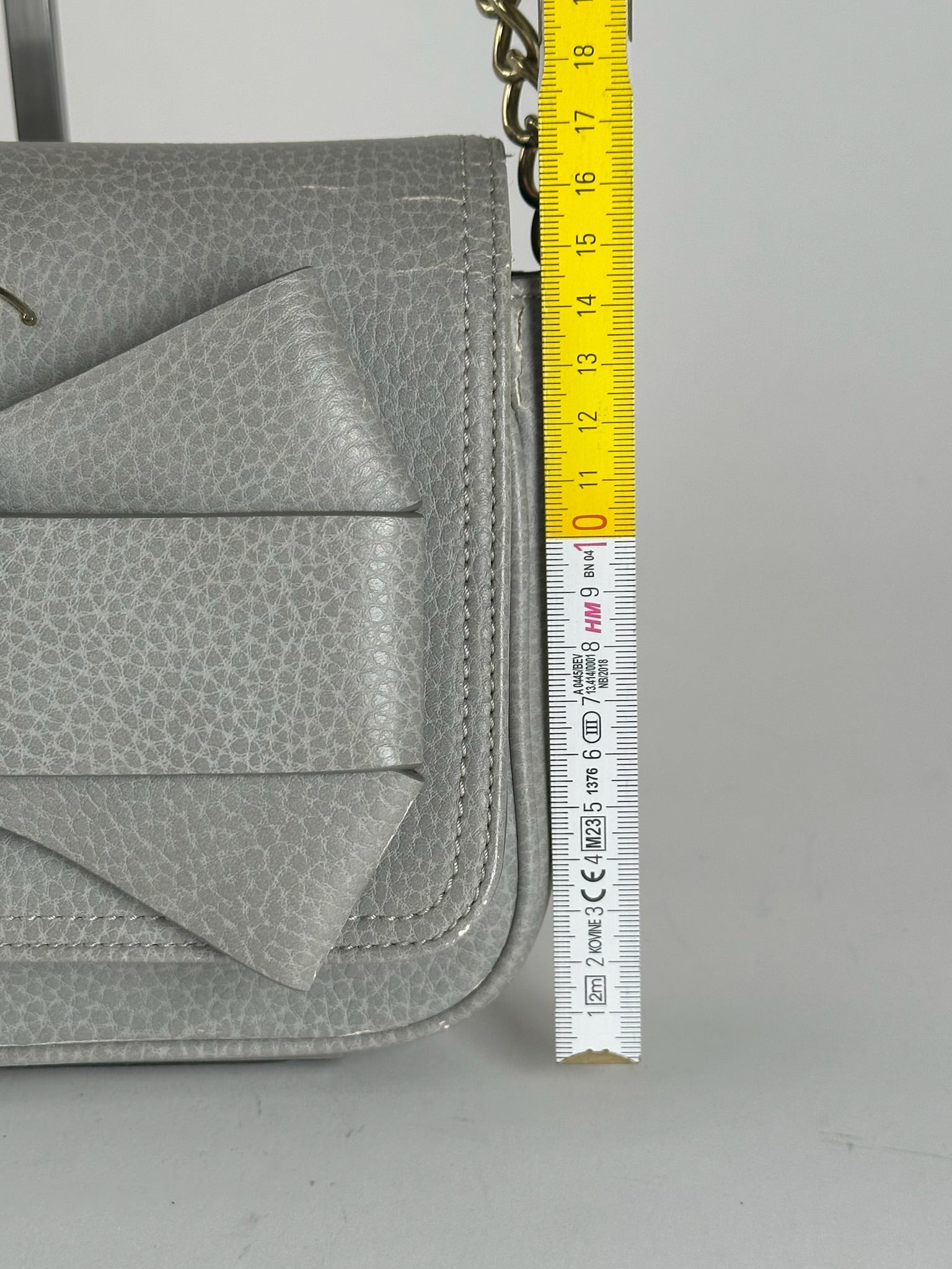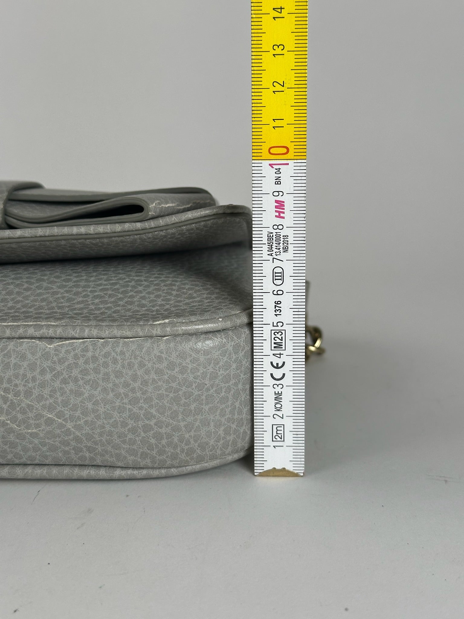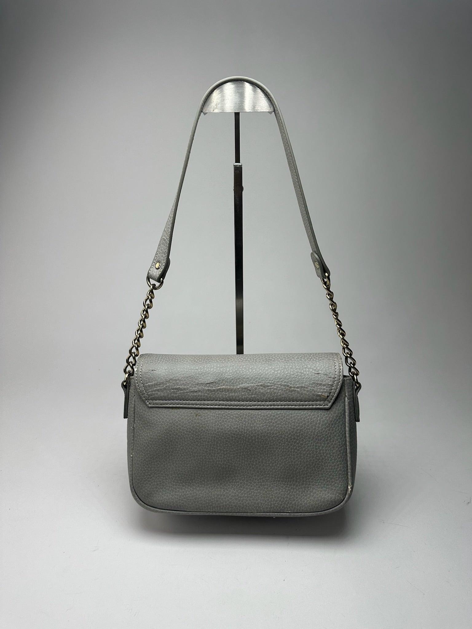 Condition Details: The vegan leather is in good condition with some damaged areas. The hardware shows light signs of wear.