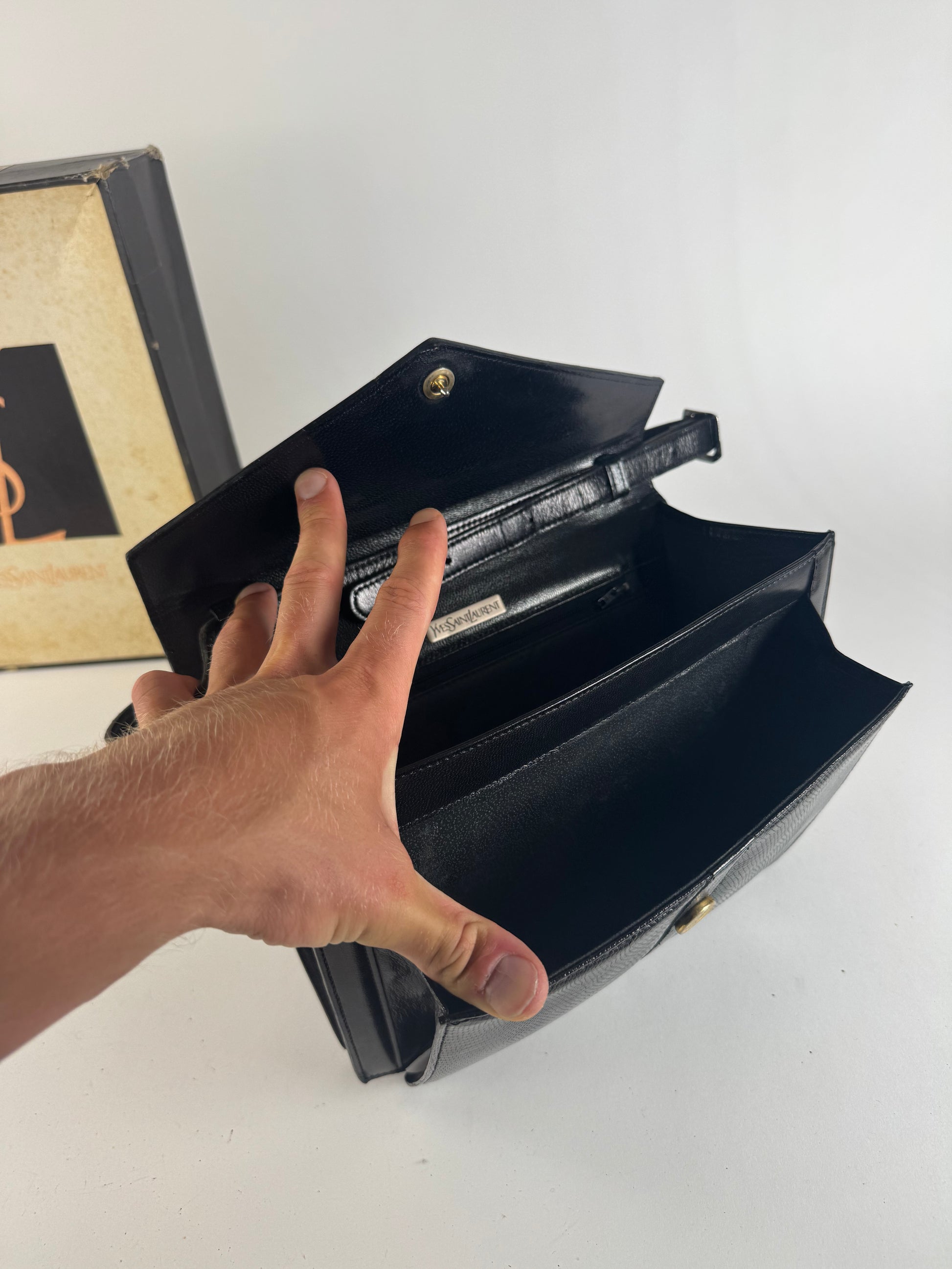 Vintage Yves Saint Laurent Snakeskin embossed leather bag black