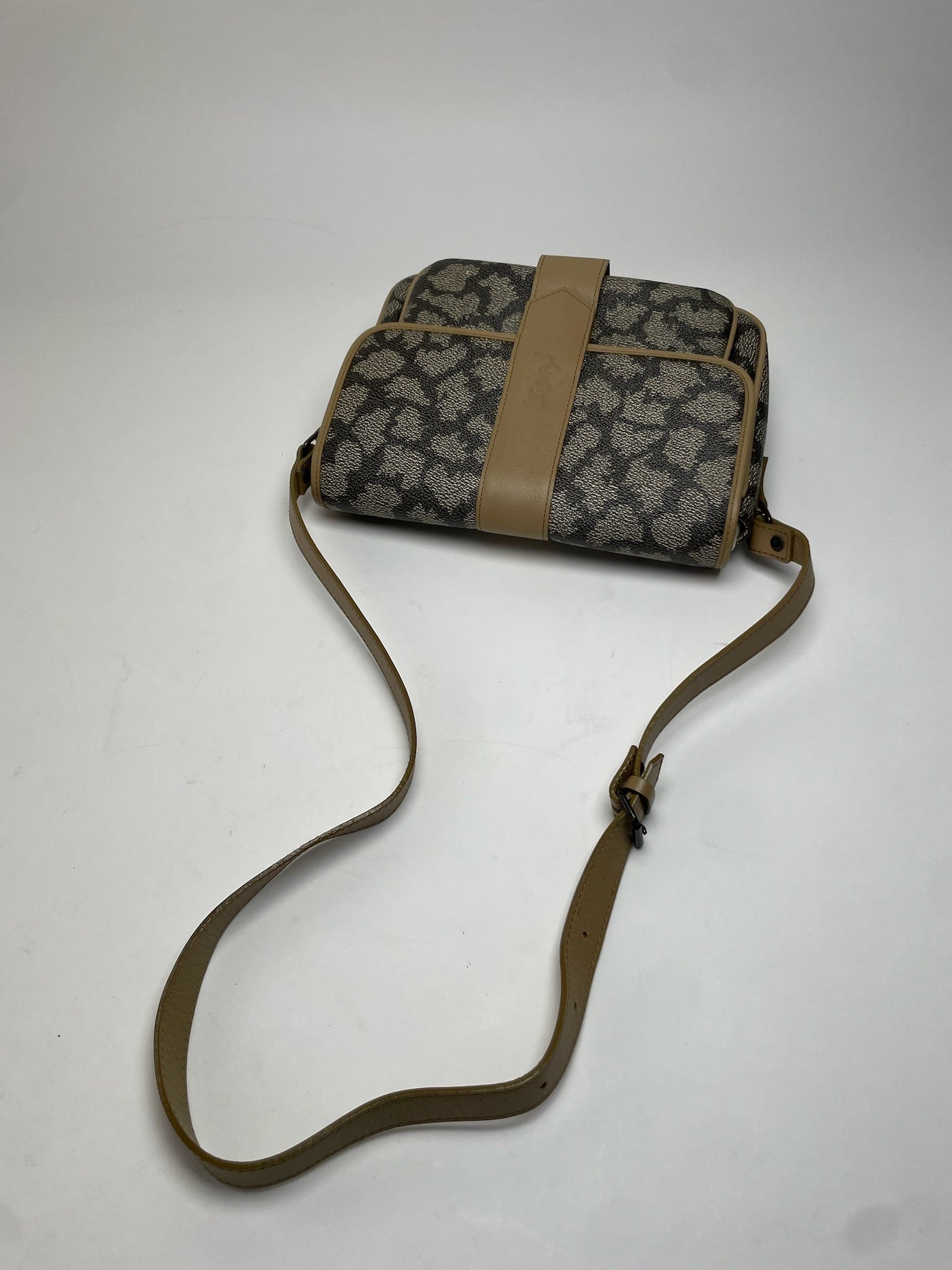 Vintage Yves Saint Laurent Stone Emblossed Leather Shoulder Bag Grey Black Brown