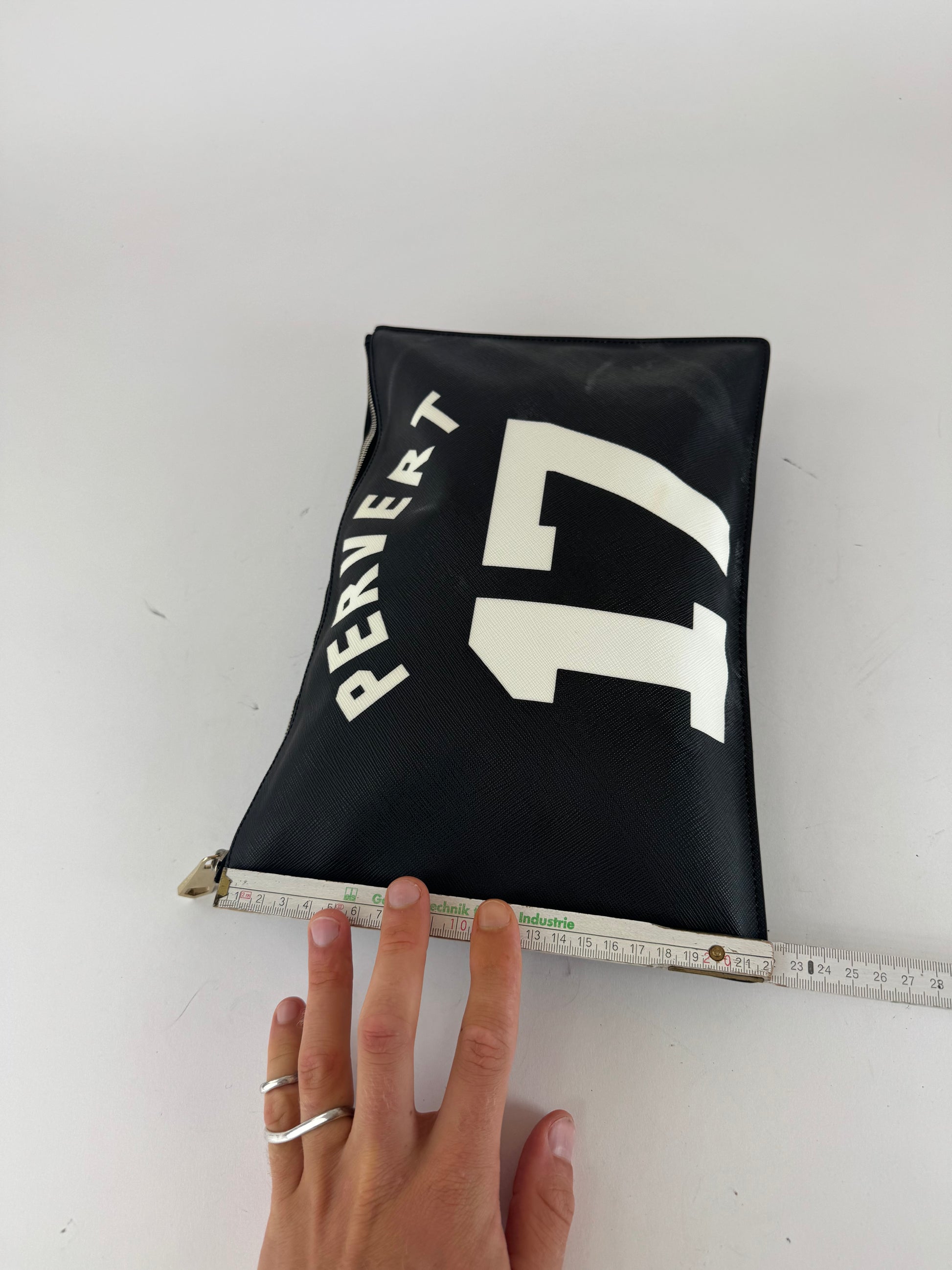 Pochette GIVENCHY Vintage en cuir noir avec logo "Pervert 17".