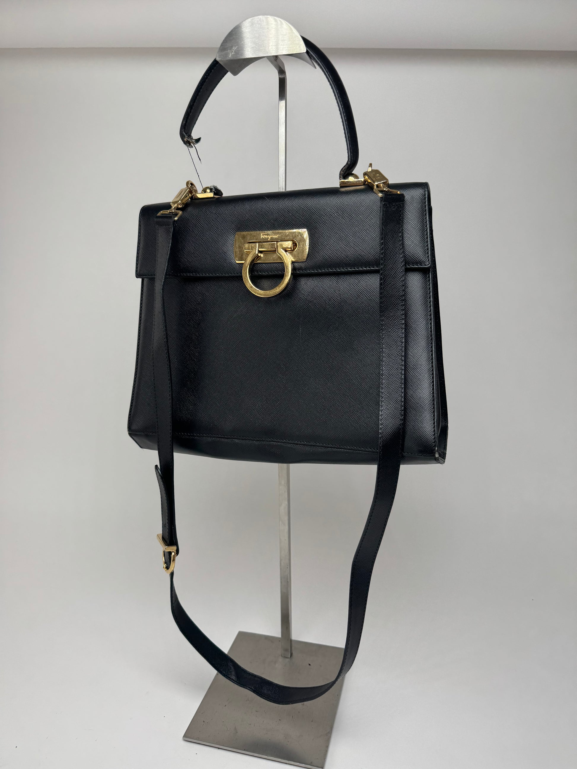 Sac vintage en cuir noir Salvatore Ferragamo 2 voies