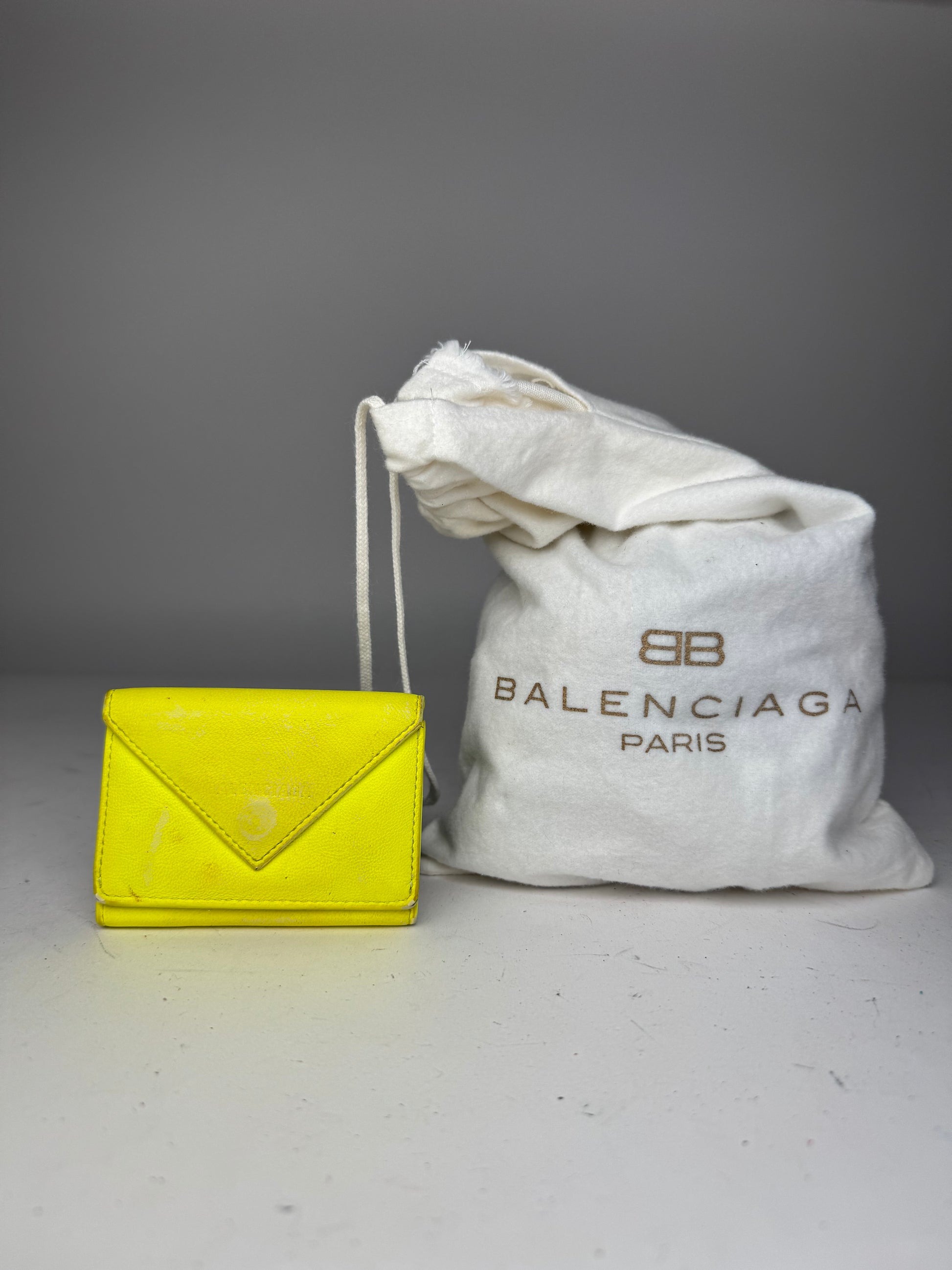 BALENCIAGA Neon Yellow Leather Vintage Card Holder