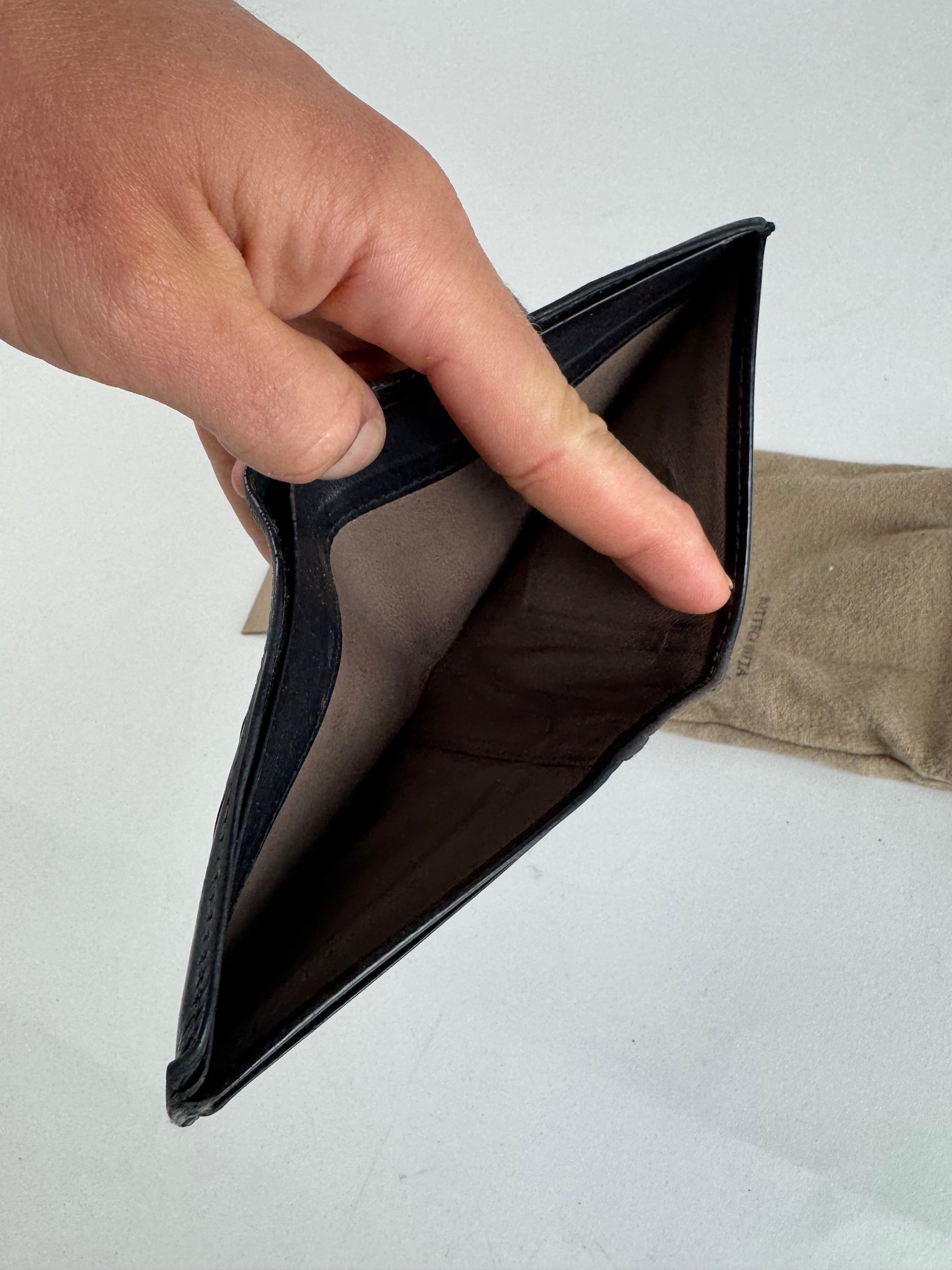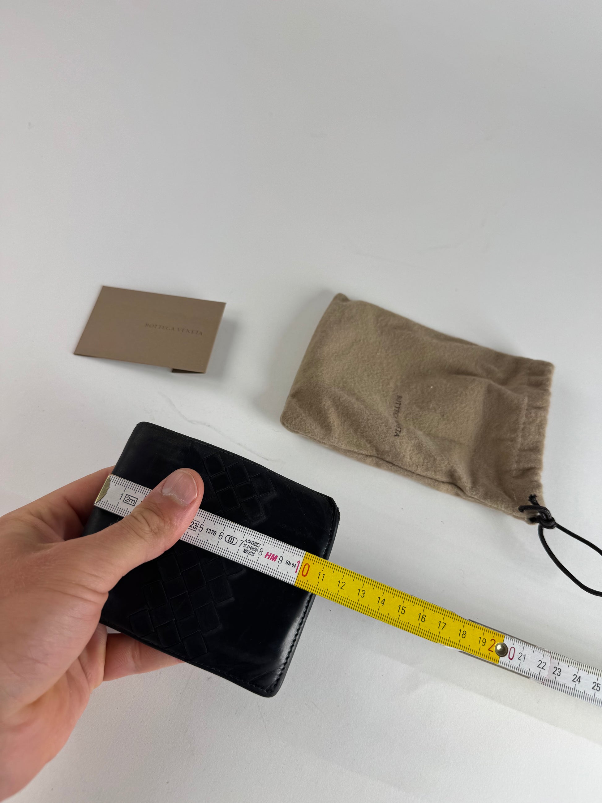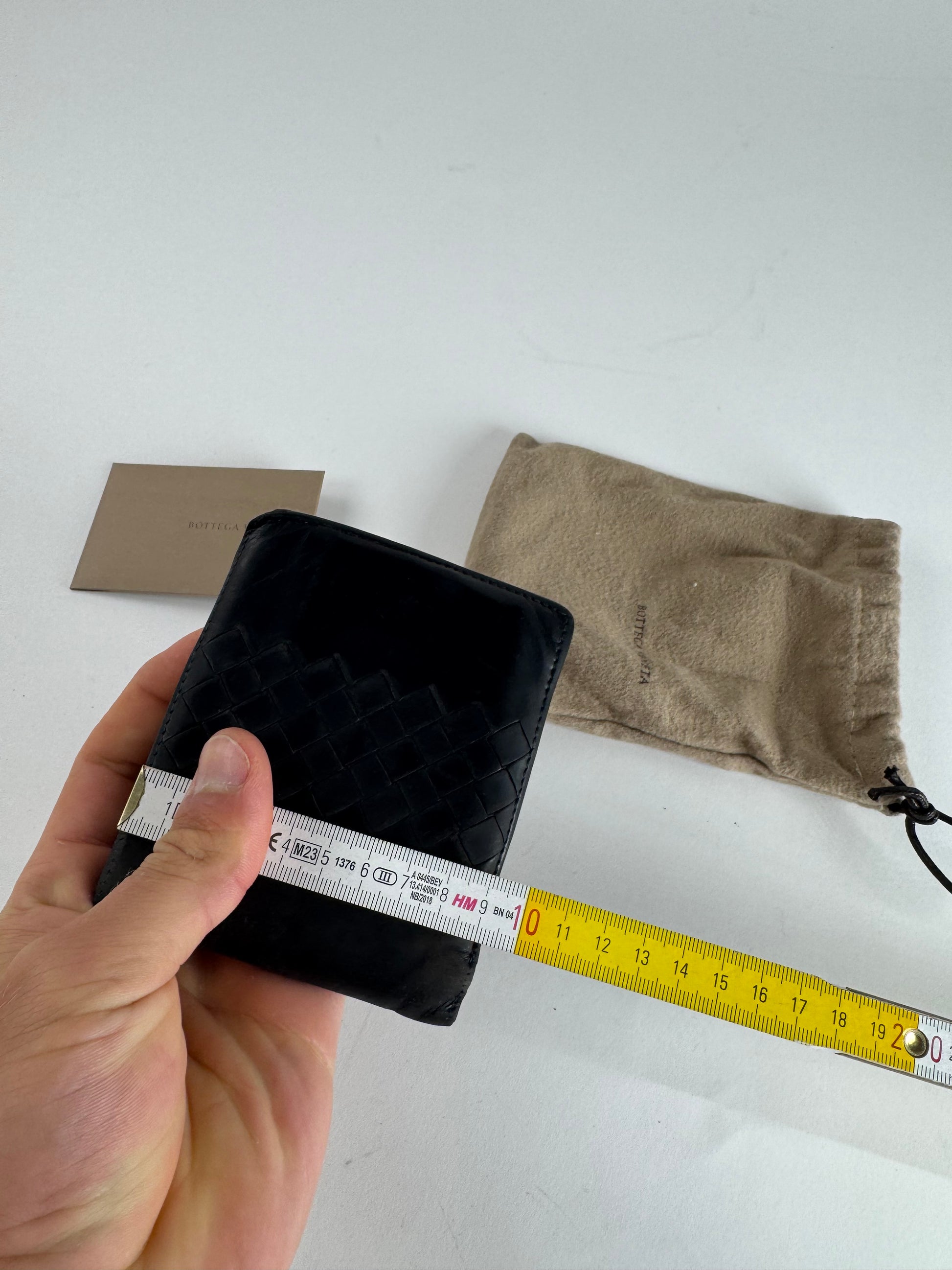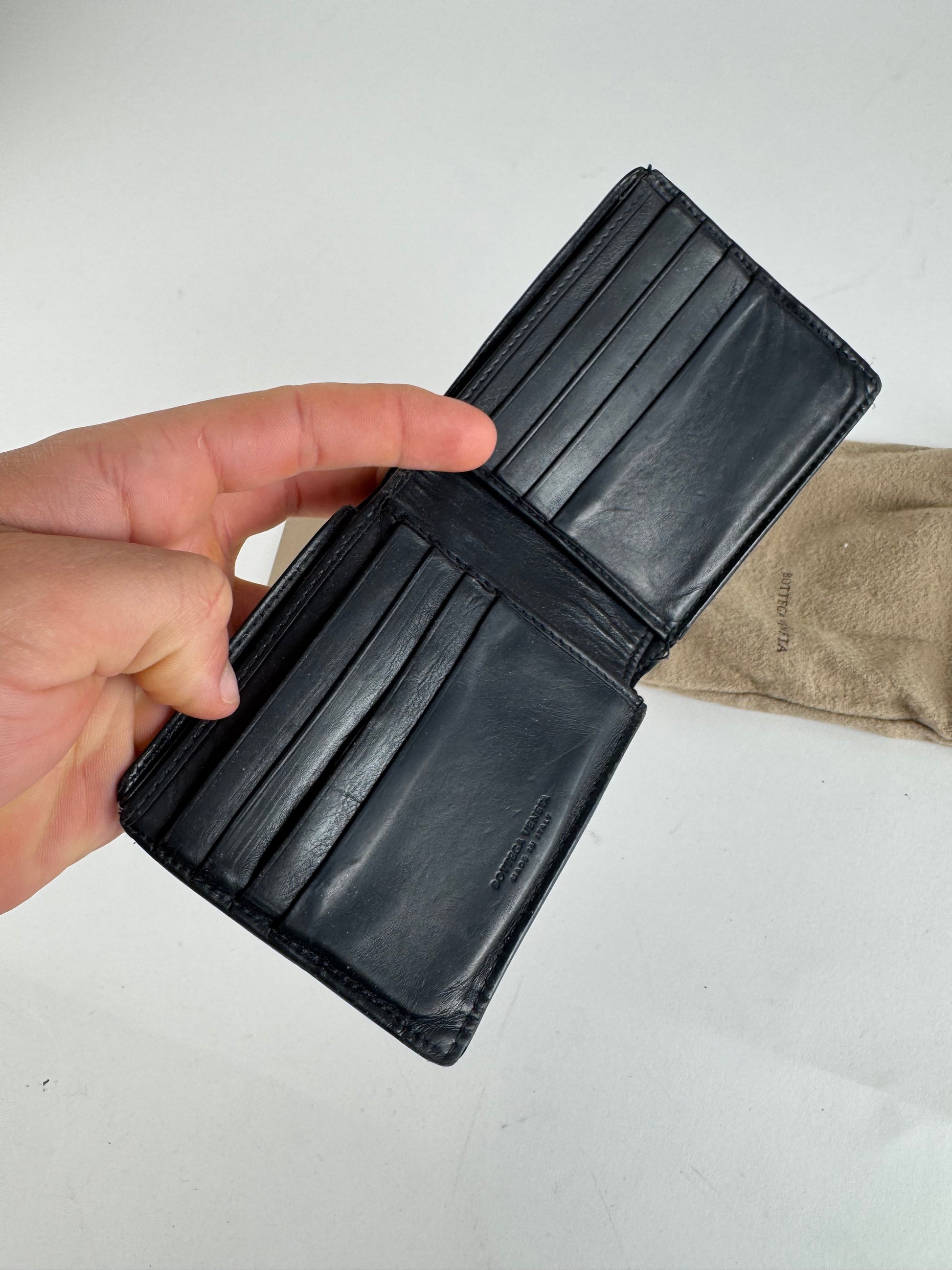 Porte-cartes pliable vintage Bottega Veneta en cuir noir