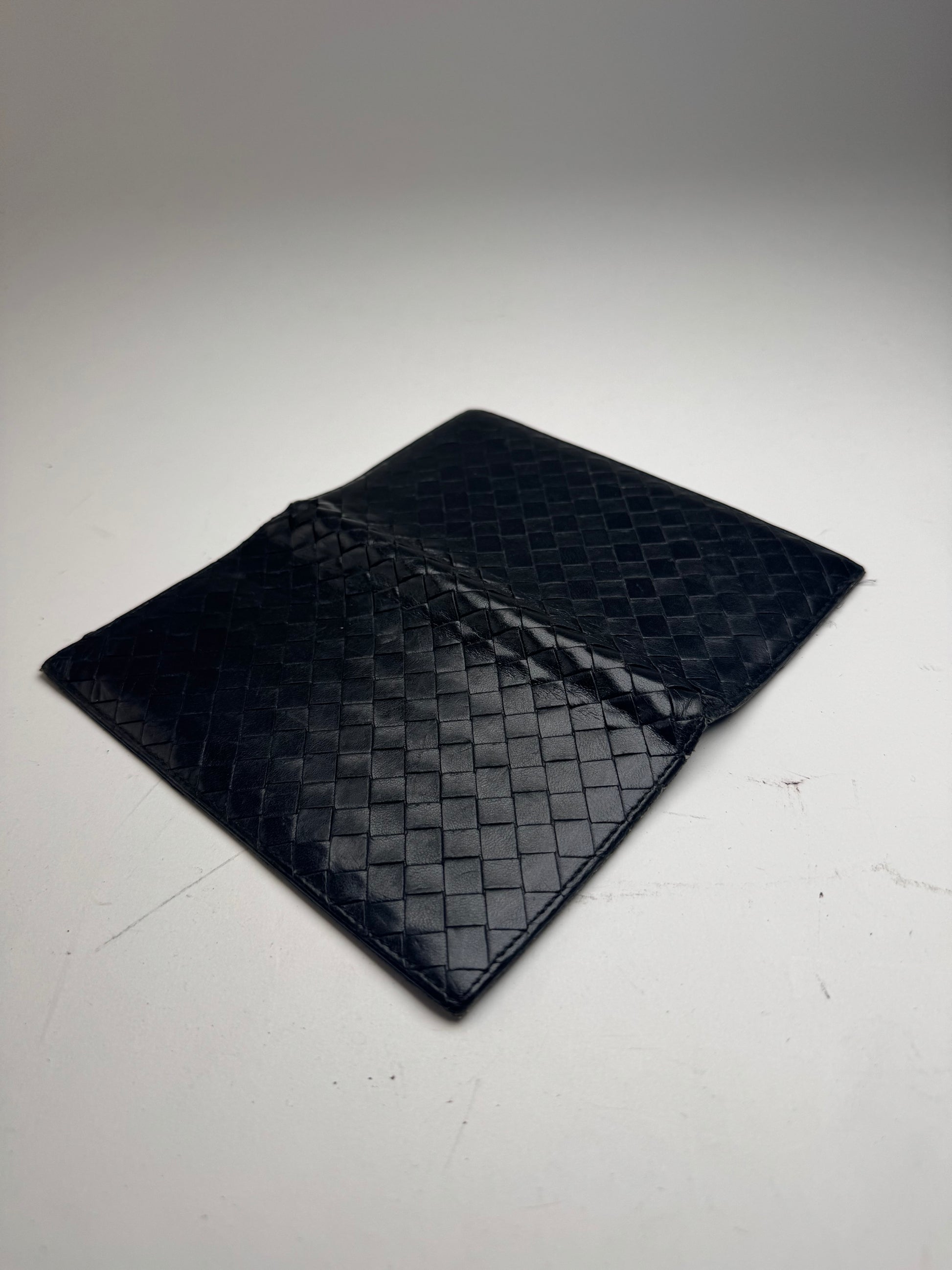 vintage Bottega Veneta Intrecciato Carte en cuir / Porte-carte d’identité Noir