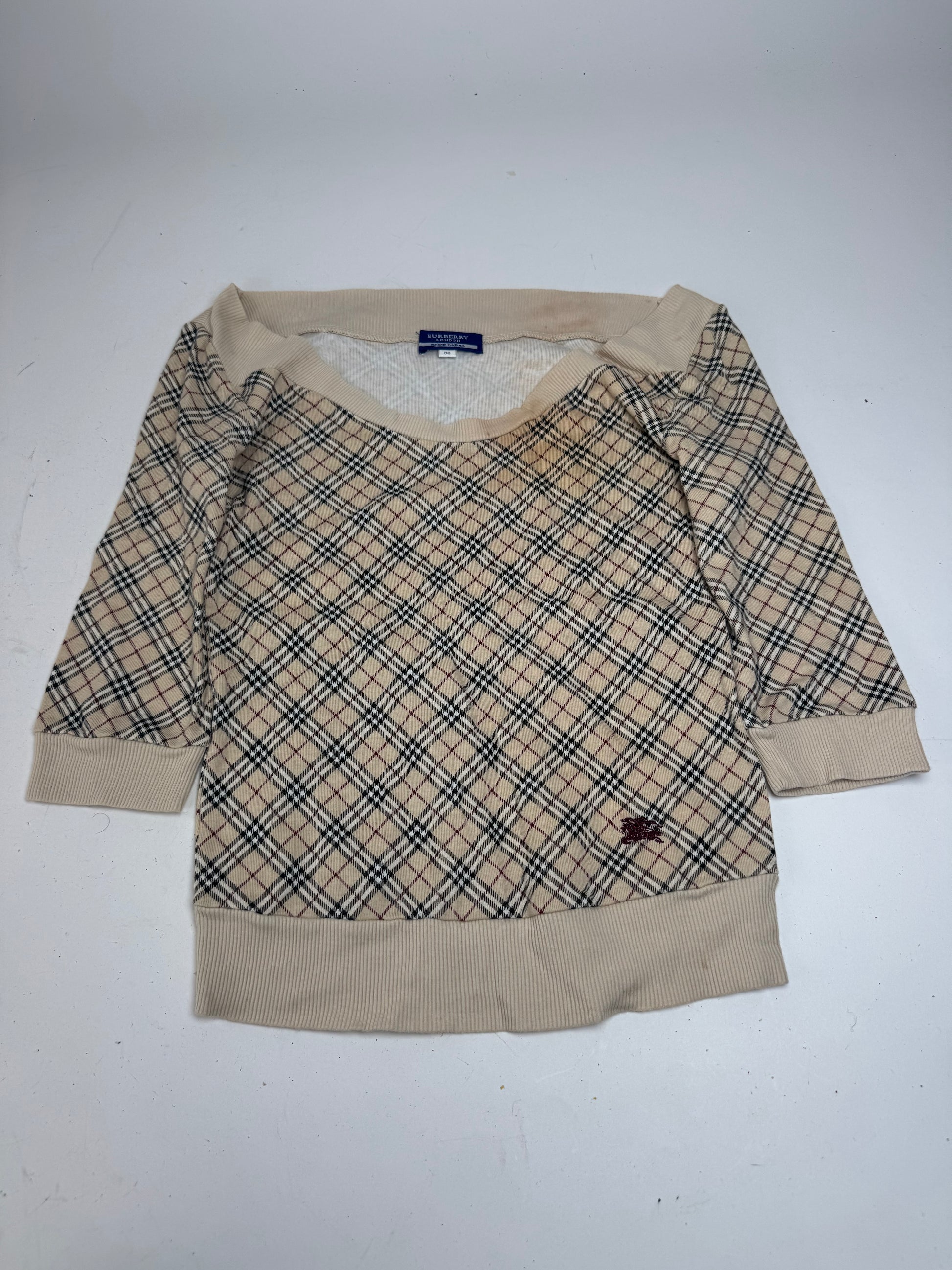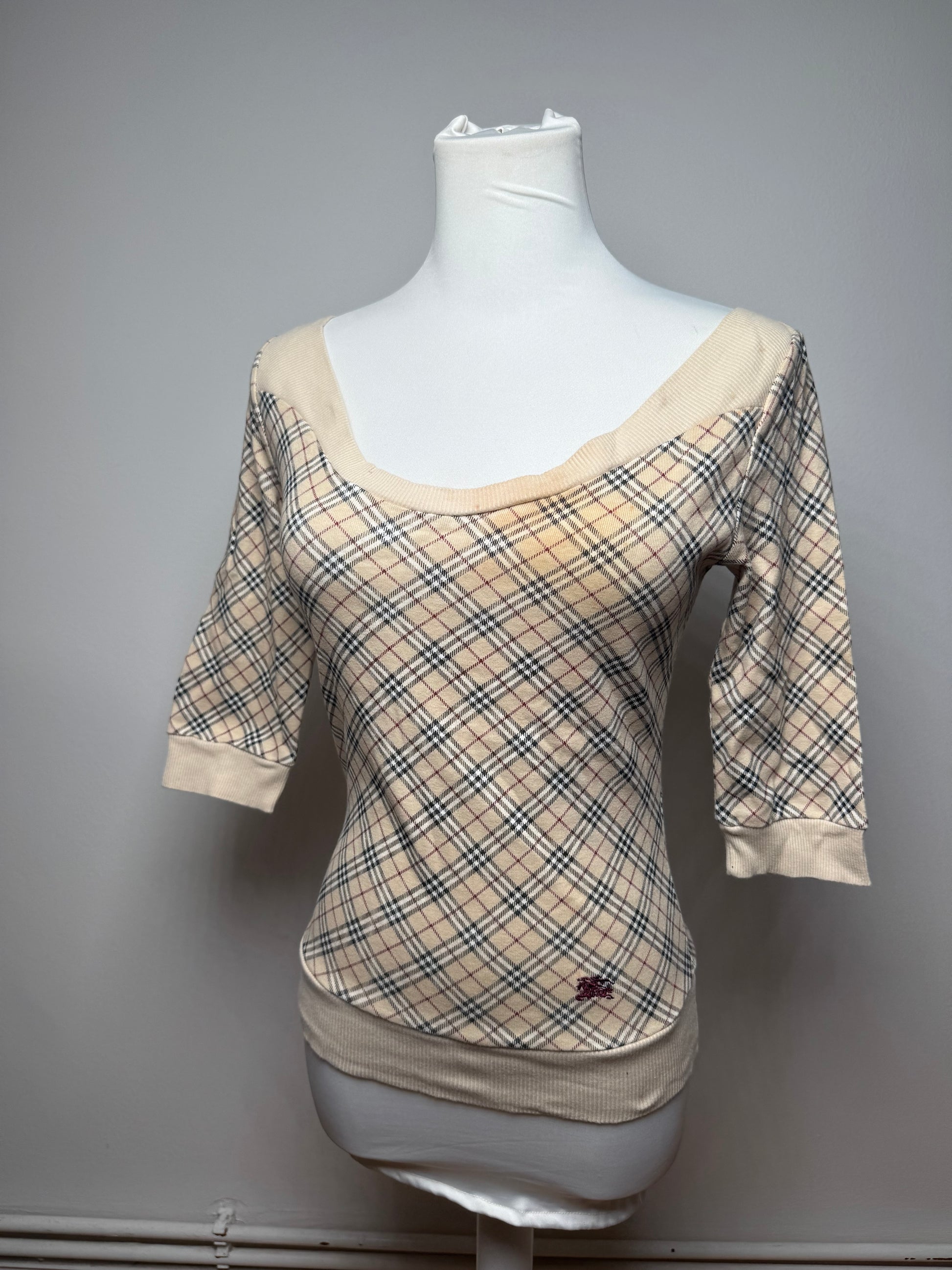 Vintage Burberry Nova Check Short-Sleeve Sweater beige M