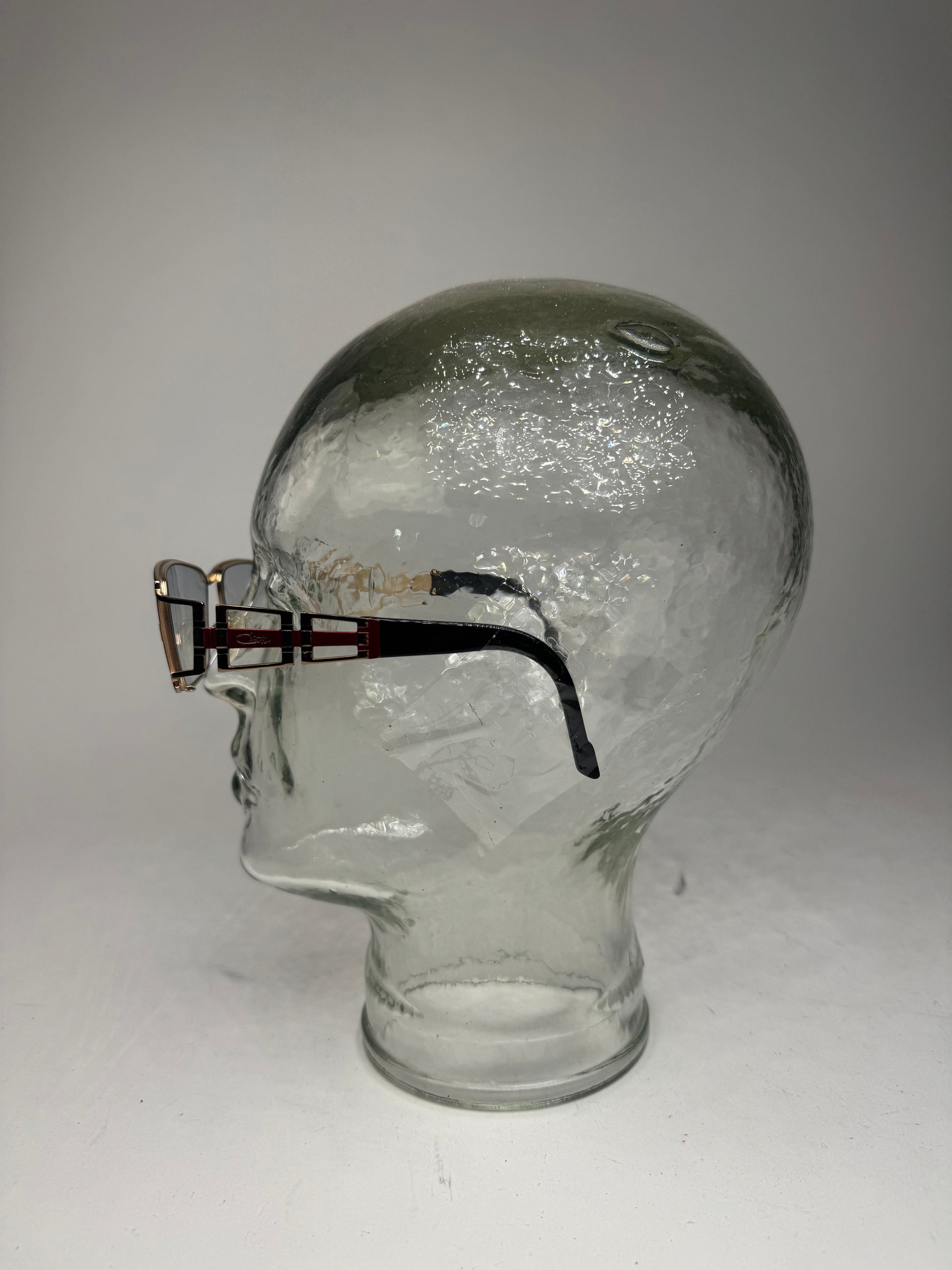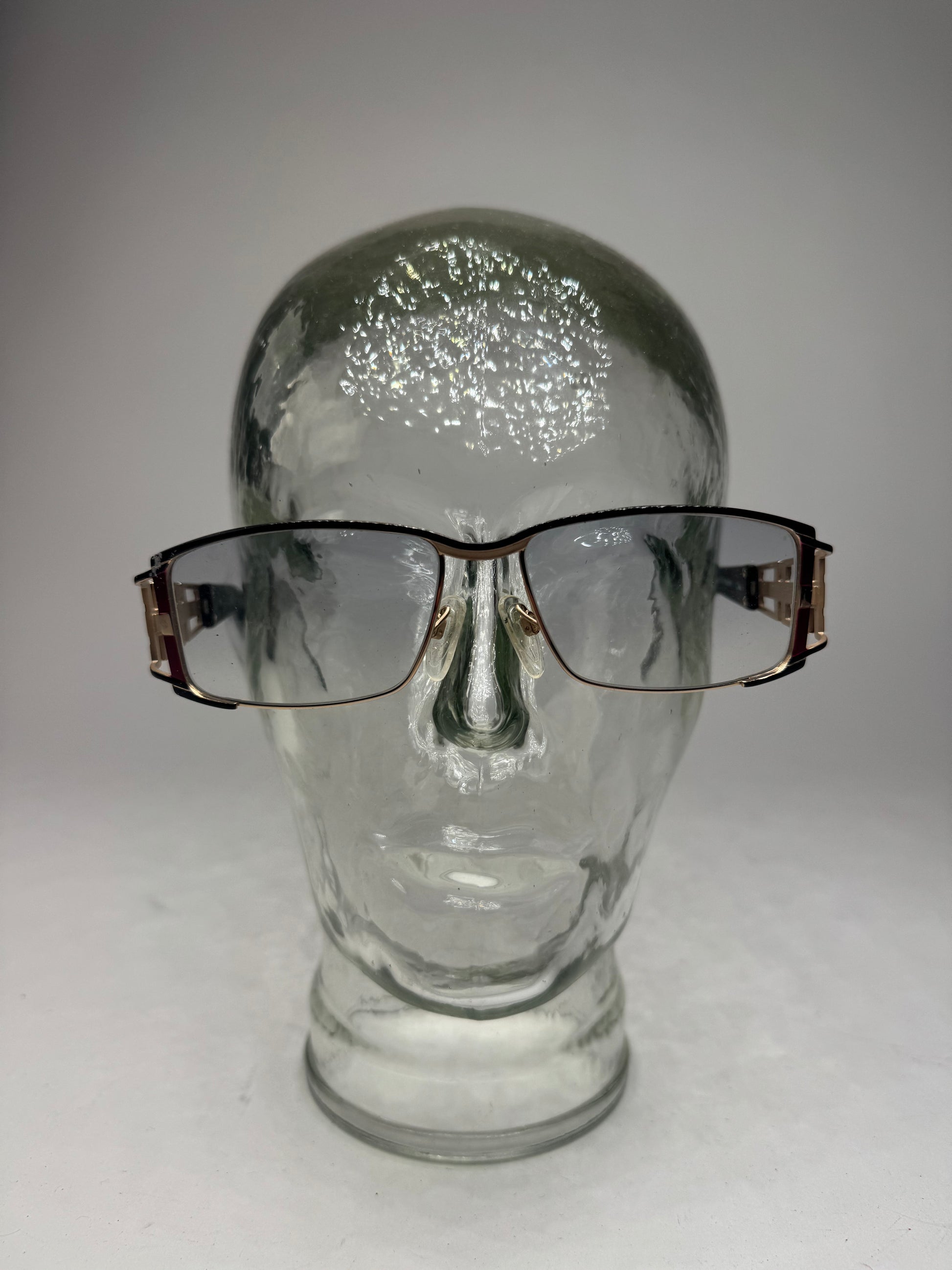 These striking vintage sunglasses feature blue-tinted lenses with an unknown prescription and embody CAZAL’s bold and iconic design language — known for its architectural shapes and luxurious detailing that defined 1980s eyewear culture. The temples have a bone-like design crafted from rose-toned steel and red-brown acetate, with black acetate tips for comfort and contrast. Made in Germany, this piece perfectly captures CAZAL’s fusion of artistry, innovation, and statement style.