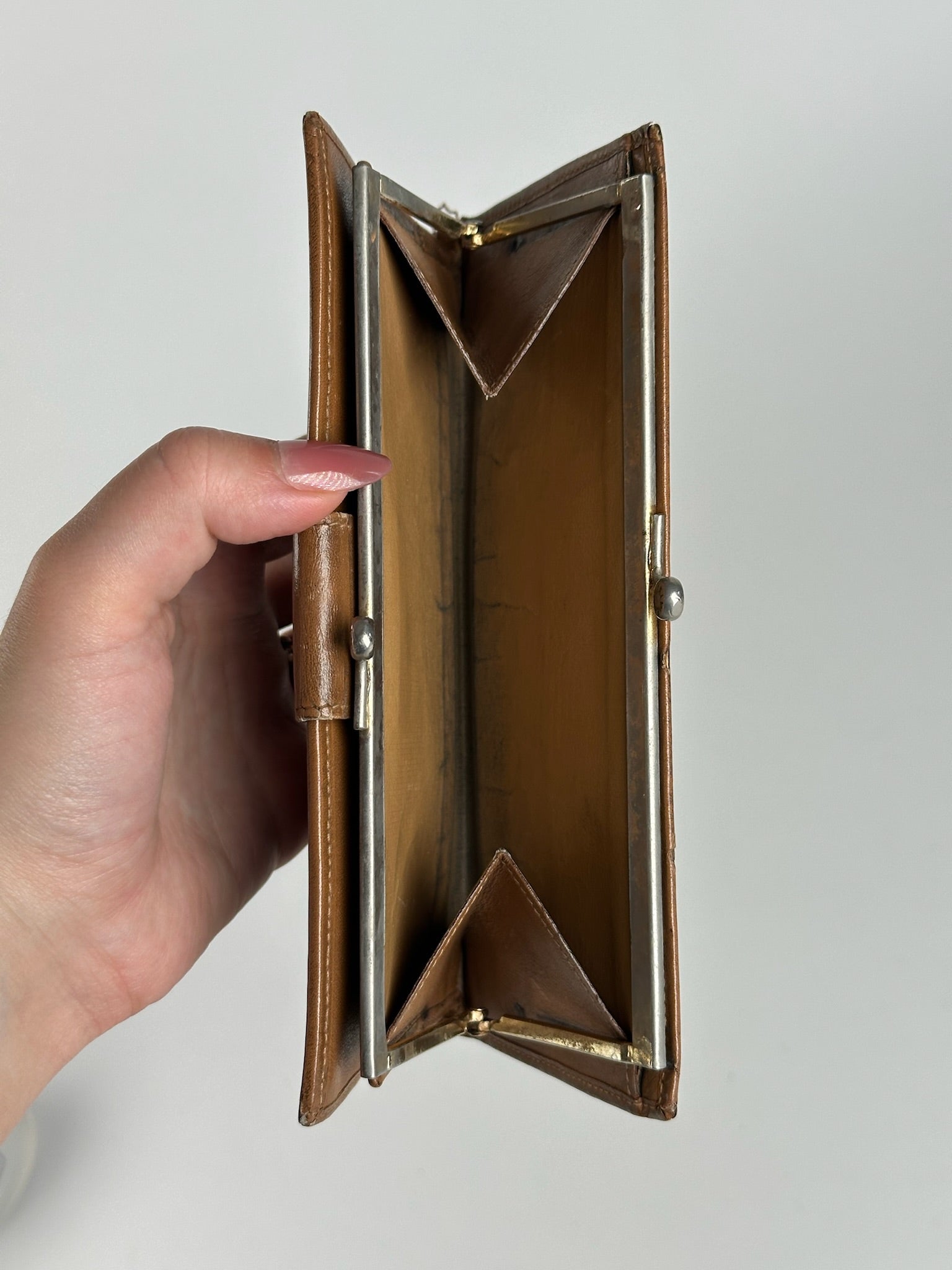 État : Le cuir extérieur est en très bon état, avec de légères rayures et des coins légèrement usés. La quincaillerie est en acier inoxydable argenté brillant, présentant de légères traces d'usure.
