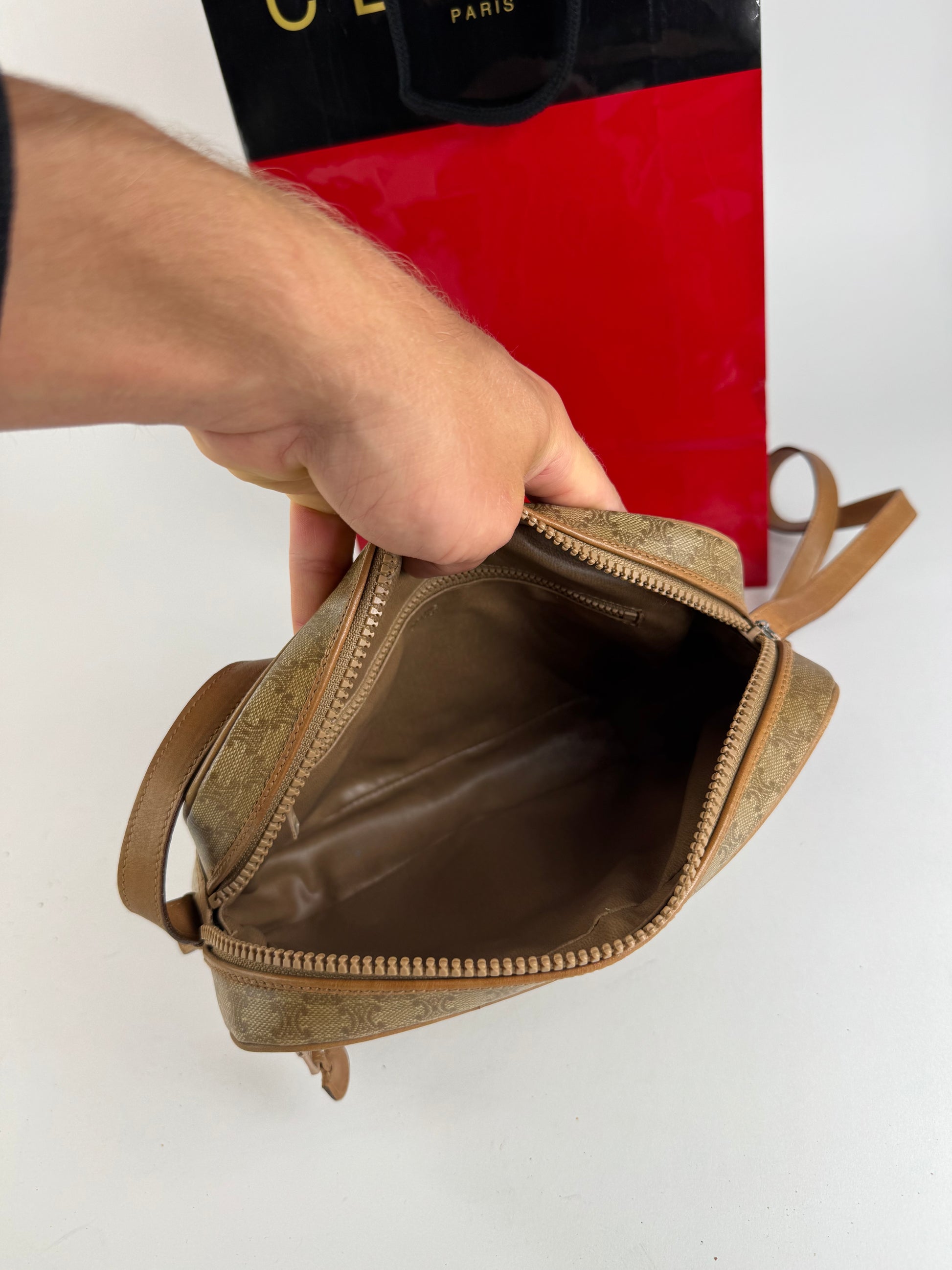 Sac Triomphe vintage en cuir monogramme Céline beige