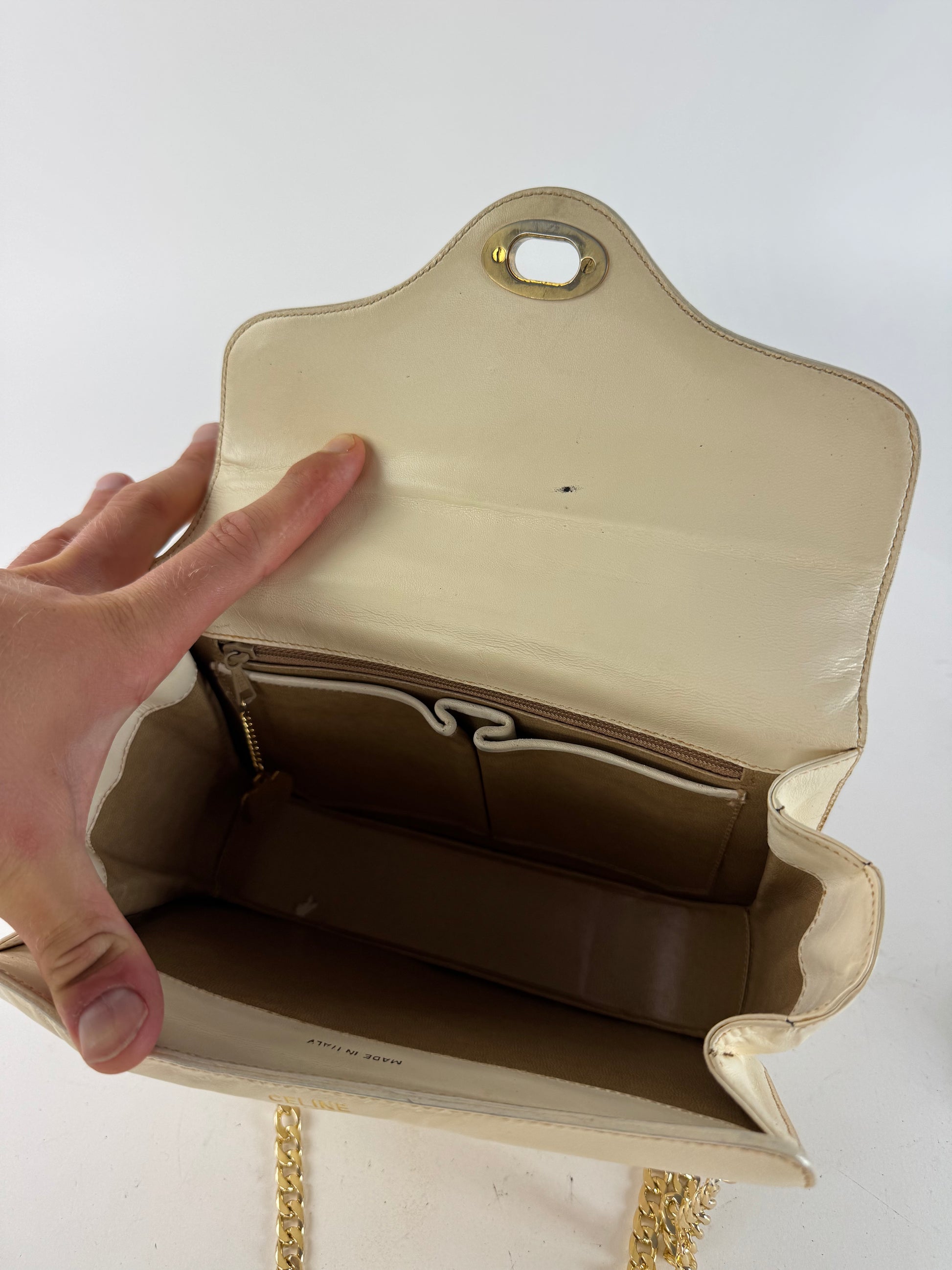 Sac vintage en cuir beige Céline Paris
