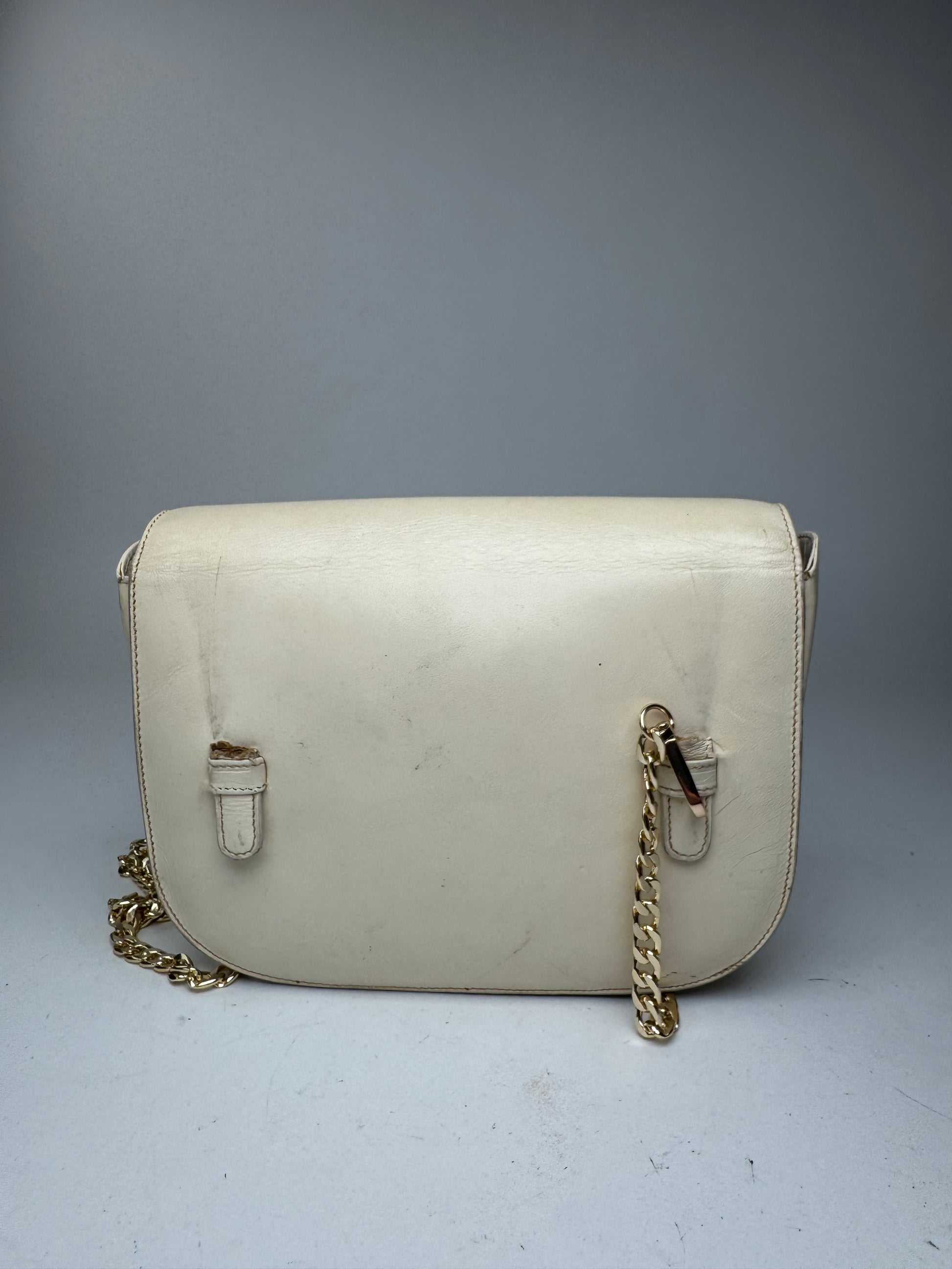 Sac bandoulière vintage en cuir blanc CELINE