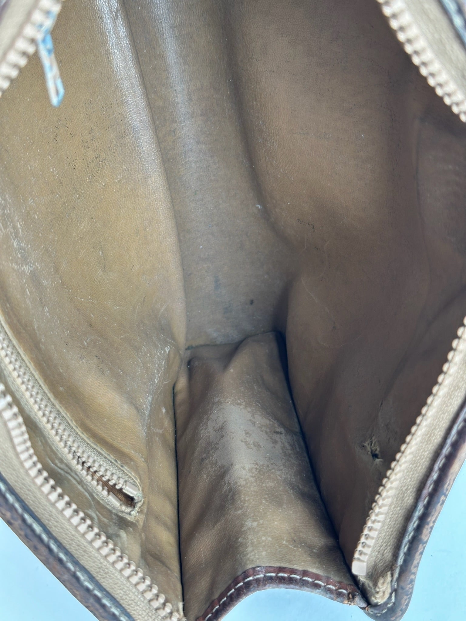 État : La toile extérieure est propre et belle, en très bon état, avec de légères traces d'usure. Les coins présentent quelques dommages. L'intérieur est usé et présente des taches visibles. La quincaillerie est brillante et présente de légères marques de surface.