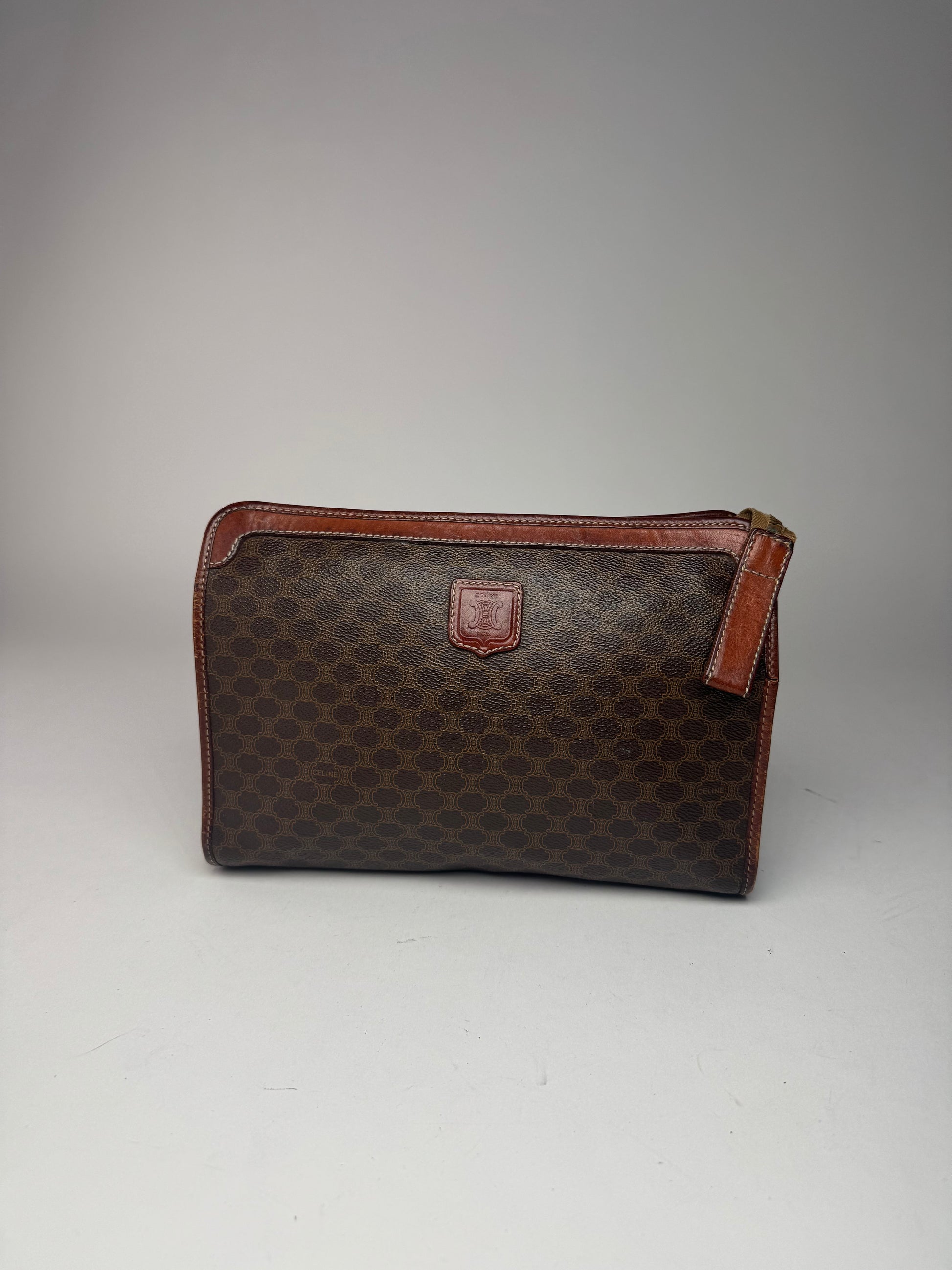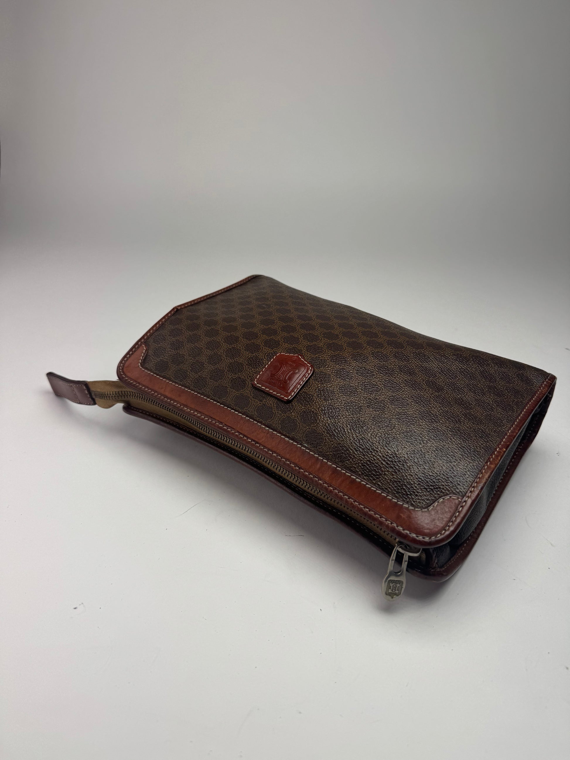 Pochette vintage en cuir monogramme Triomphe marron foncé CELINE PARIS.