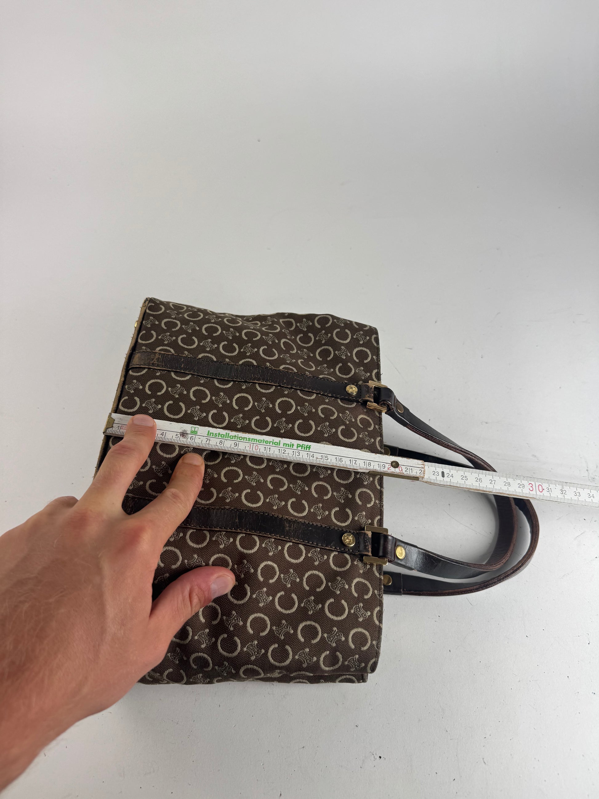 Sac vintage en toile et cuir Macadam Monogram Celine Paris marron