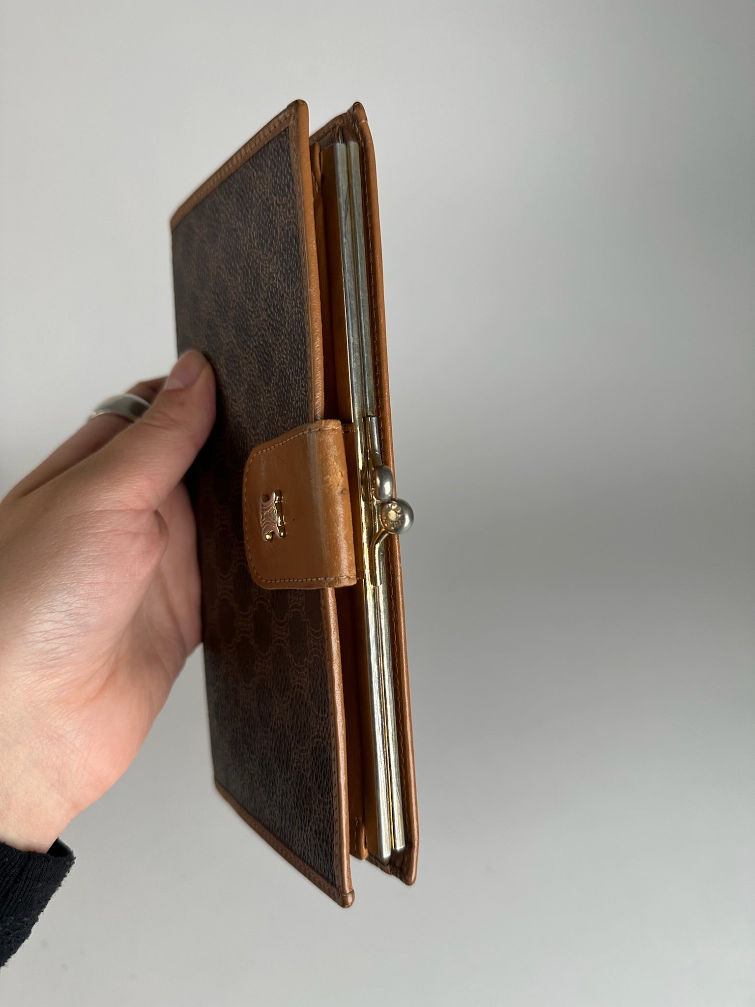 Portefeuille vintage en cuir monogramme Céline Paris marron