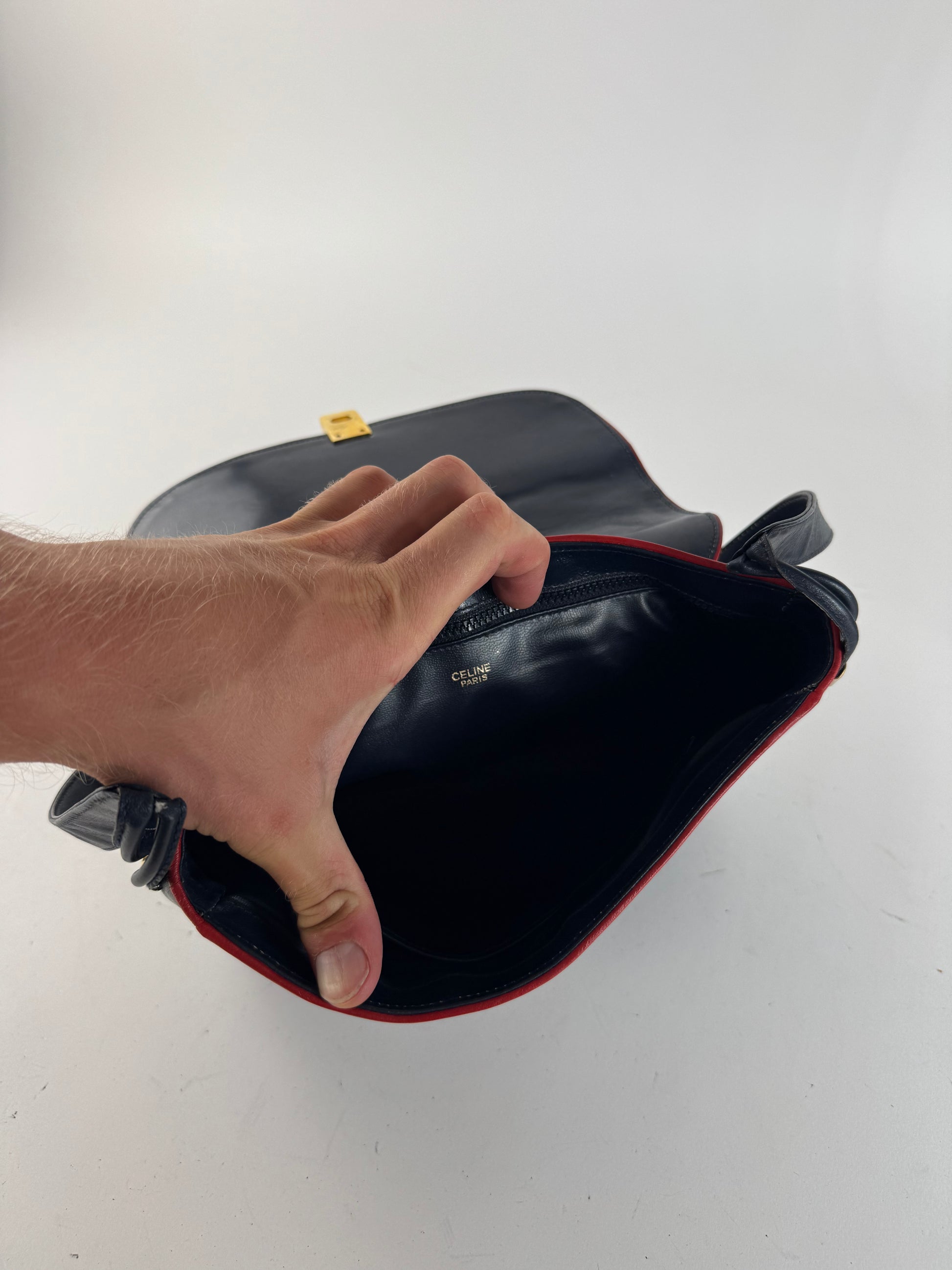 Sac bandoulière vintage en toile et cuir bleu marine CELINE PARIS
