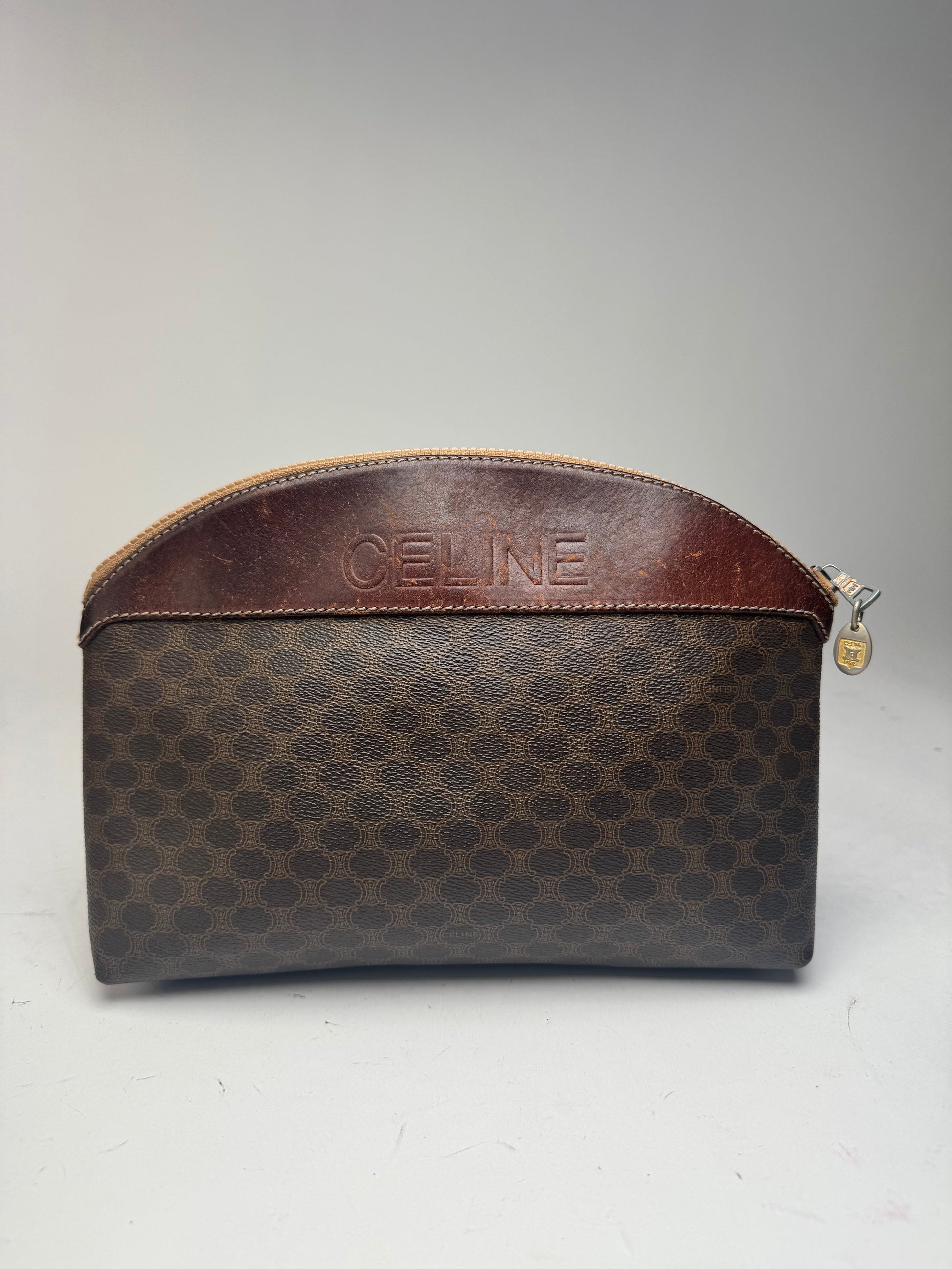 Pochette vintage en cuir Celine Paris Triomphe Marron