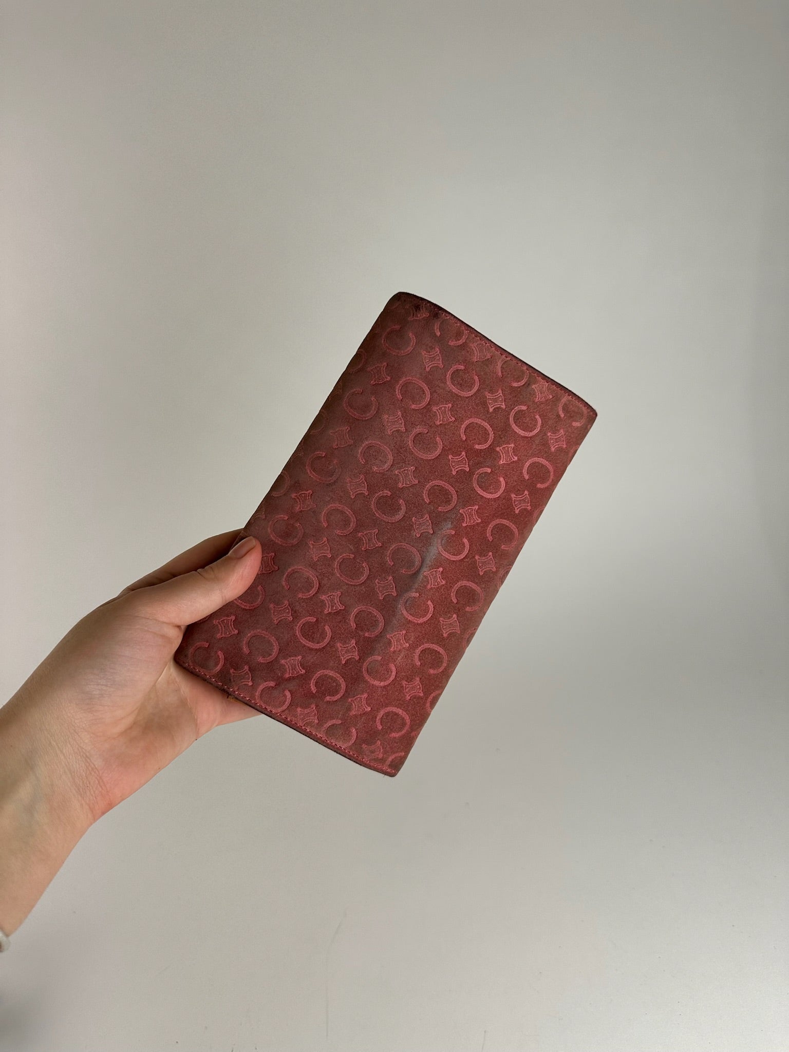 Portefeuille vintage Céline en daim macadam Monogram rose marron