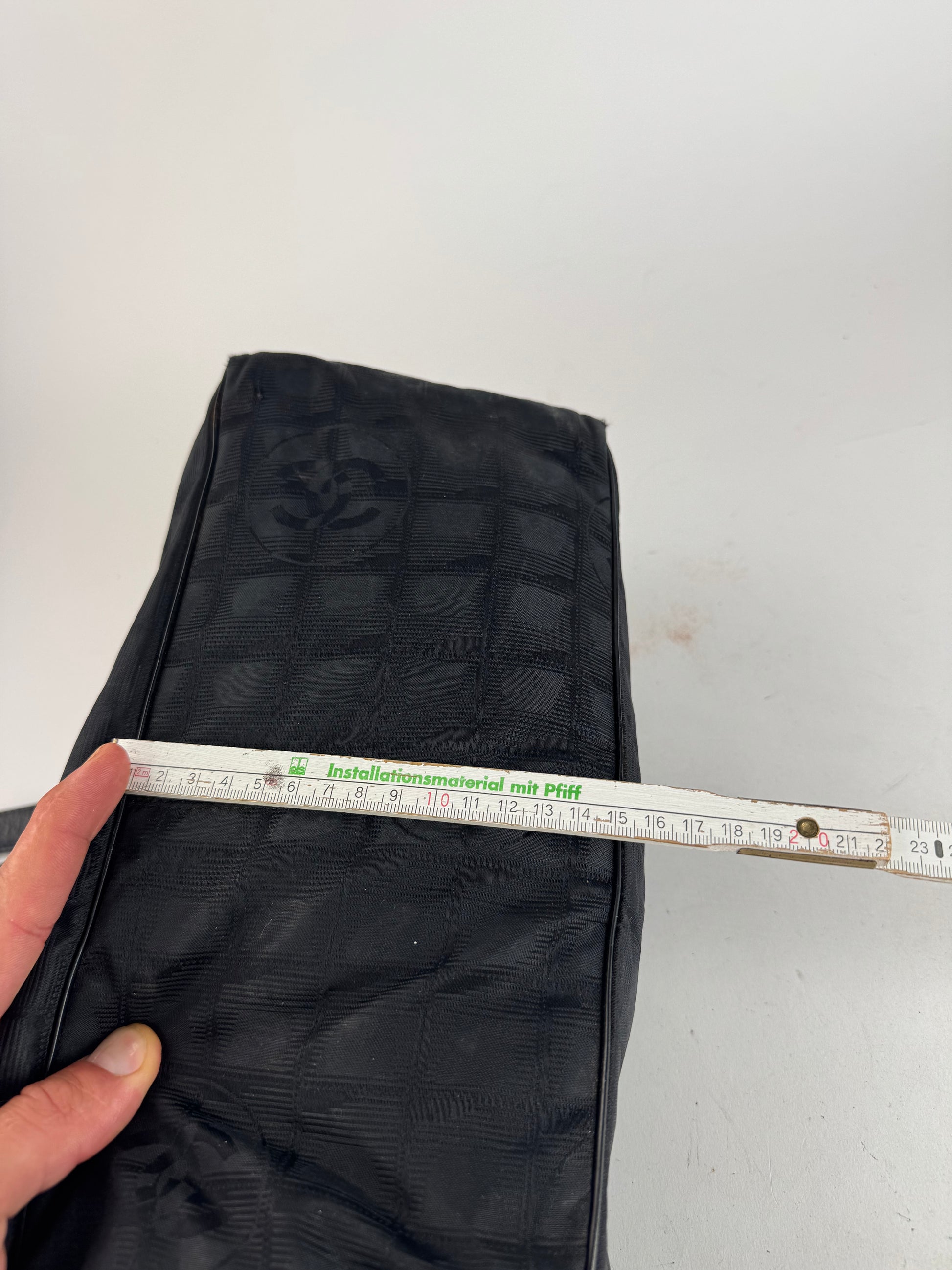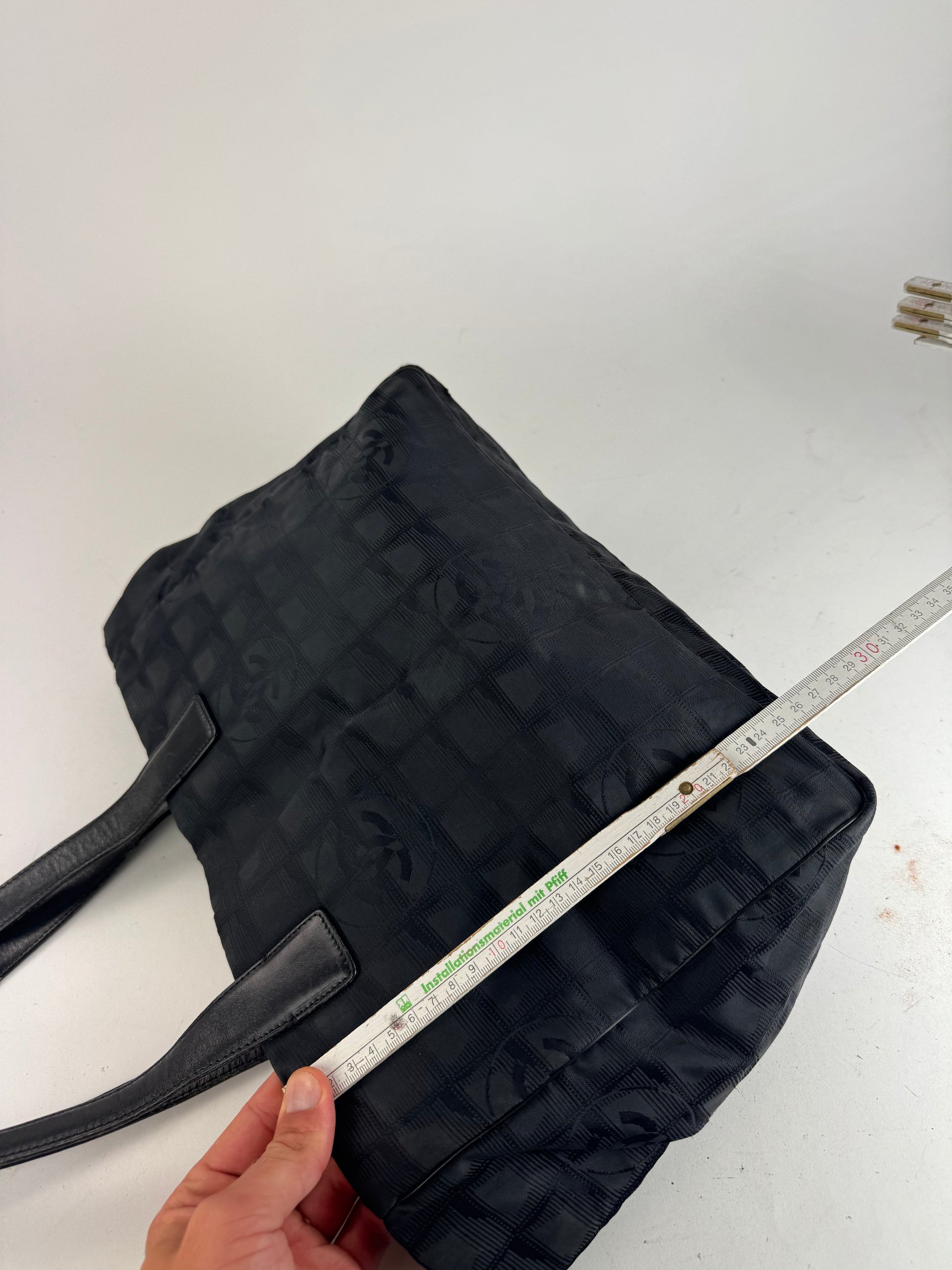 Sac cabas vintage en cuir et toile monogramme Chanel noir