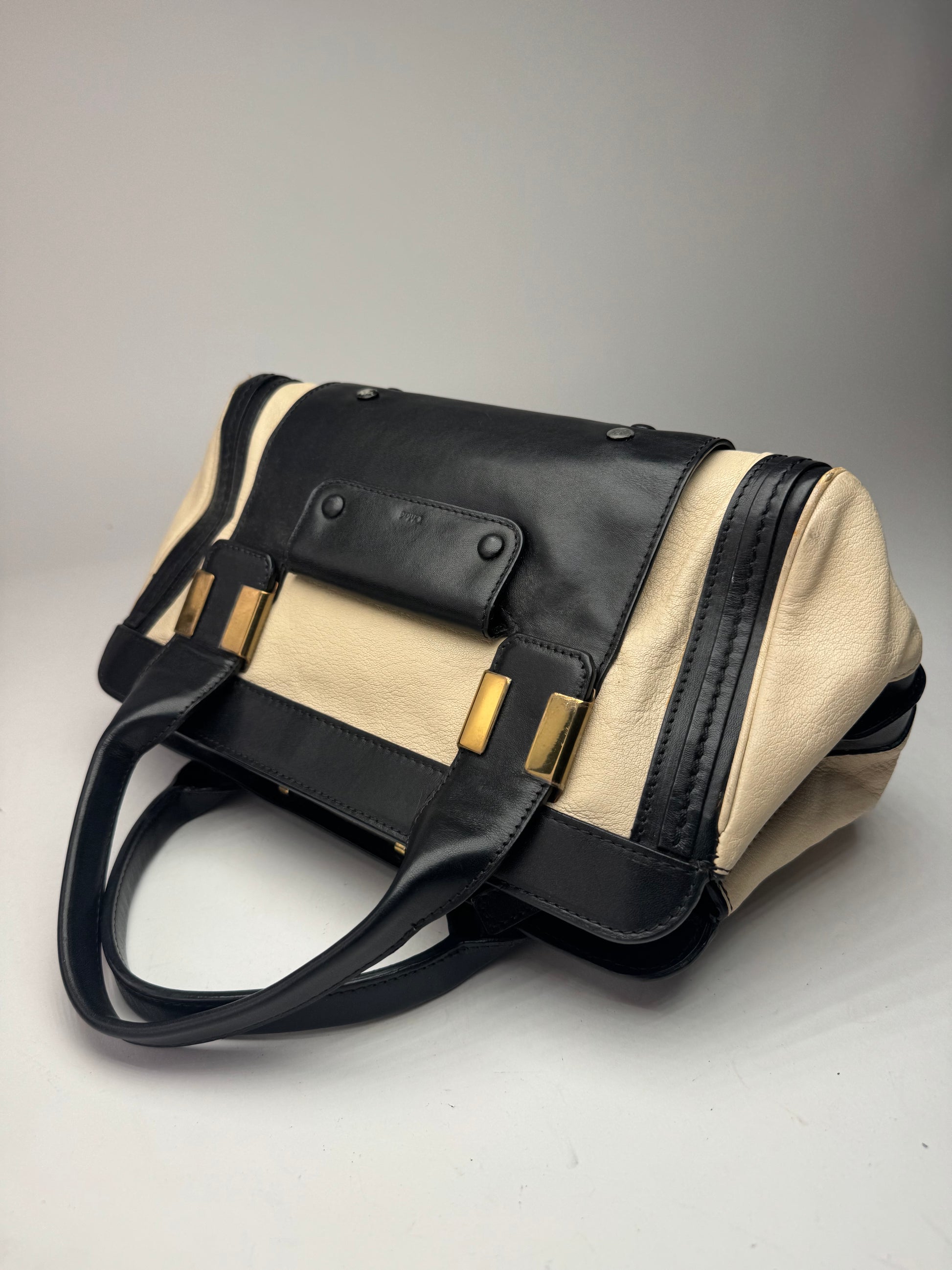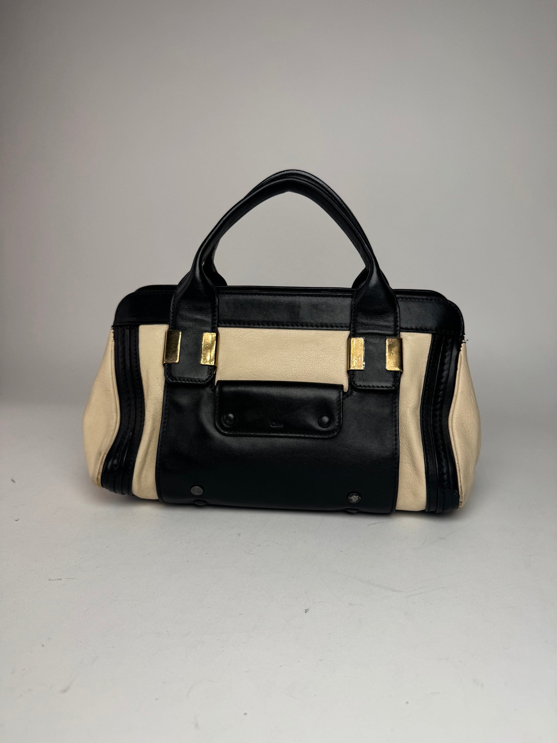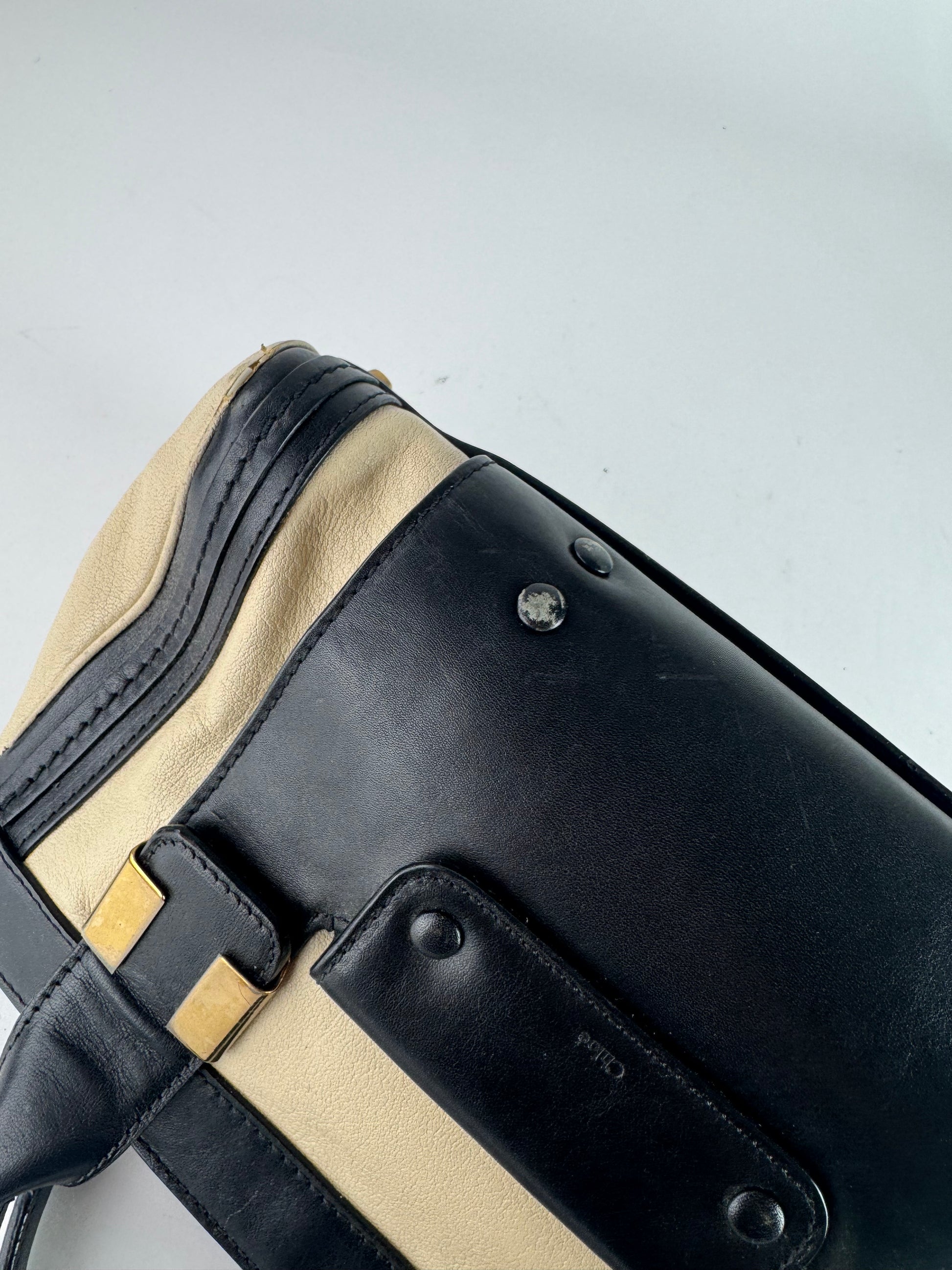 Sac vintage en cuir Chloé beige noir