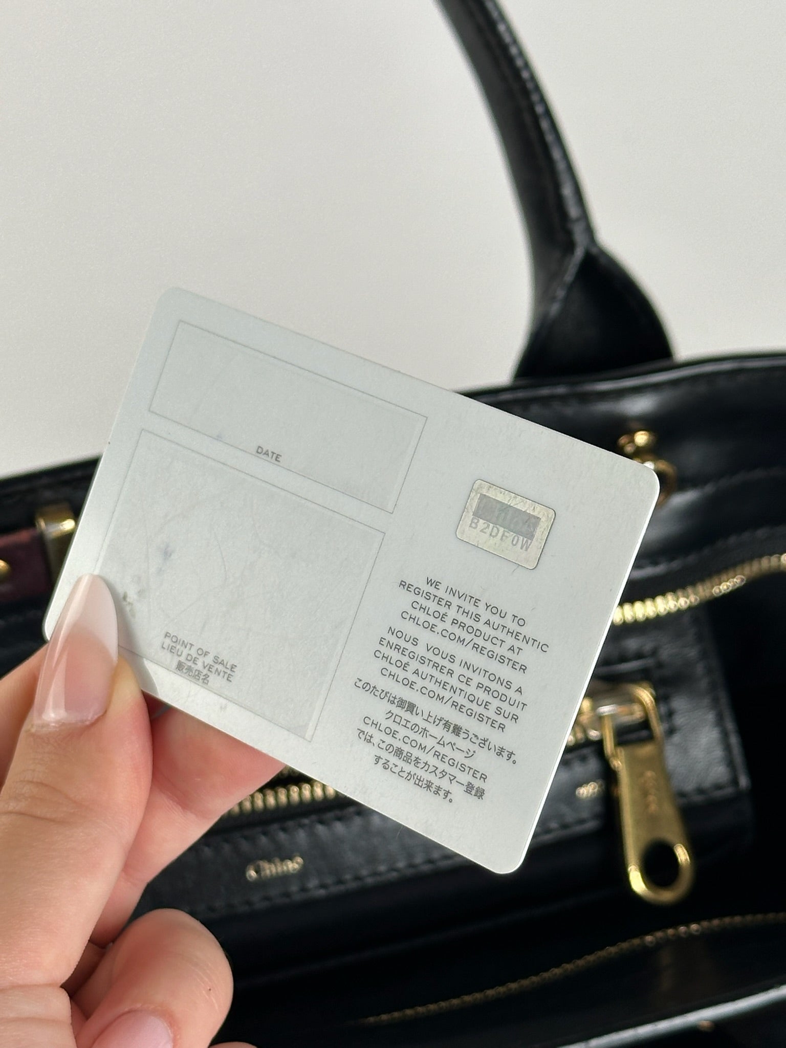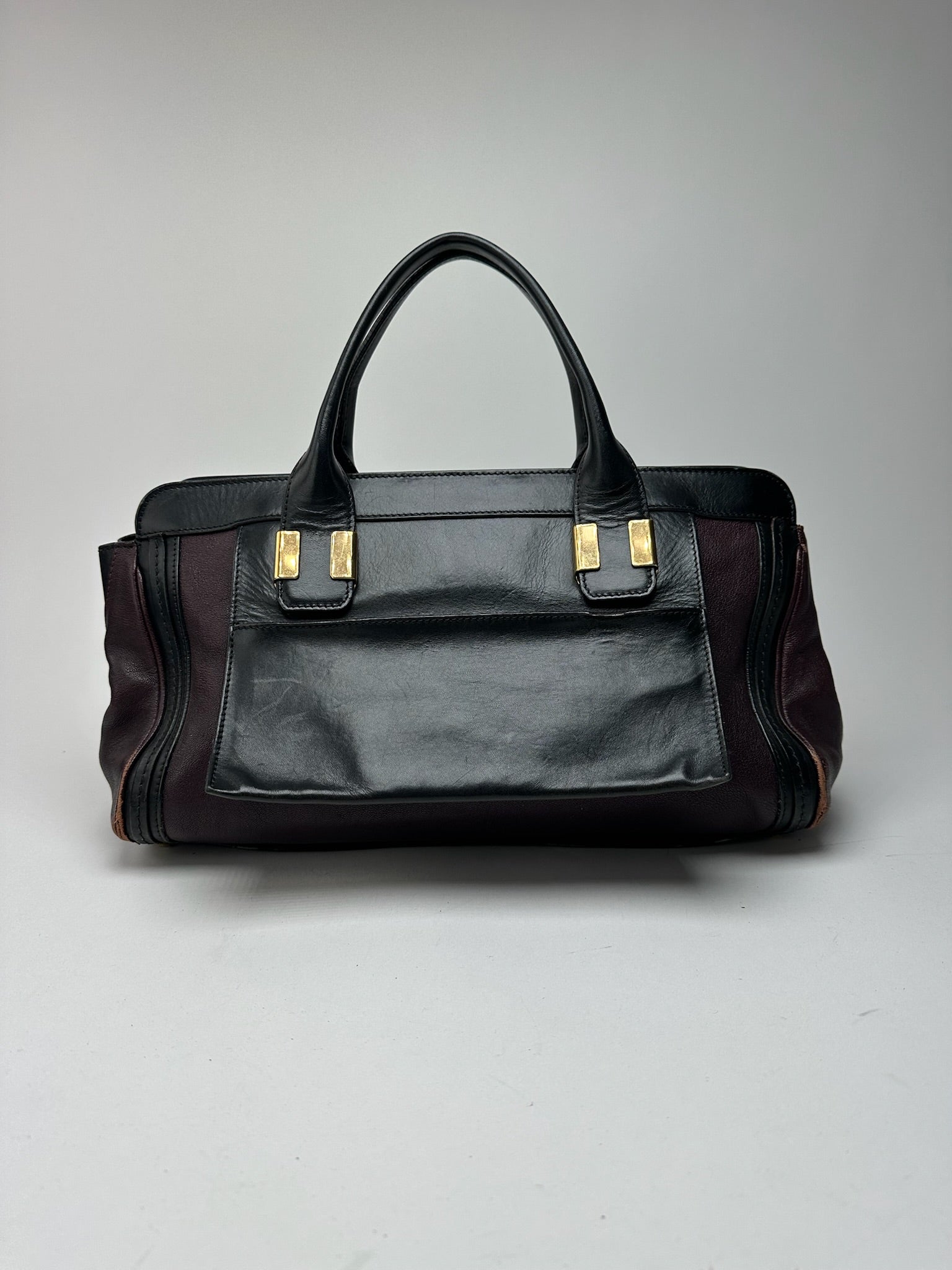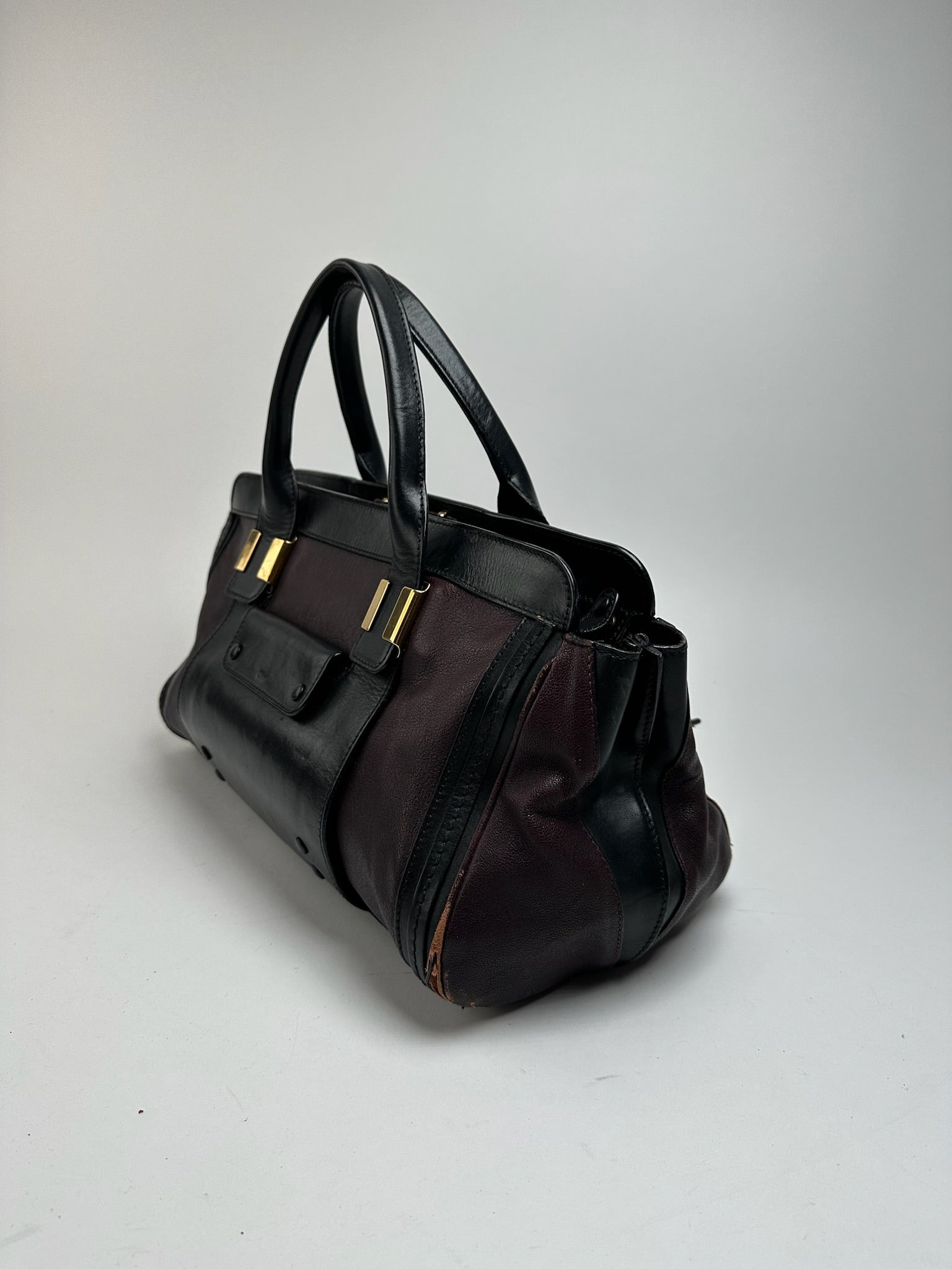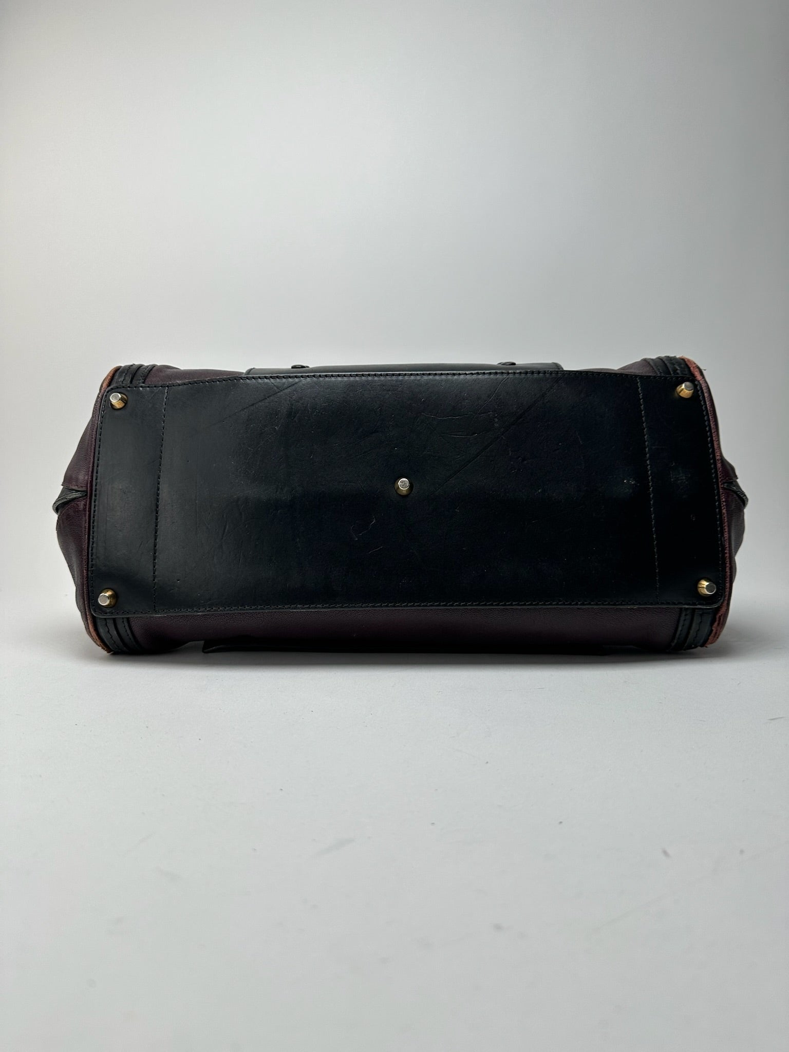 Sac à main vintage CHLOÉ en cuir noir et bordeaux. Cet élégant sac à main vintage est confectionné dans un mélange de cuir noir et bordeaux. Il est doté de deux anses courtes, d'une fermeture zippée et de finitions en acier doré. L'intérieur doublé de toile noire offre un espace de rangement pratique.