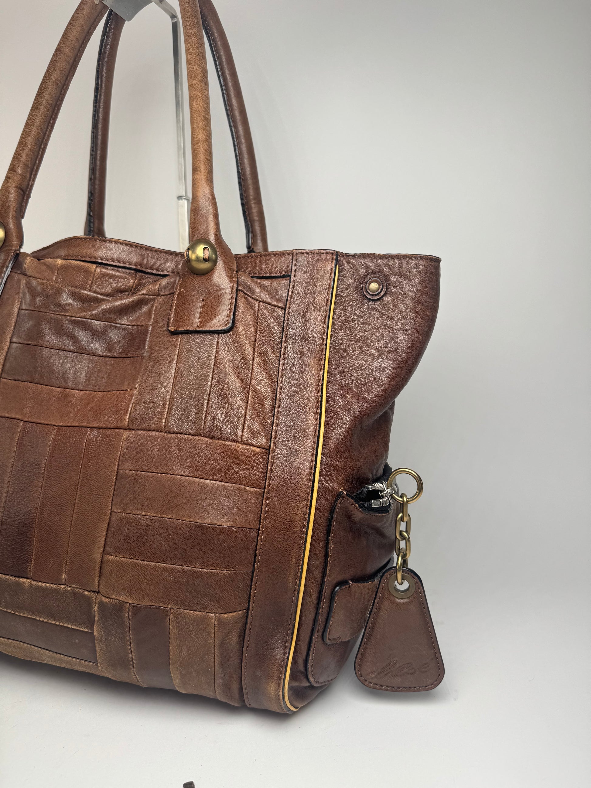 Sac cabas vintage en cuir CHLOÉ. Cet élégant sac cabas est finement confectionné en cuir marron à motifs. Il est doté de deux anses mi-longues et d'une finition en acier doré.