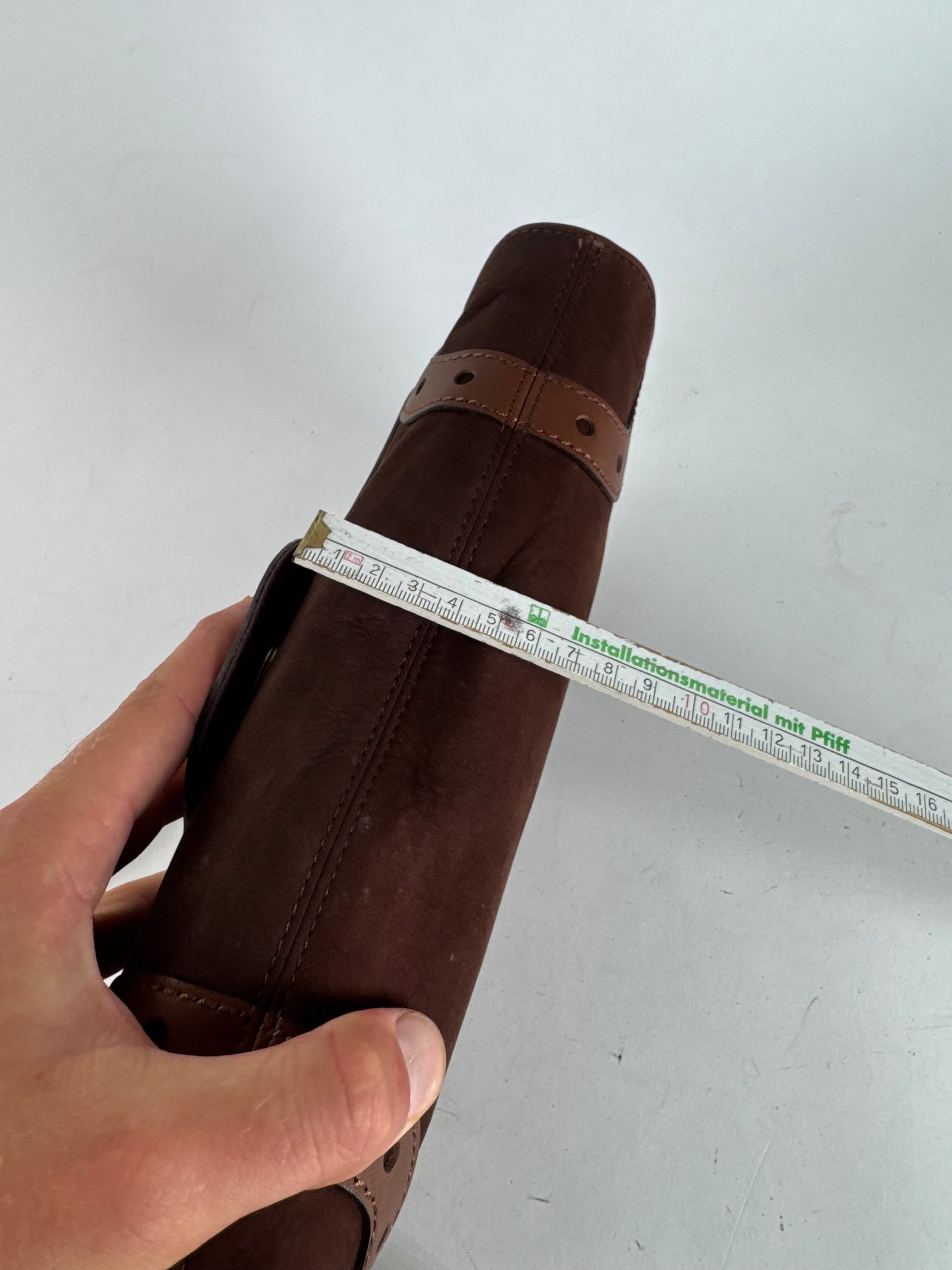 État : L'extérieur en daim et en cuir est propre et présente de légères traces d'usure. La bandoulière amovible est solide et intacte. La quincaillerie est brillante et présente de légères rayures. La doublure intérieure est en excellent état et présente de légères traces d'utilisation.