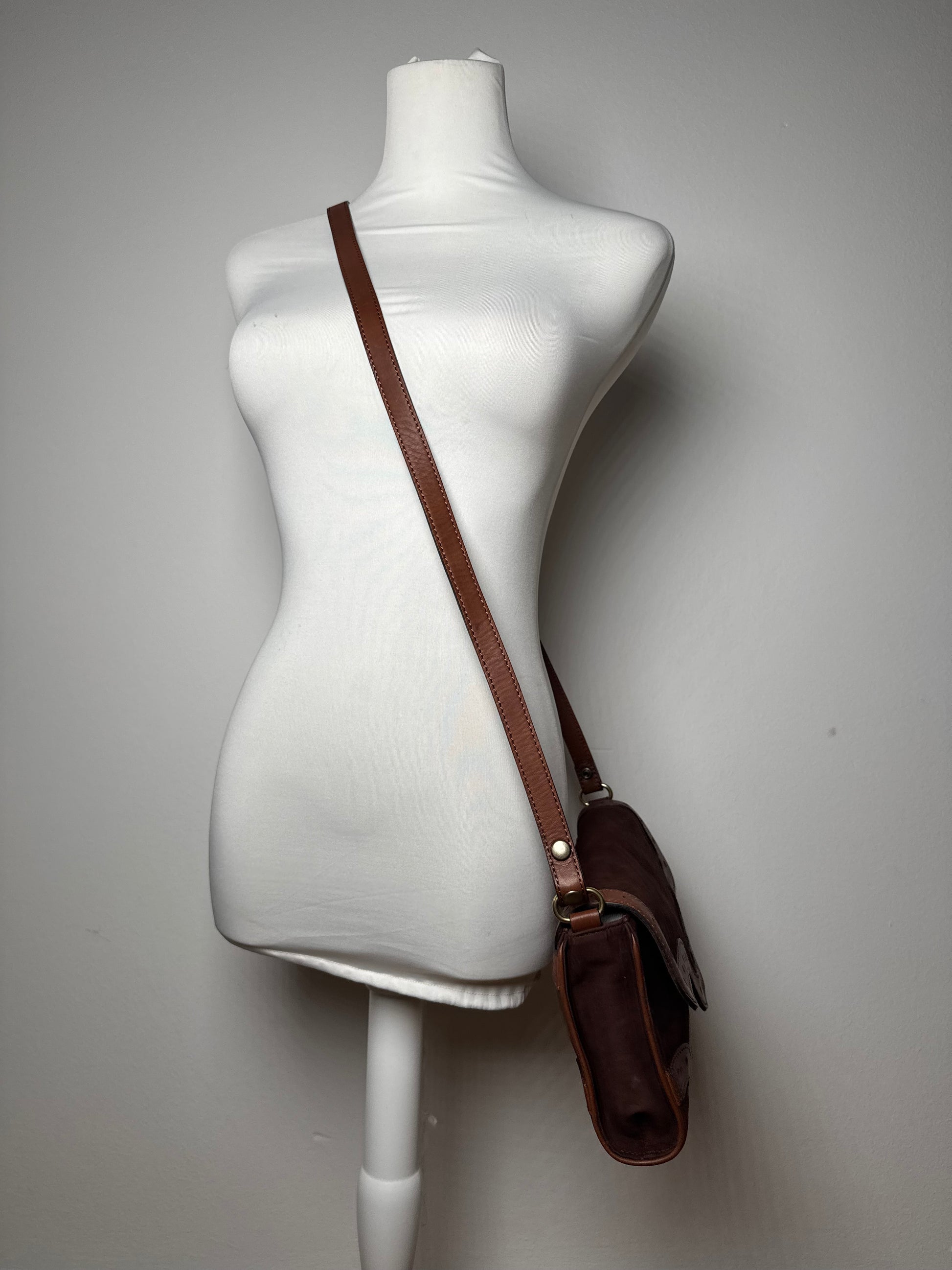 Sac bandoulière vintage CHLOÉ en daim et cuir. Ce sac bandoulière vintage est finement confectionné en daim marron associé à du cuir lisse marron. Il est doté d'une bandoulière amovible, d'une fermeture aimantée et de finitions en acier doré. Il s'ouvre sur un intérieur en toile marron.