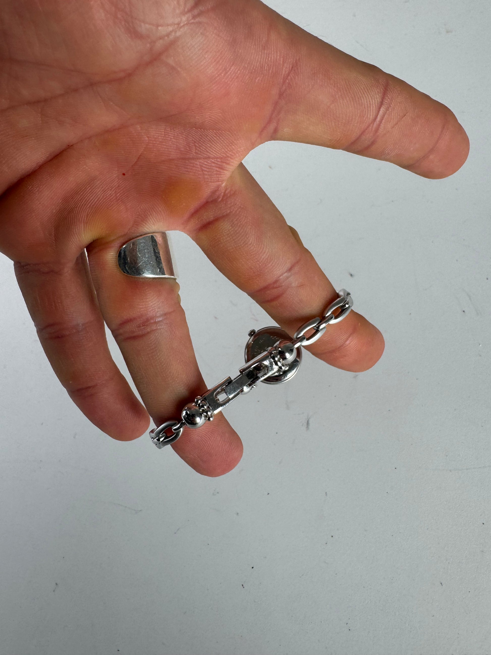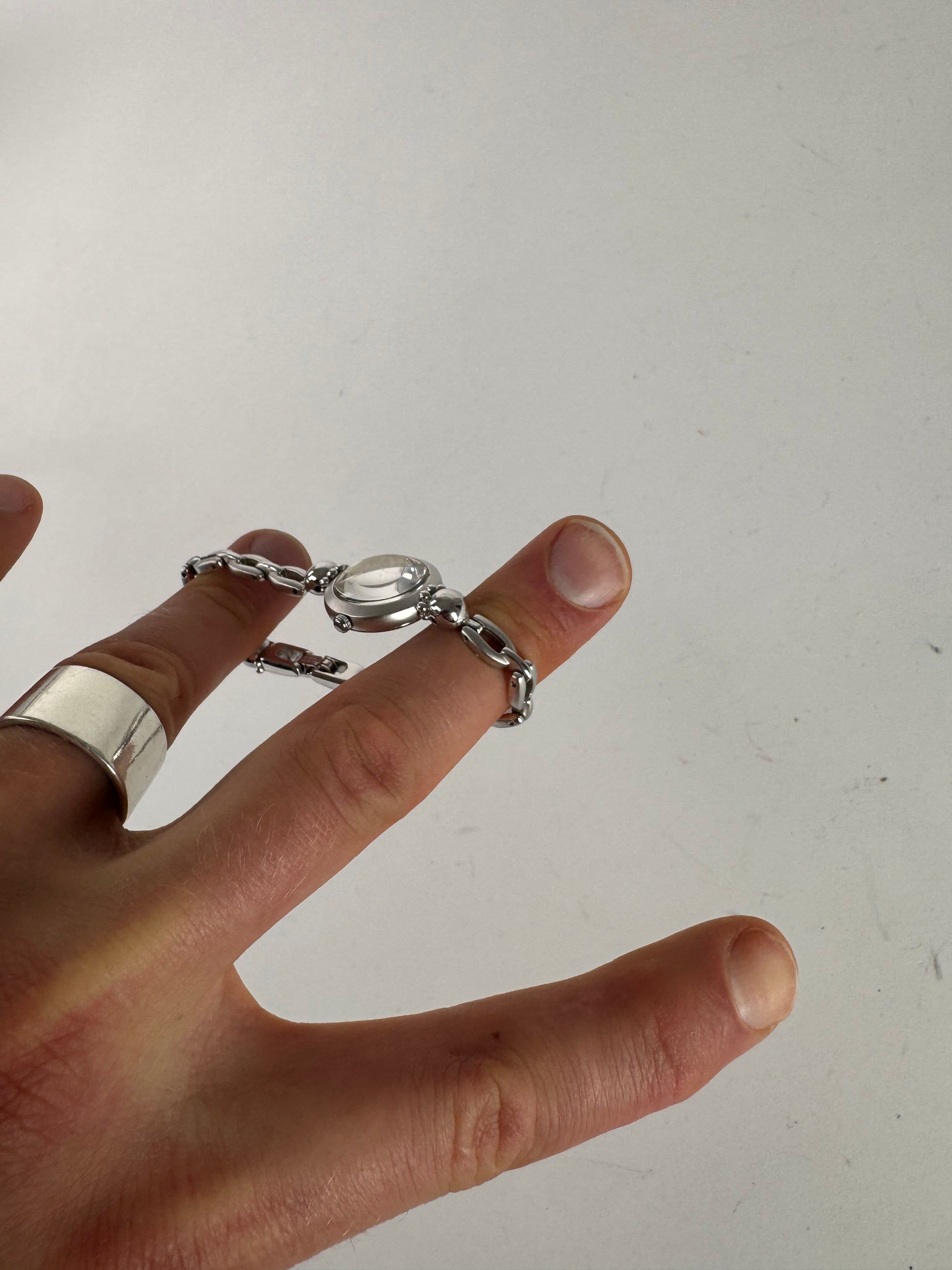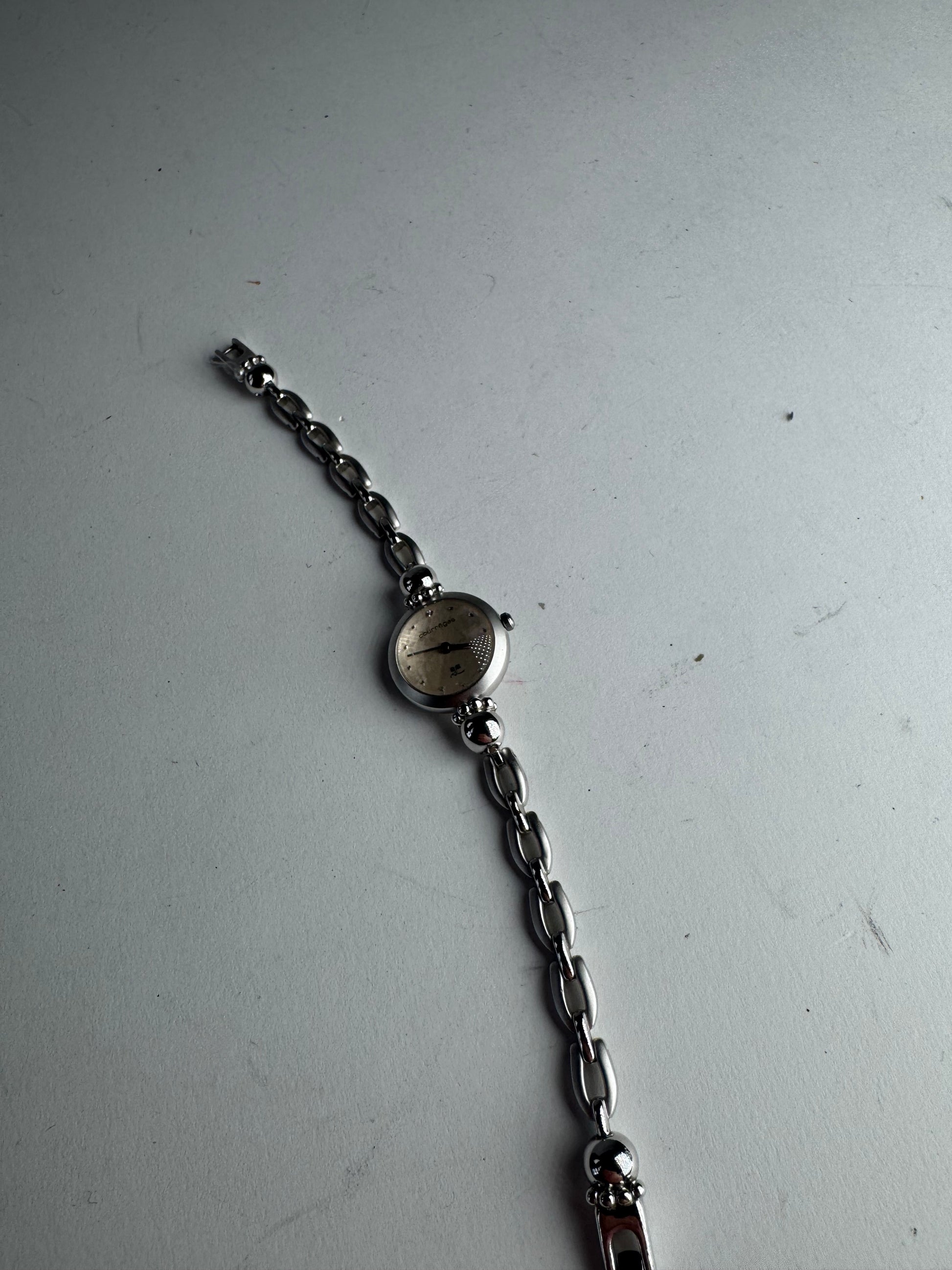 Montre vintage COURRÈGES PARIS. Cette montre vintage Courrèges Paris est dotée d'un élégant boîtier et d'un bracelet en acier inoxydable argenté , associés à un cadran blanc classique. Son mouvement à quartz , équipé d'une pile neuve , garantit une heure précise. Étanche, fabriquée au Japon , elle mesure 1,5 cm de diamètre . Malgré de légères rayures, elle est en très bon état .