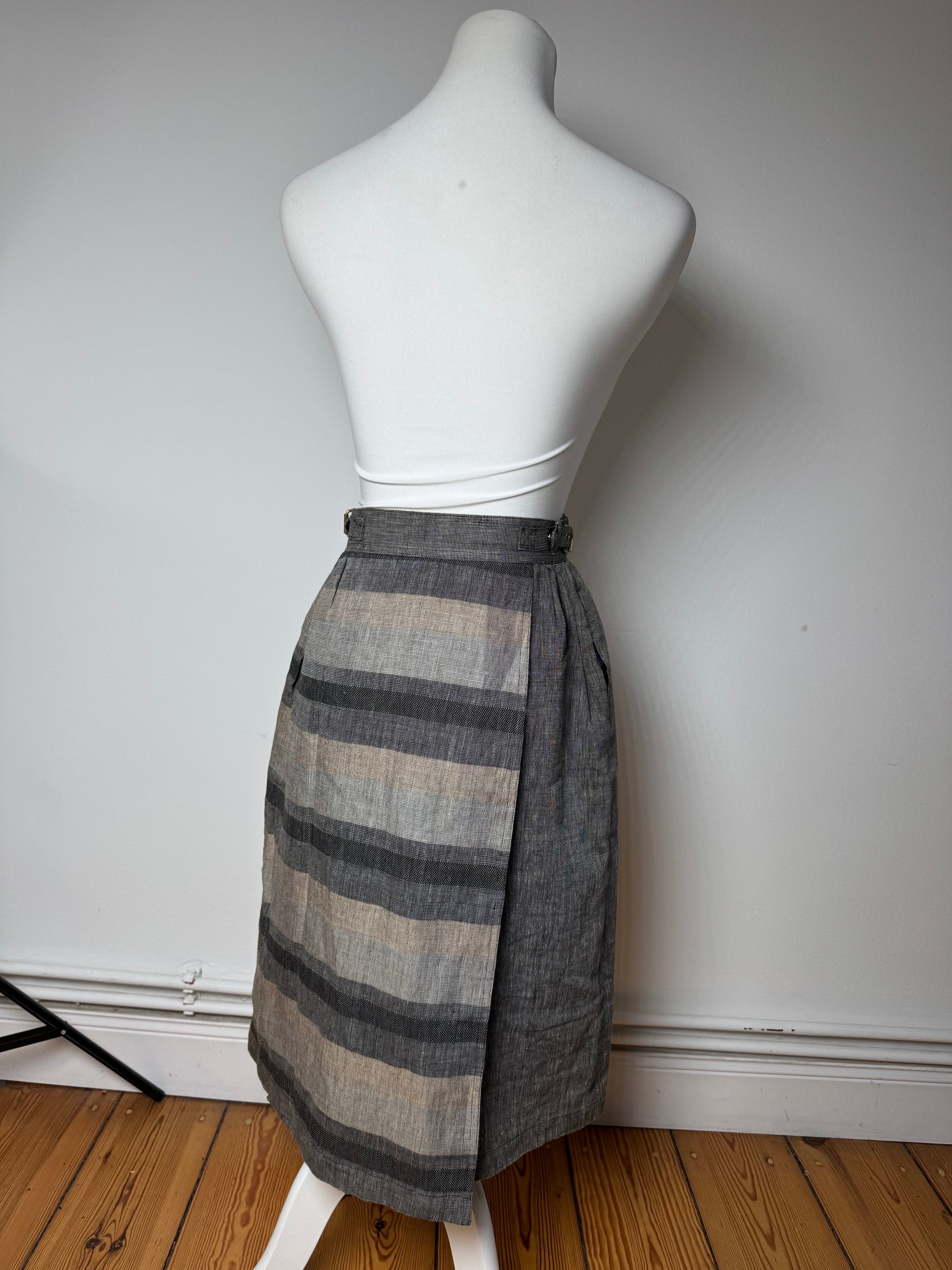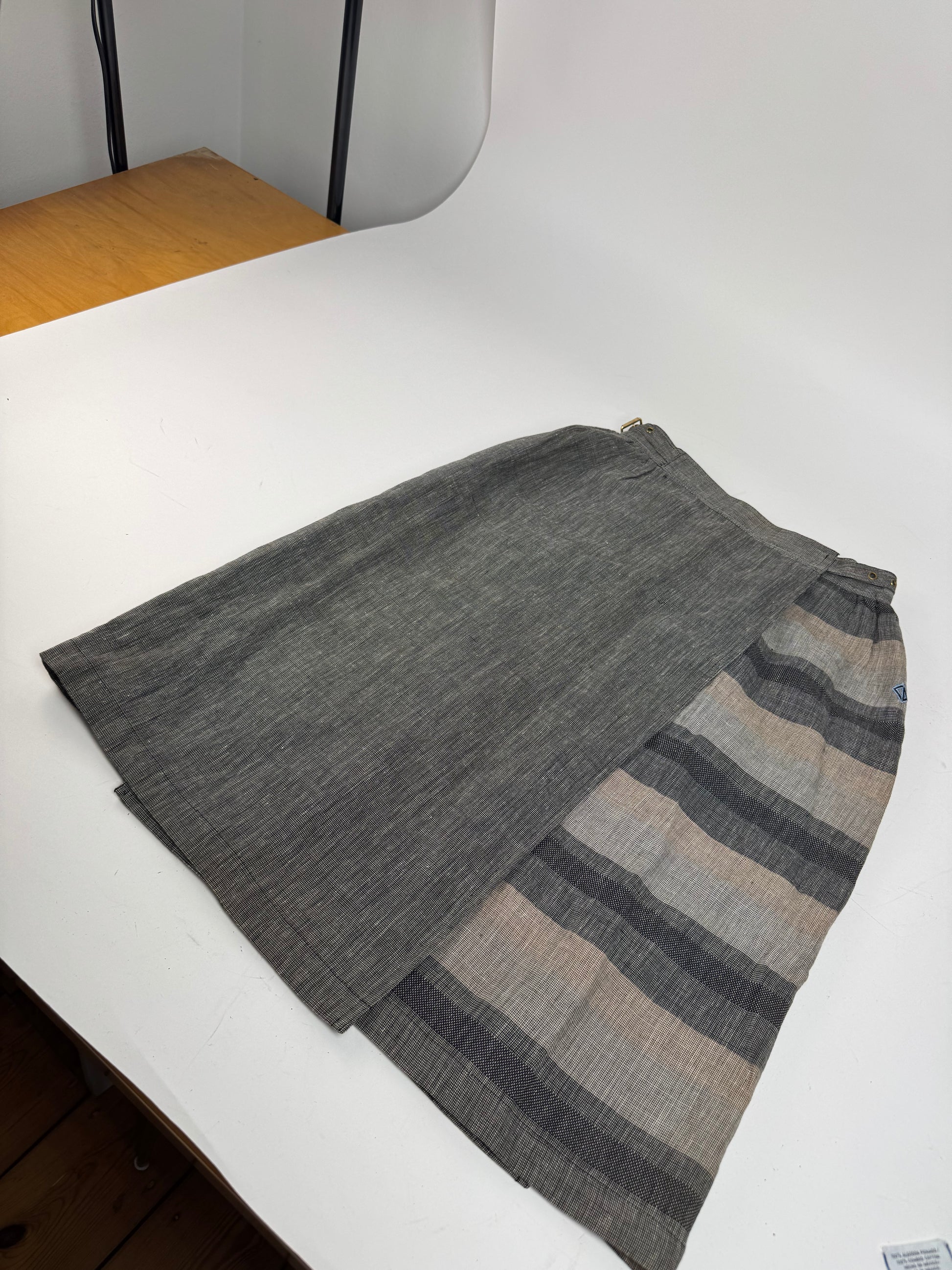 Vintage Dior Asymetric Checked Wool Skirt M Grey