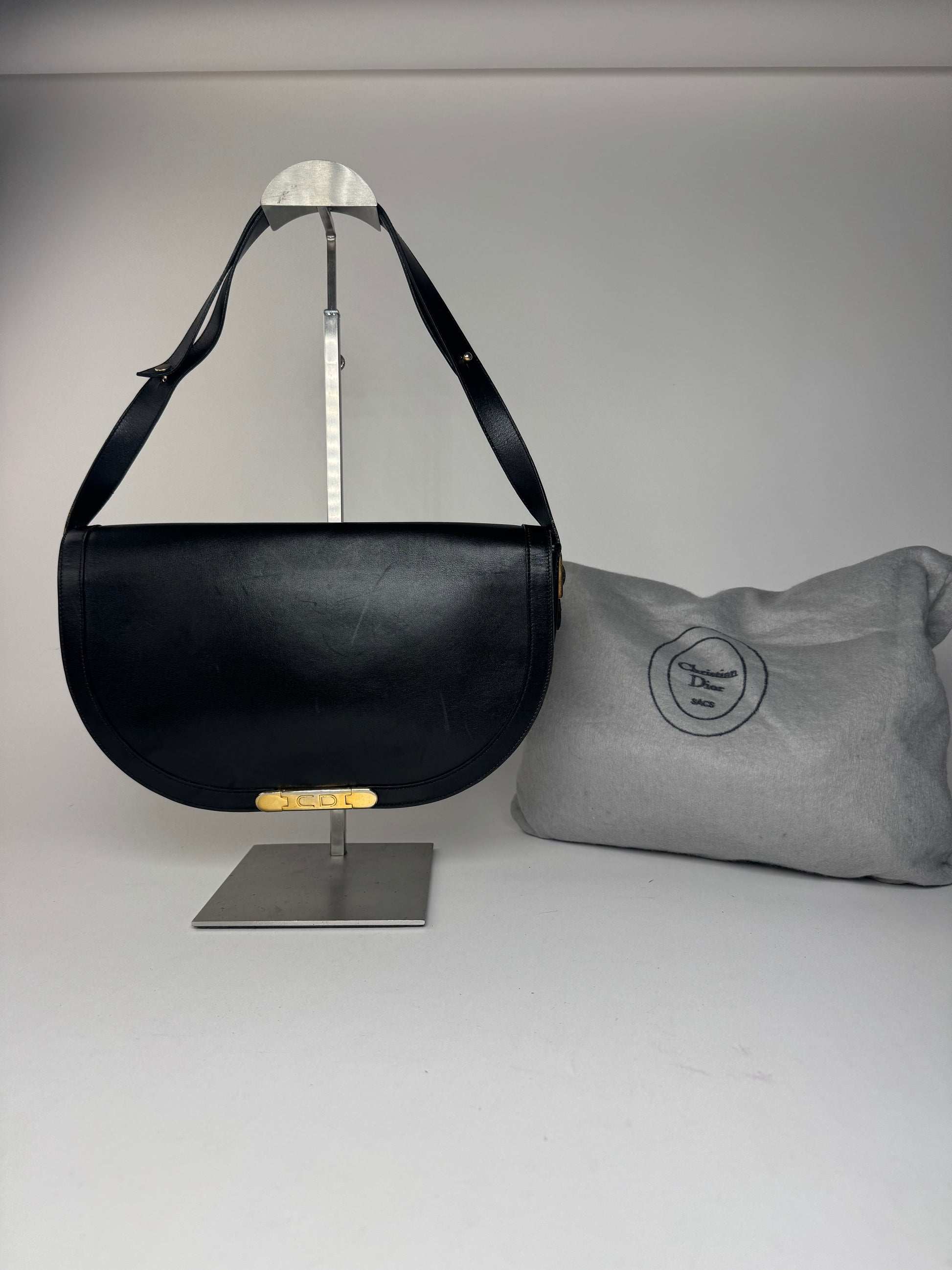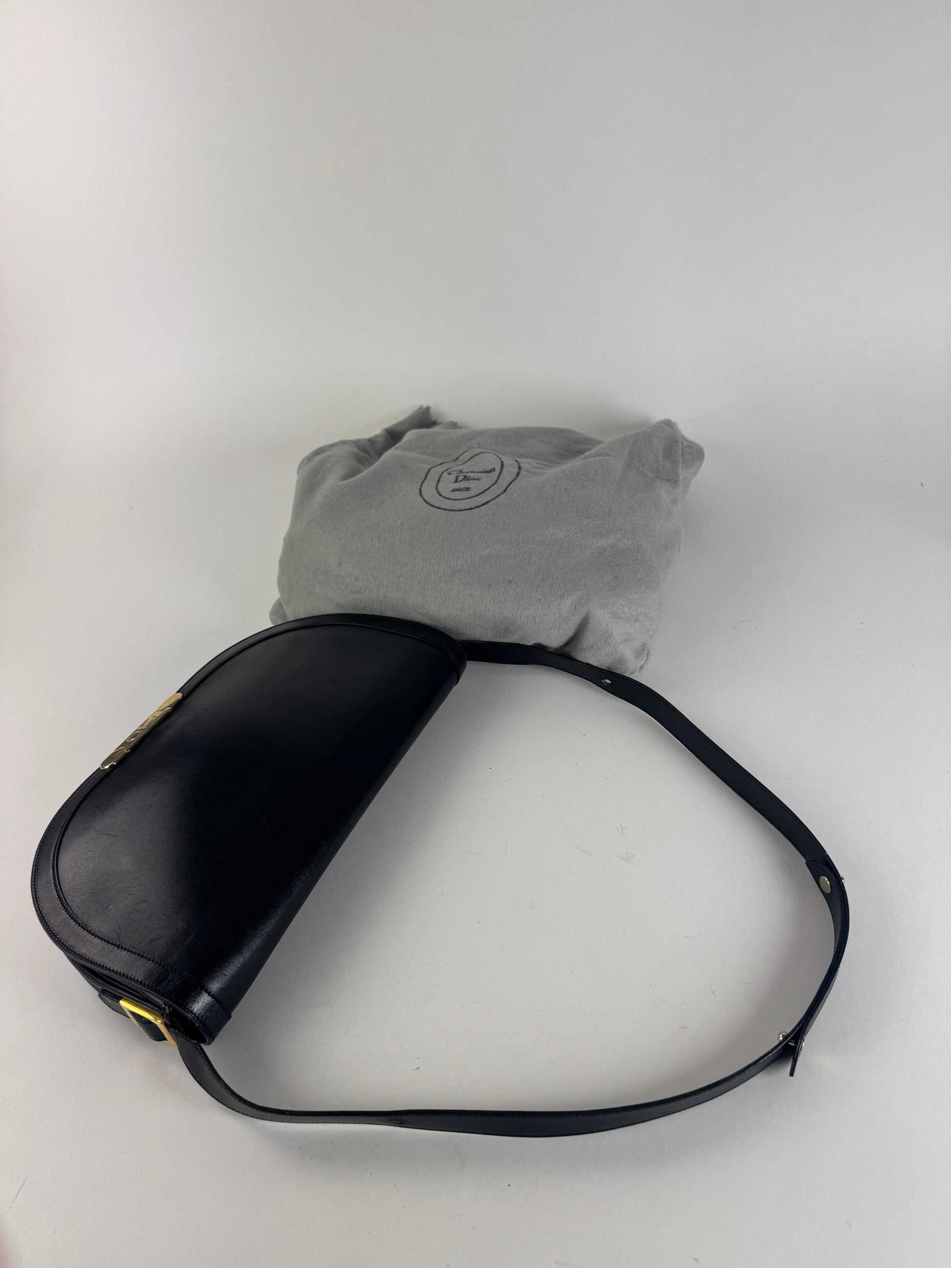 Sac vintage Dior en cuir noir à 2 voies