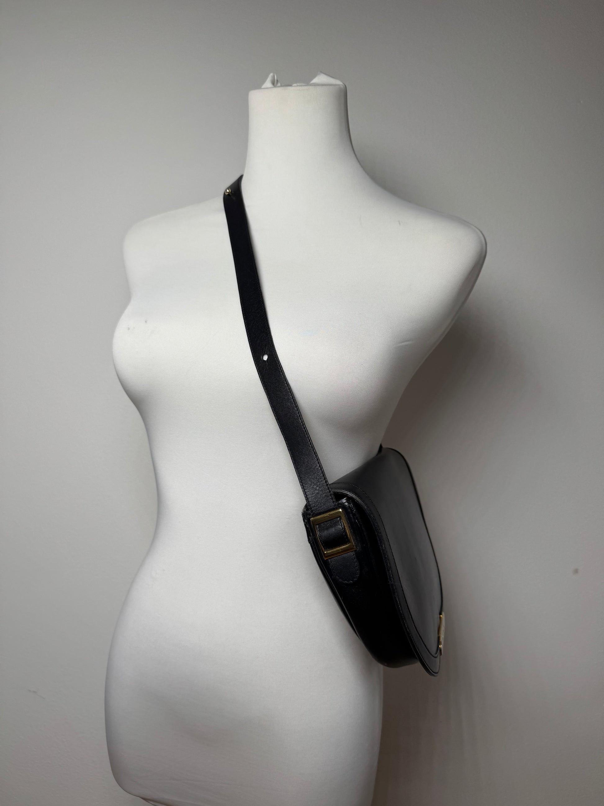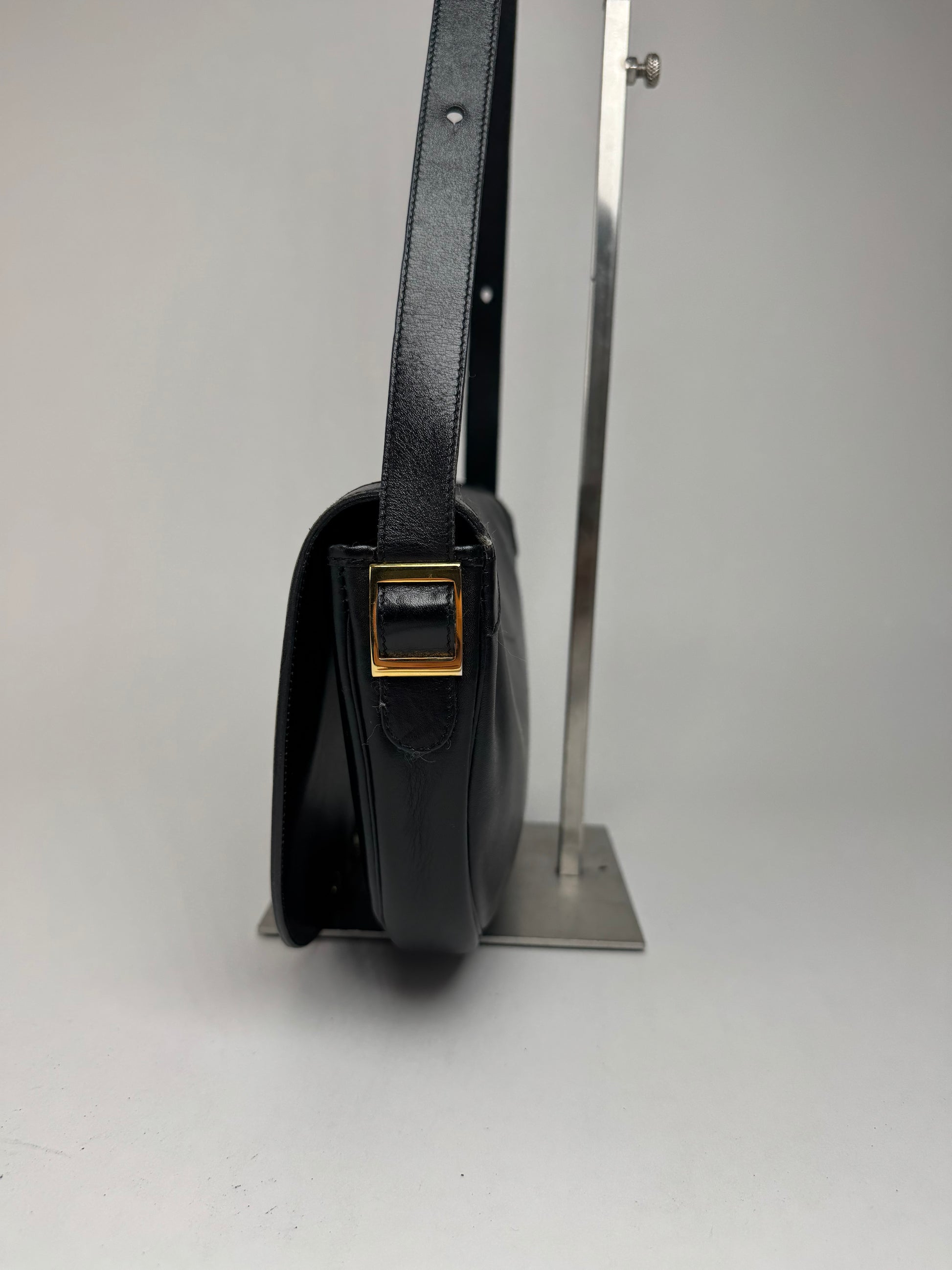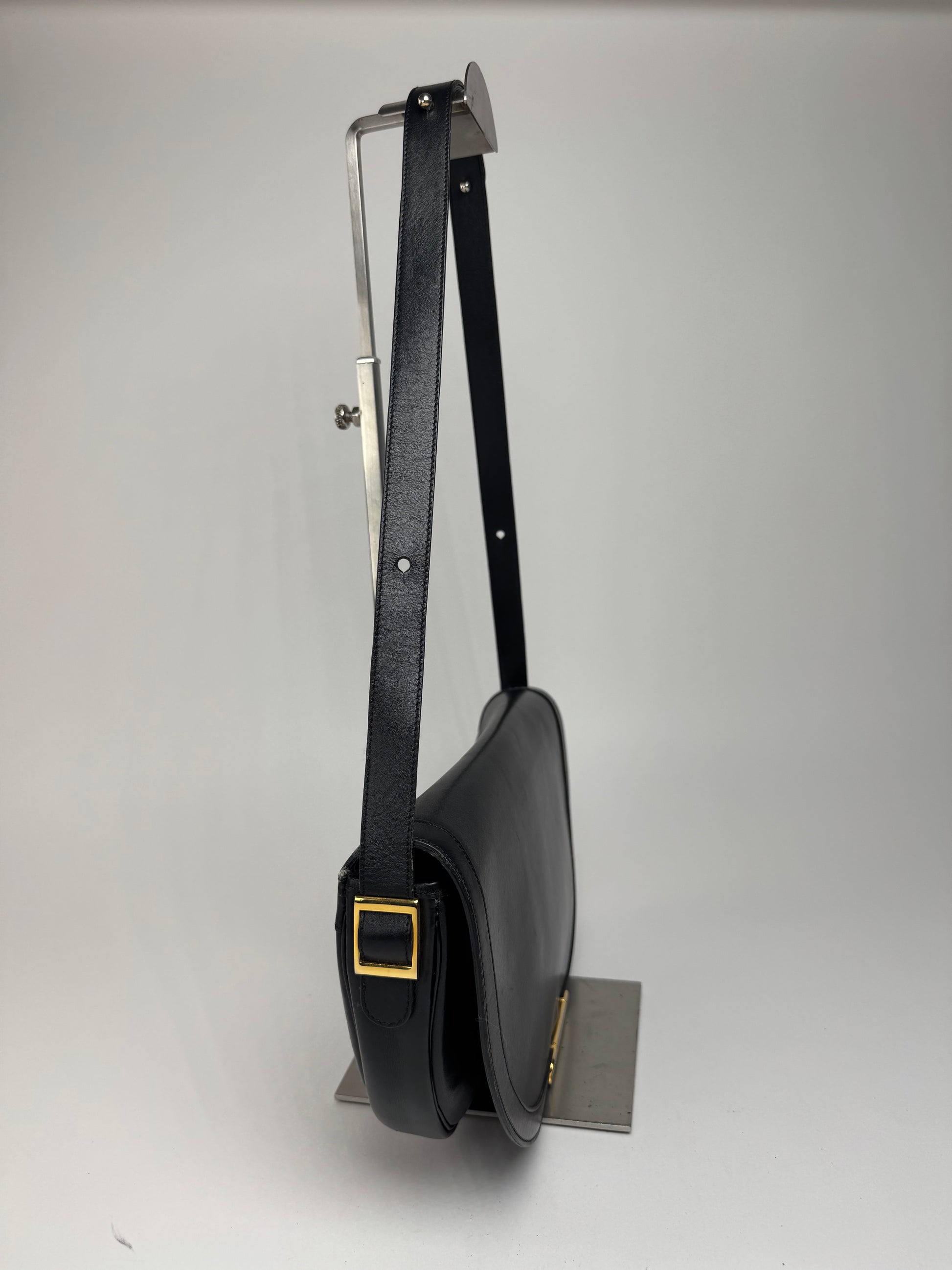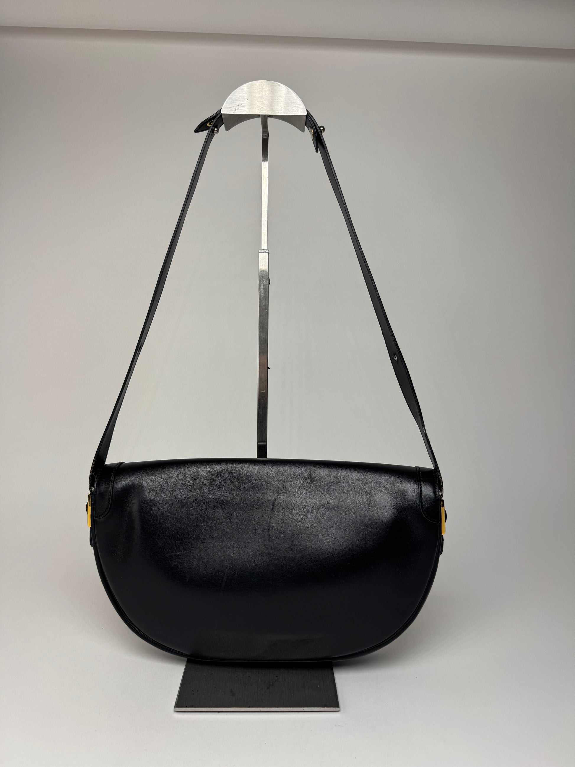 Sac bandoulière vintage DIOR. Cet élégant sac à main est finement confectionné en cuir noir avec des finitions en acier doré. Il est orné d'une application CD en acier doré sur le devant et d'une bandoulière réglable pour un porté épaule. Livré avec une housse de protection Dior.