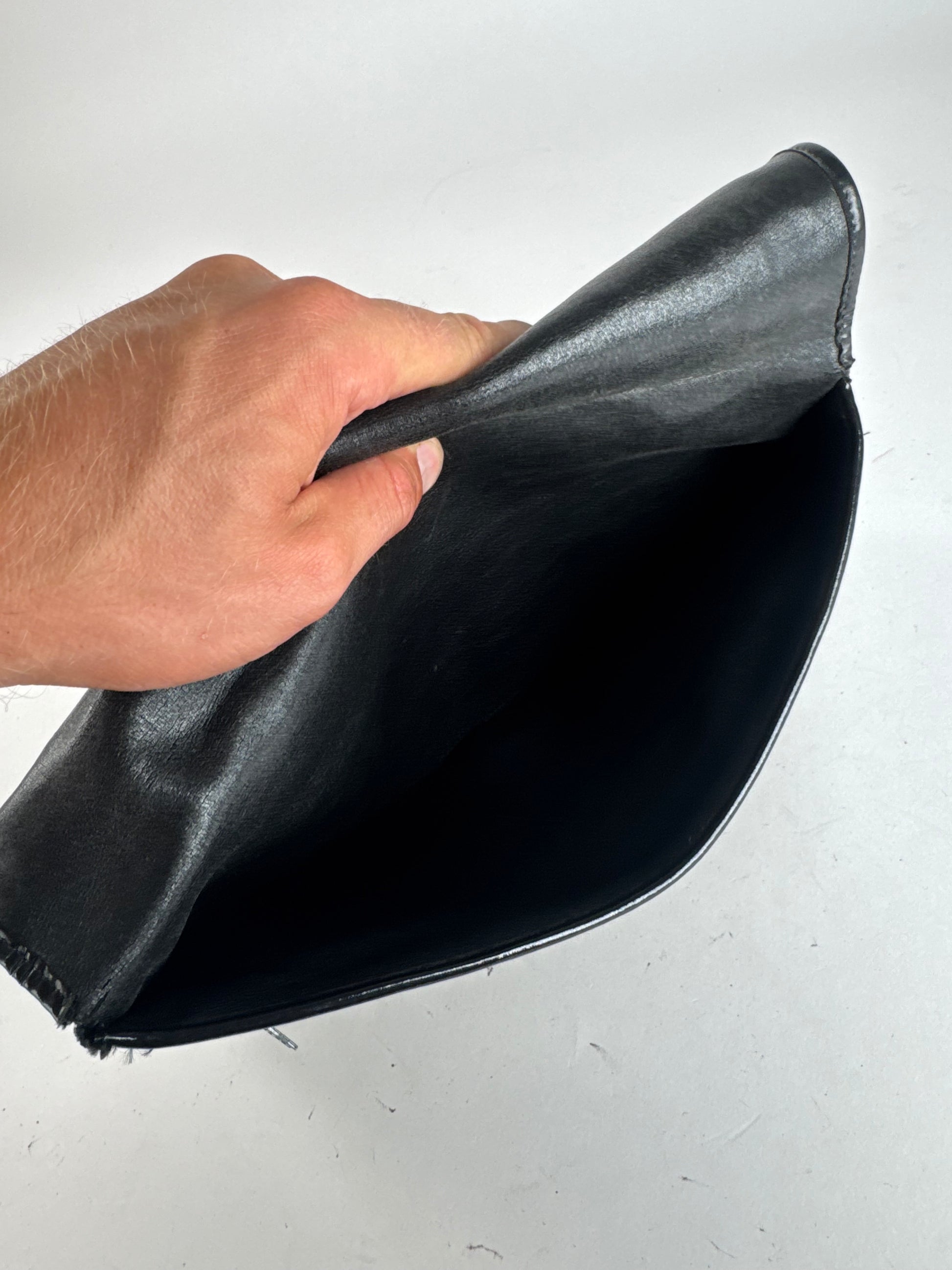 Pochette DIOR Vintage Beige-Navy Oblique Monogram. Cette élégante pochette est confectionnée en toile beige et bleu marine, ornée de l'emblématique monogramme Dior Oblique, introduit par Marc Bohan en 1967 et célèbre pour son motif graphique audacieux, devenu une signature de la maison. Elle est ornée de finitions en cuir noir, d'un logo Dior en acier doré sur le devant et d'une fermeture à bouton-pression (non fonctionnelle). L'intérieur est doublé de cuir noir.