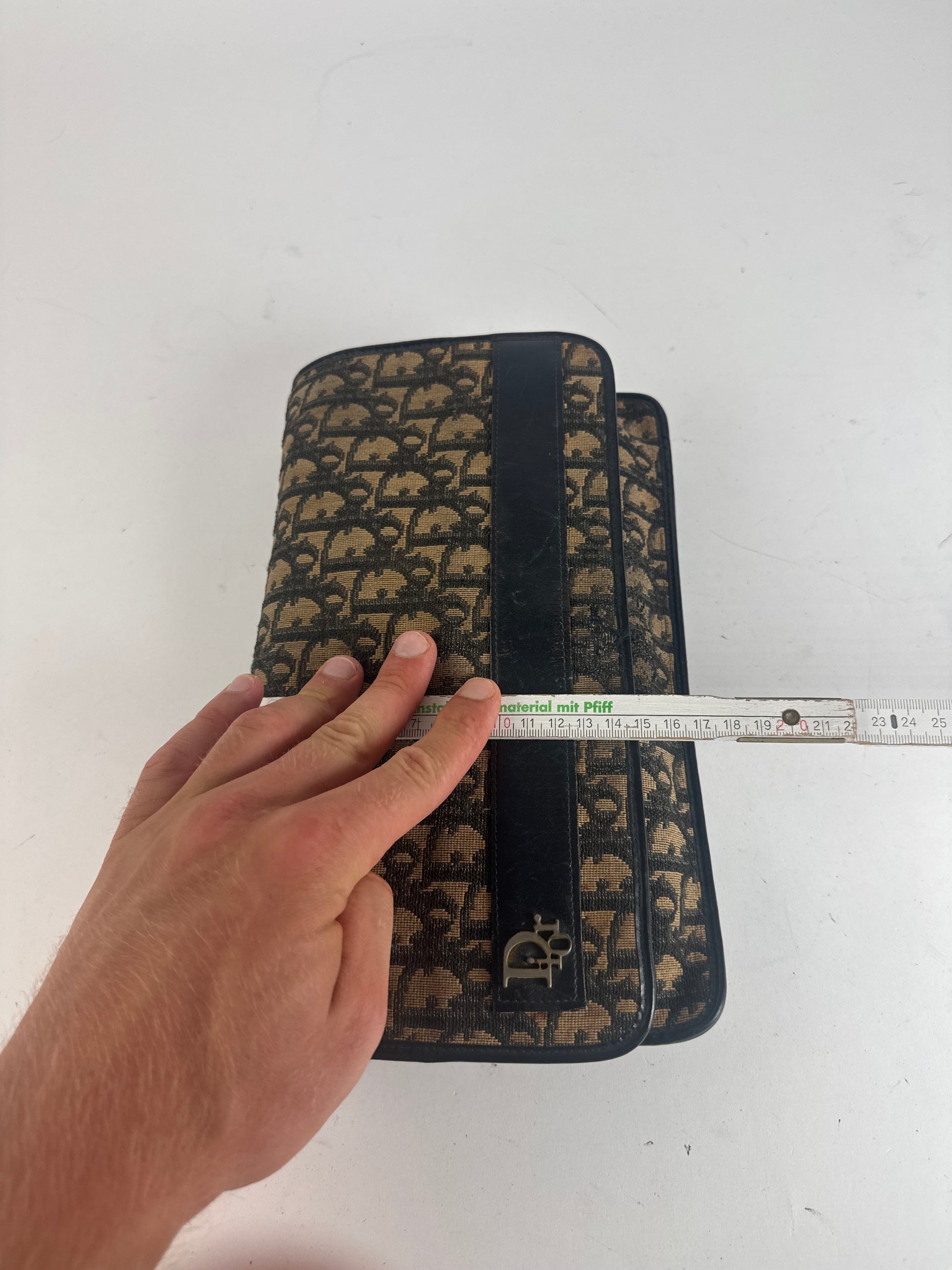 Pochette vintage Dior Oblique Monogram Beige Bleu Marine