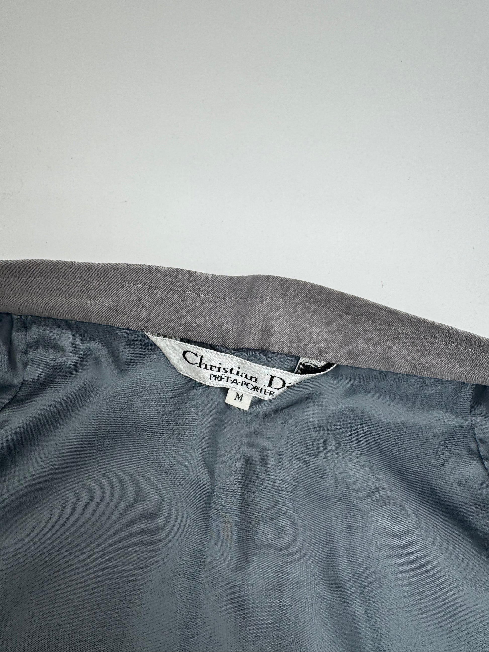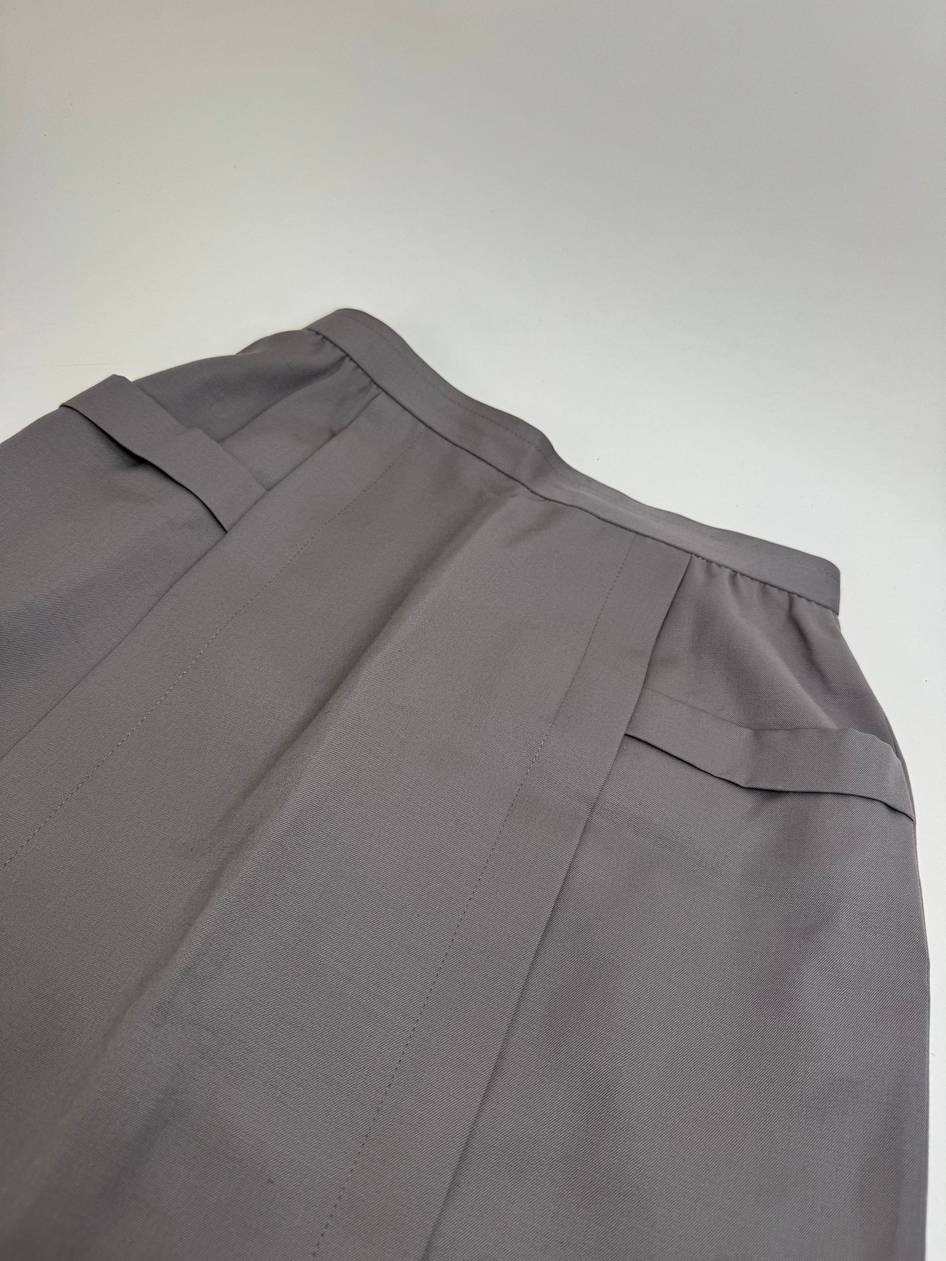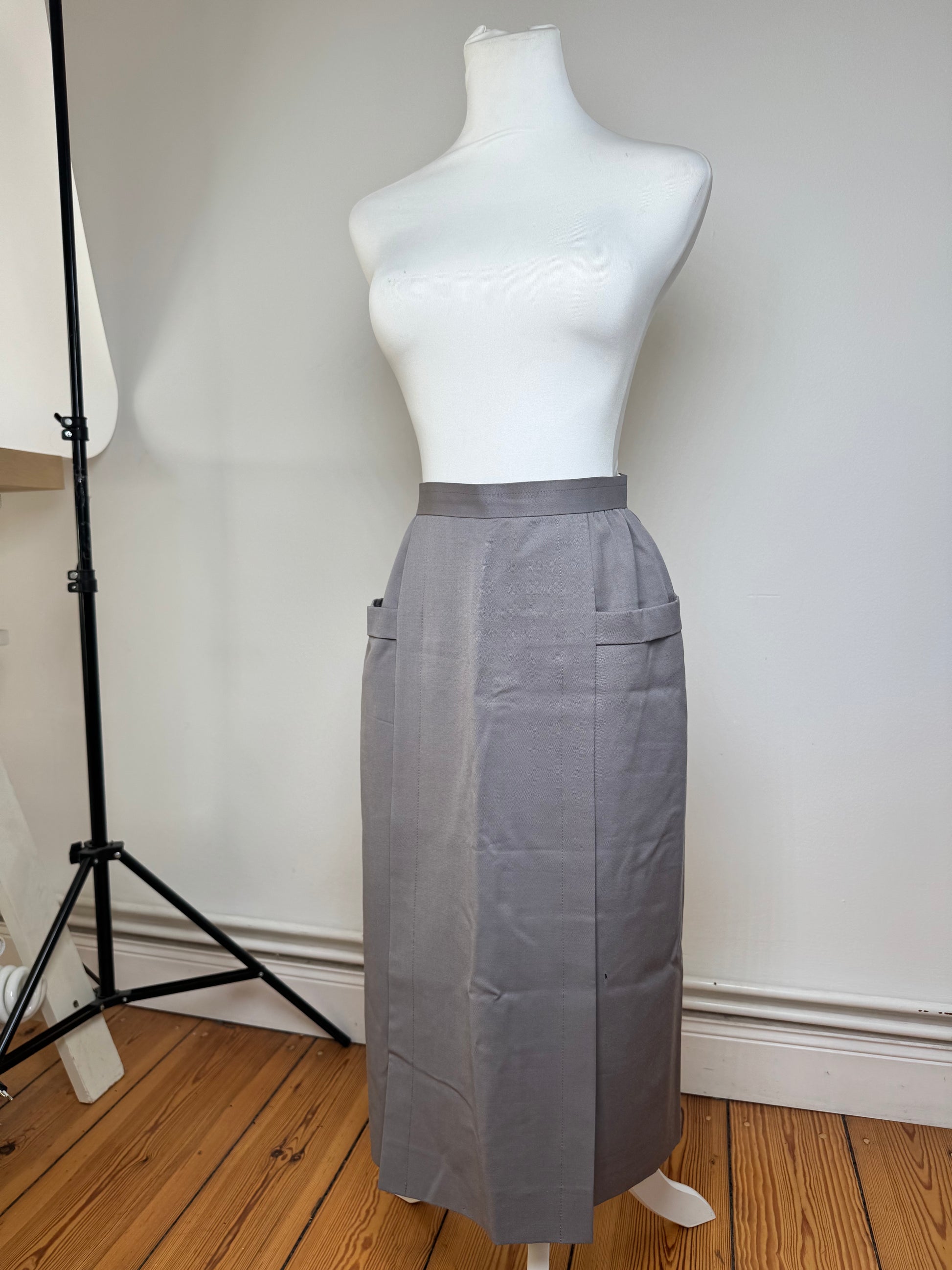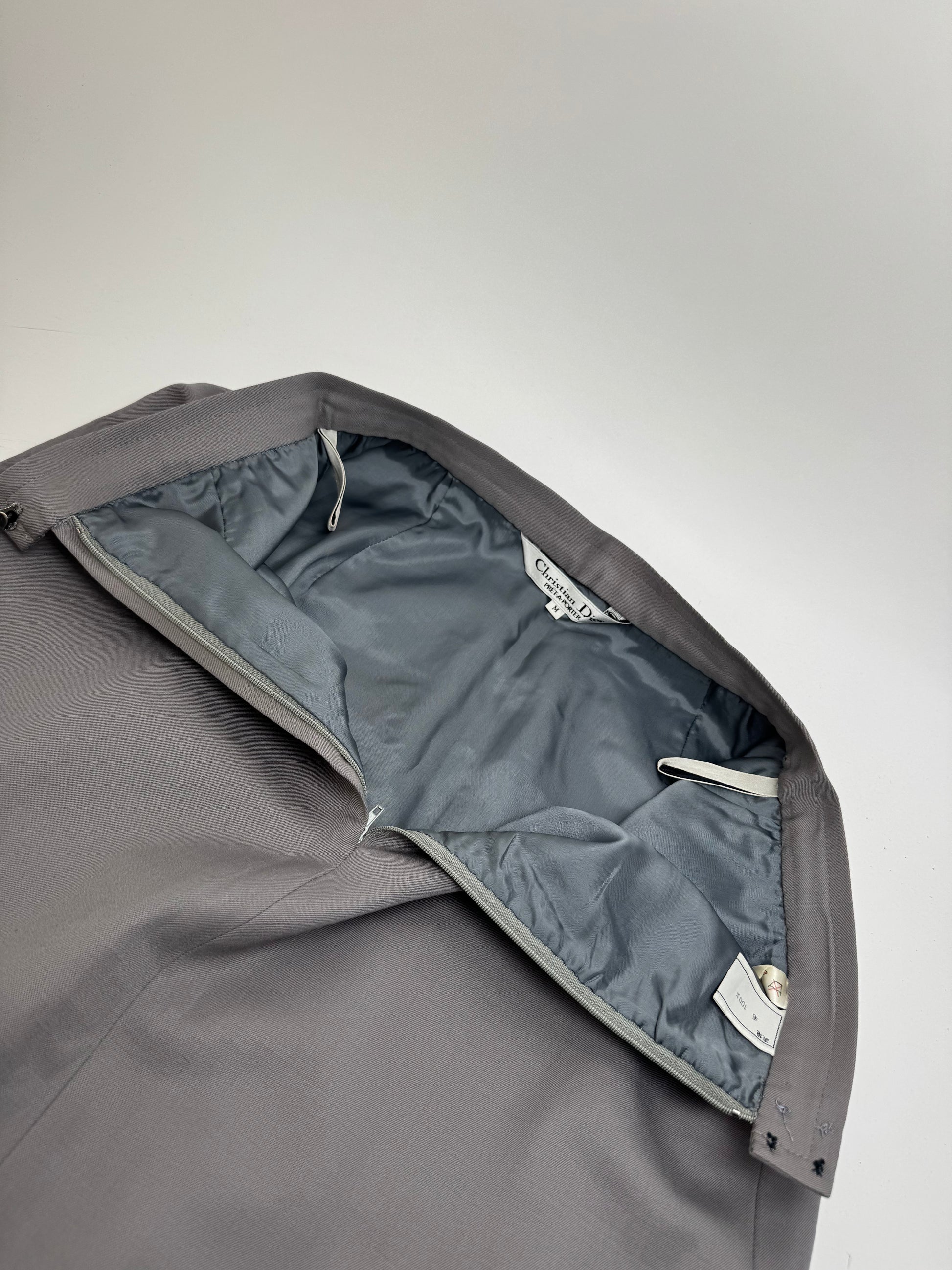 This elegant vintage skirt is finely crafted from smooth grey wool and features a classic straight silhouette with two front pockets. The piece reflects Dior’s timeless sophistication and refined tailoring. The mannequin on the photo wears size 38/M.