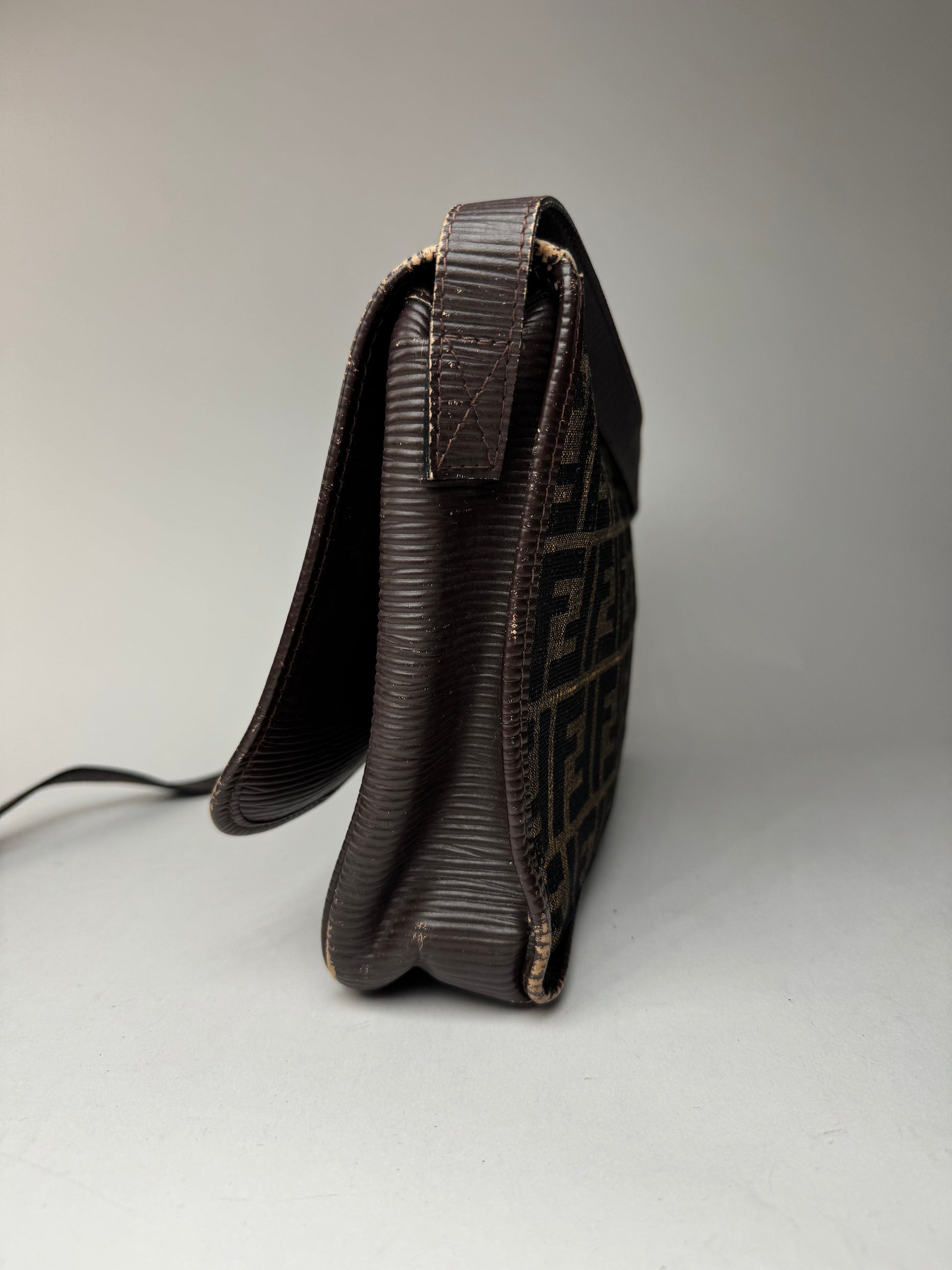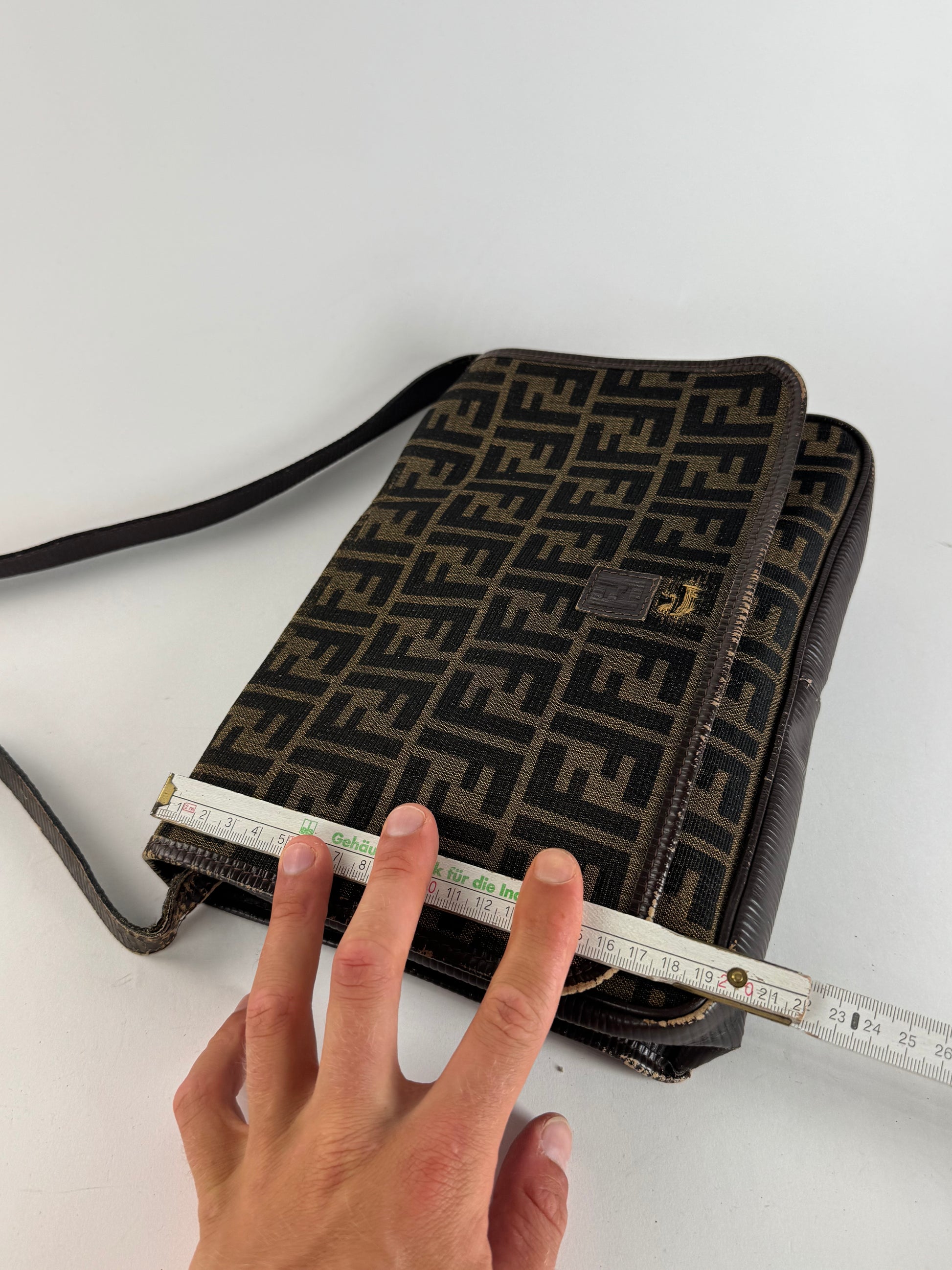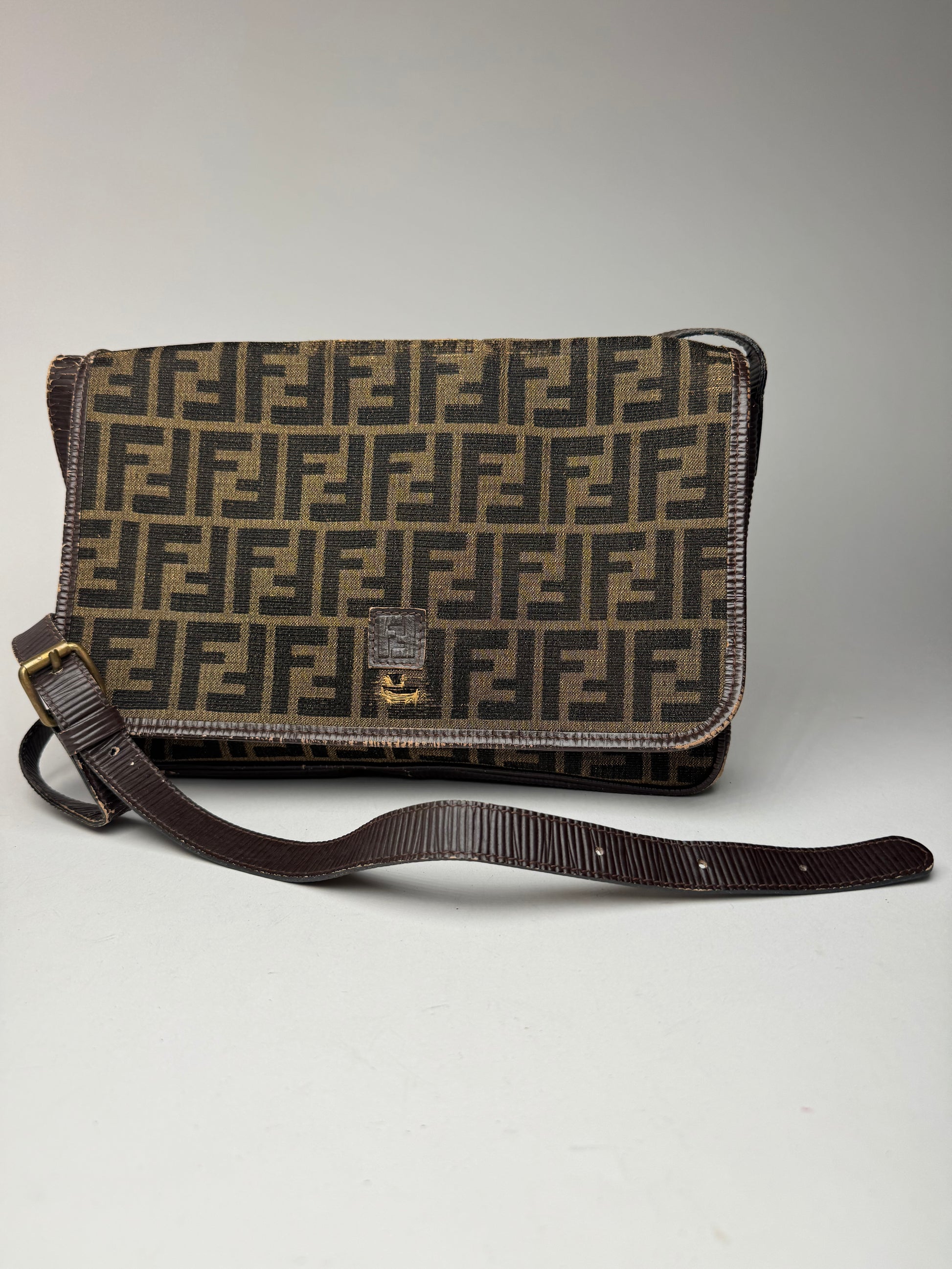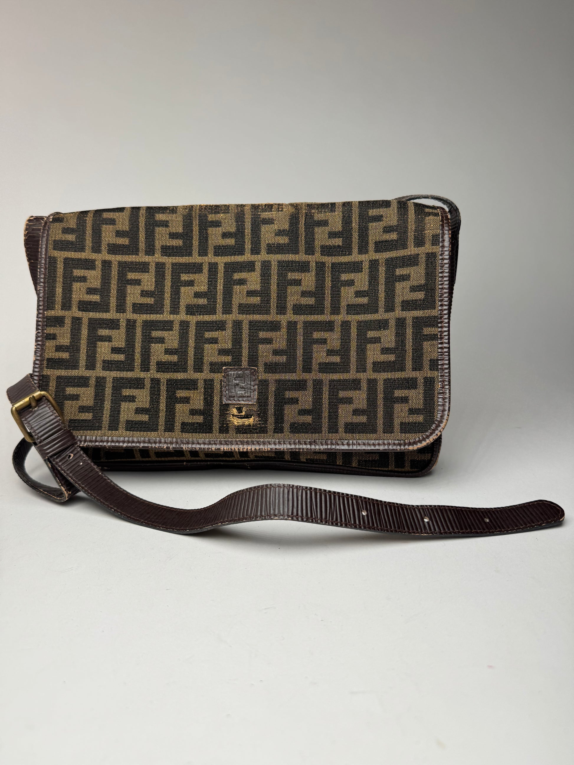 Sac à bandoulière en toile monogramme FENDI vintage FF (années 1980).