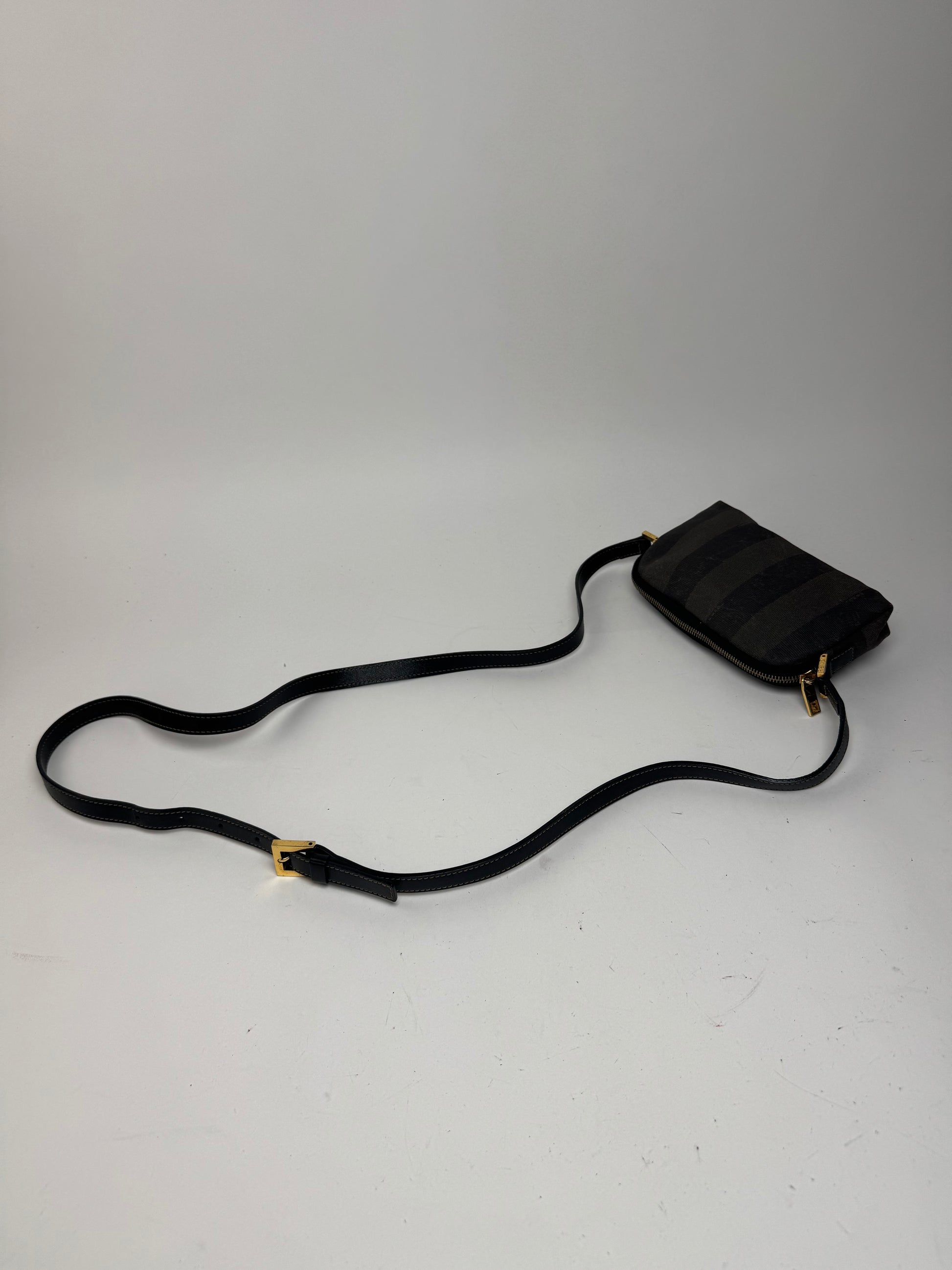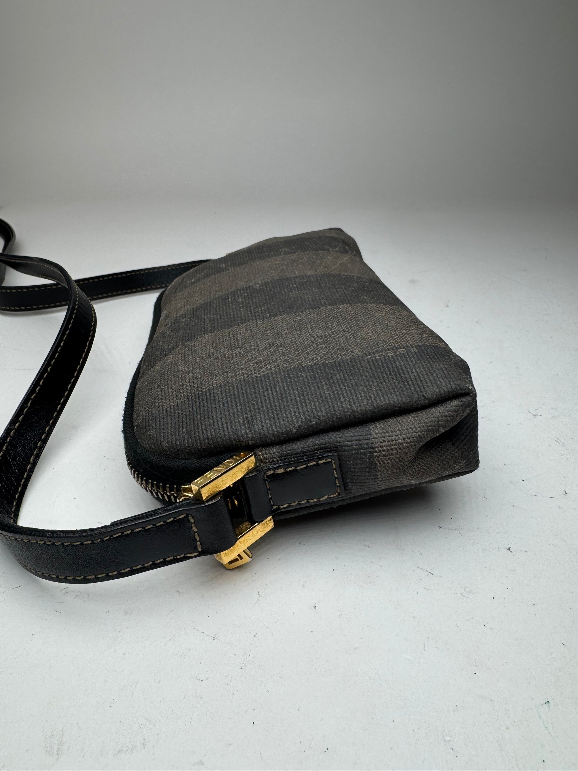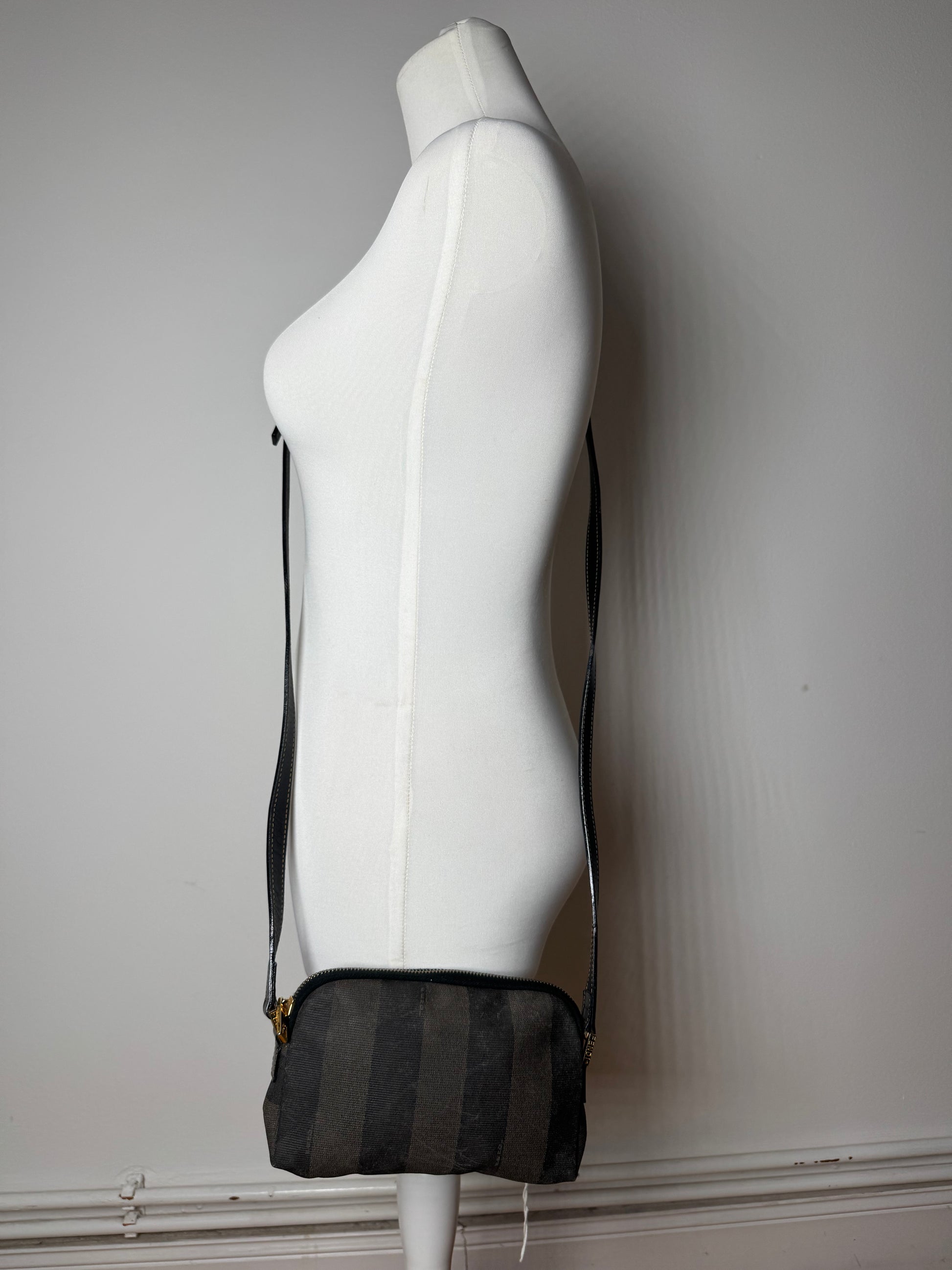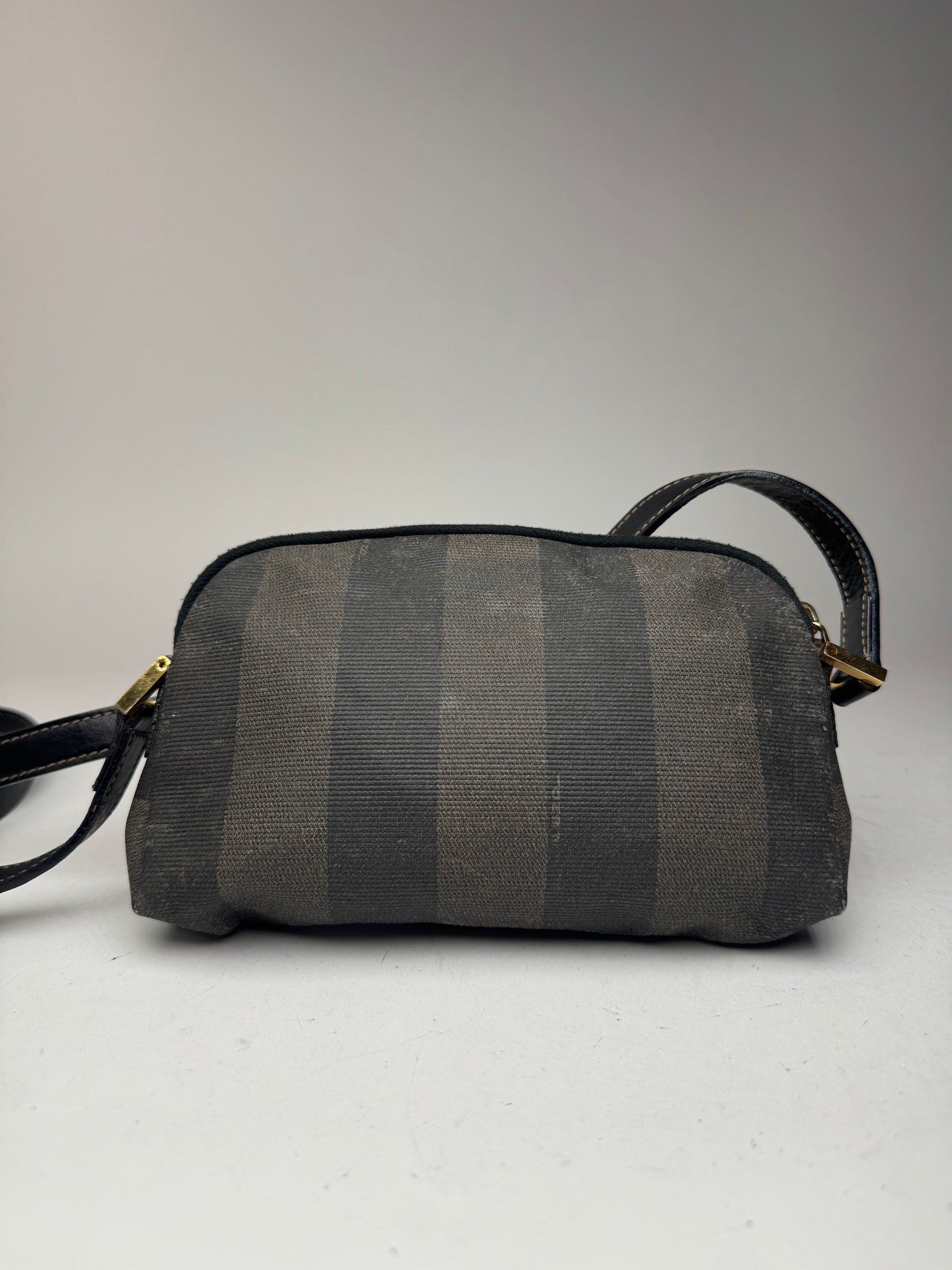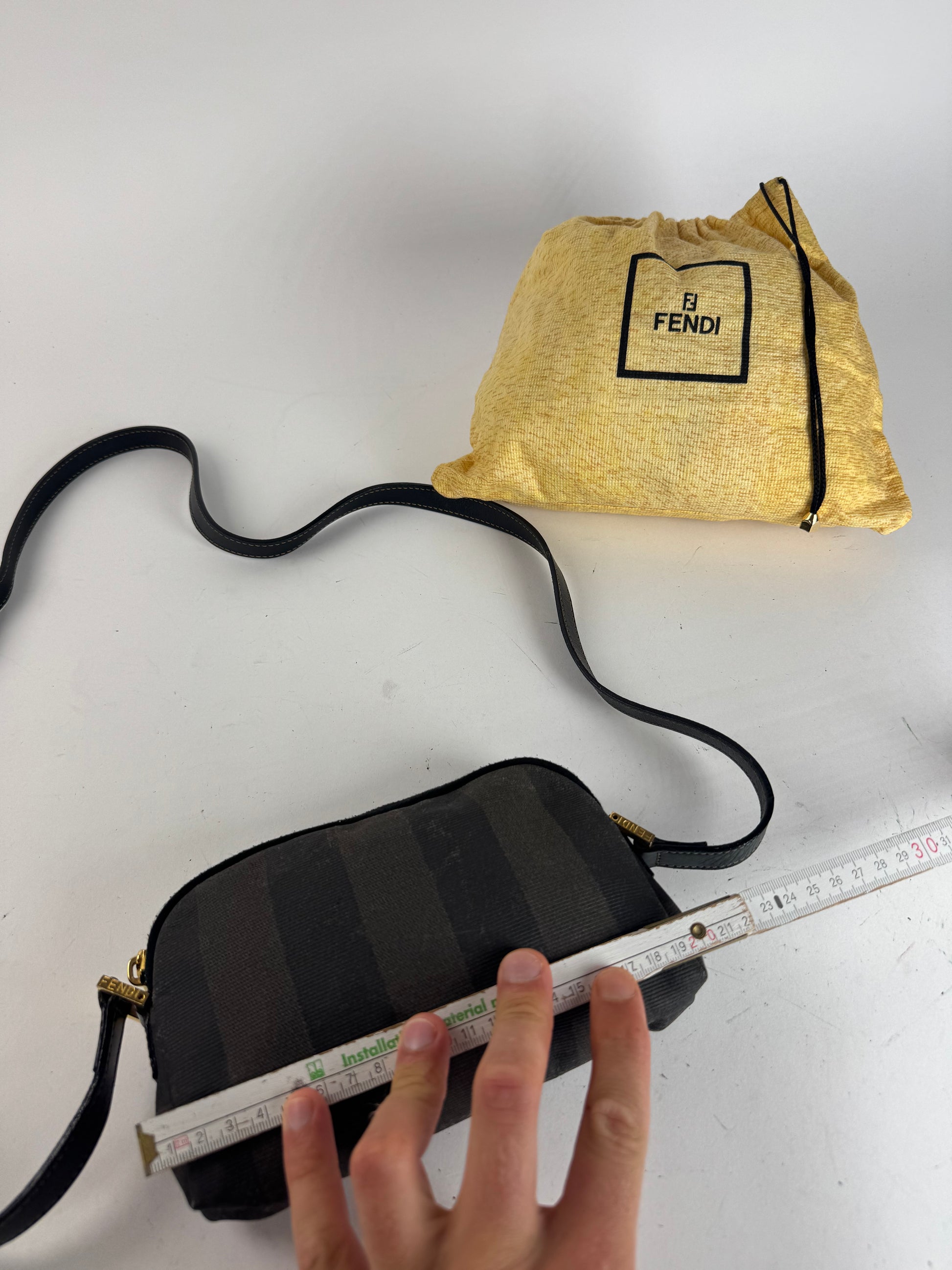 Sac bandoulière vintage Fendi Roma en cuir rayé noir marron