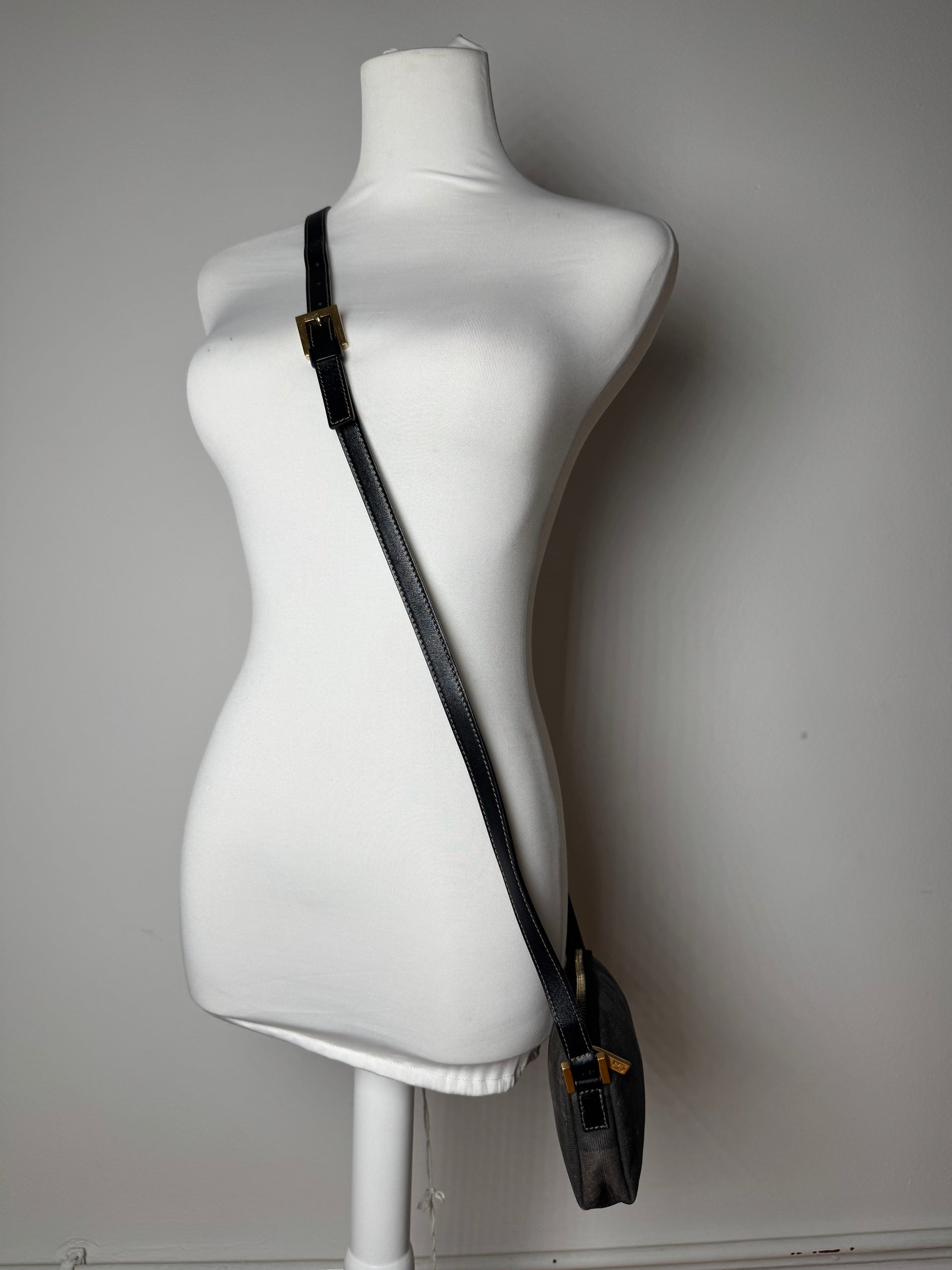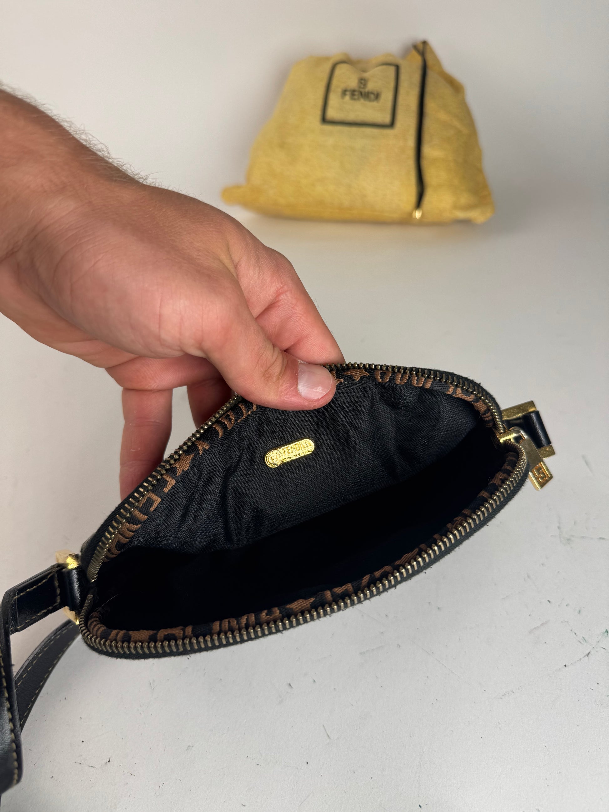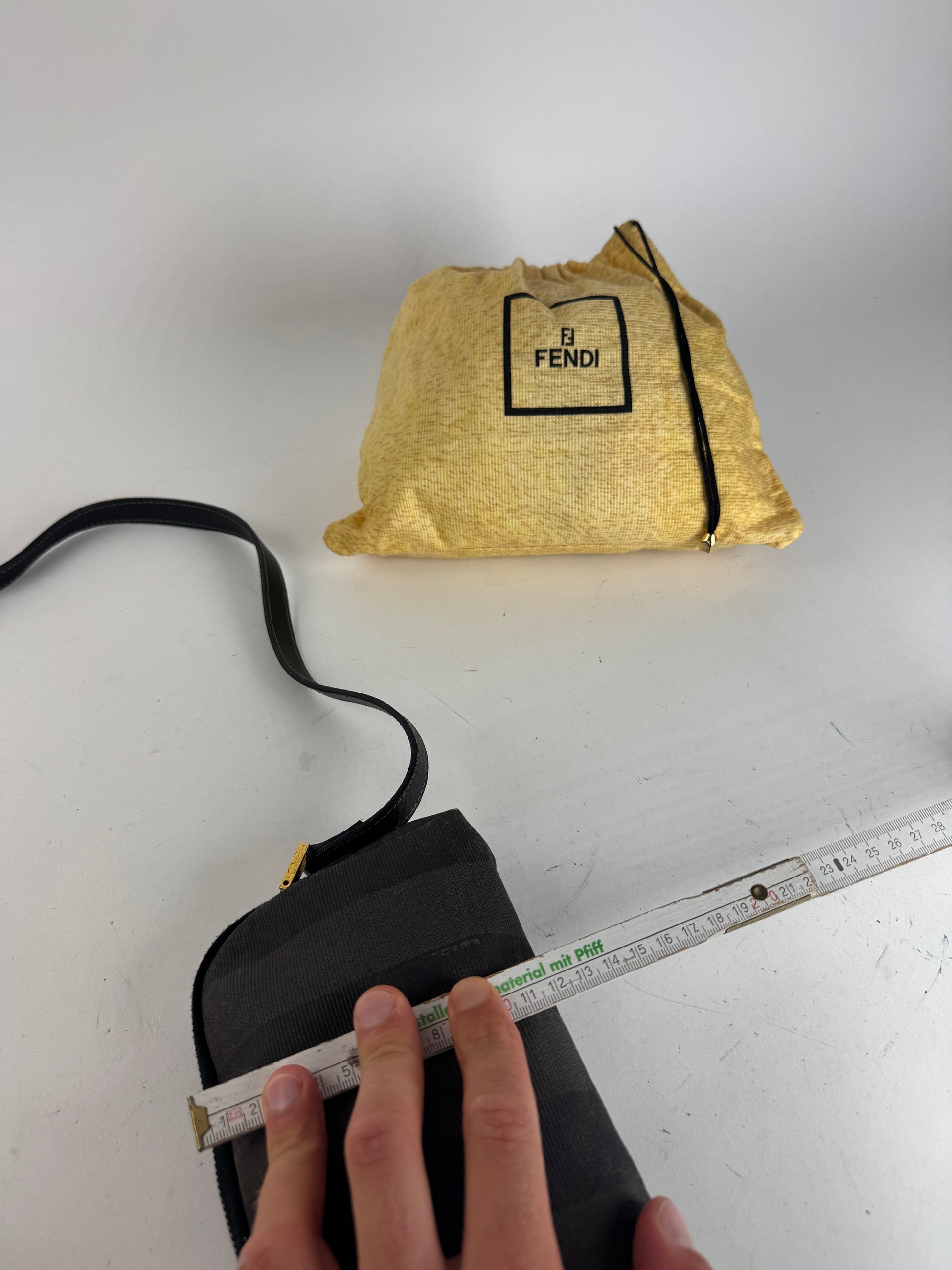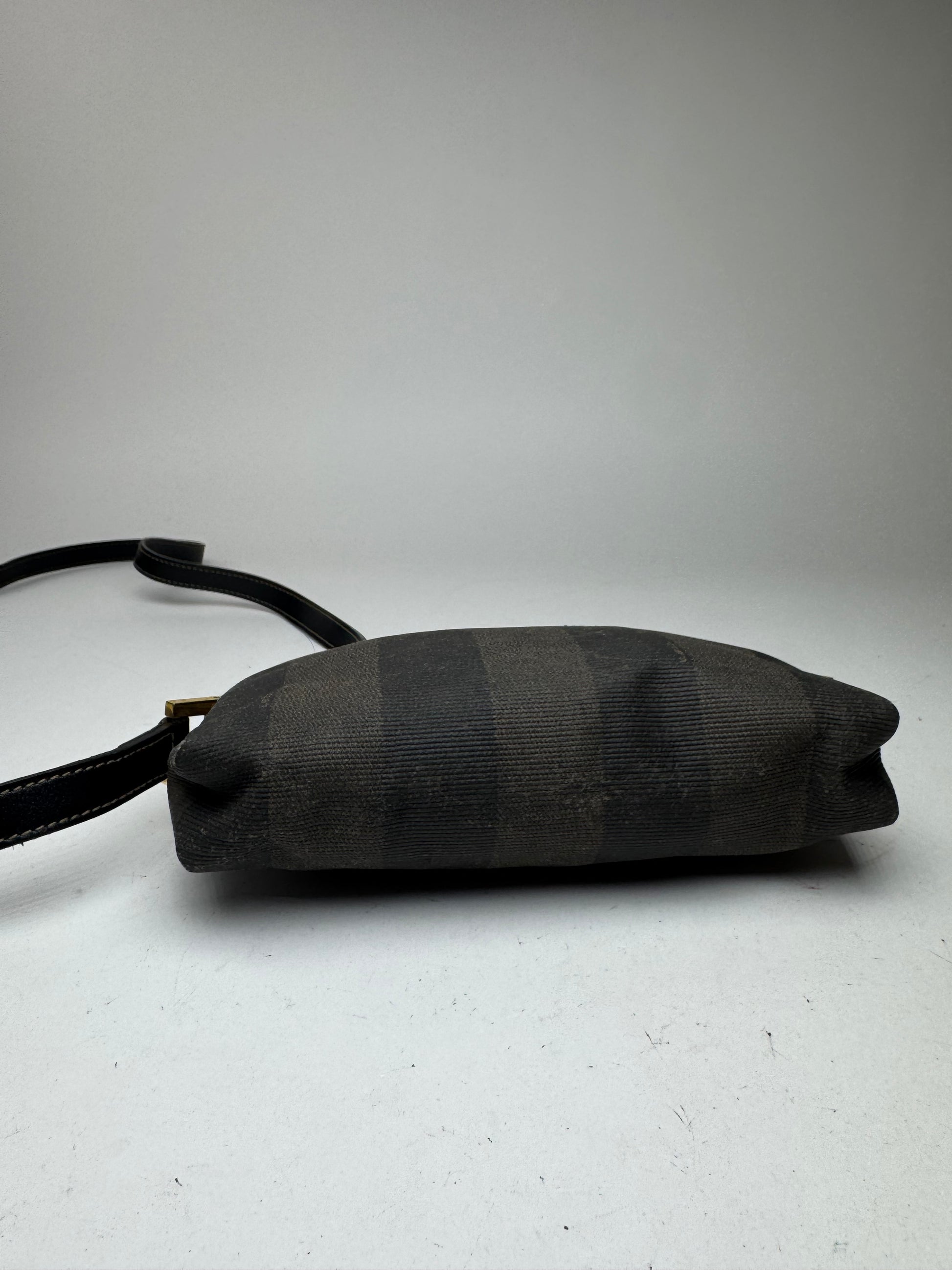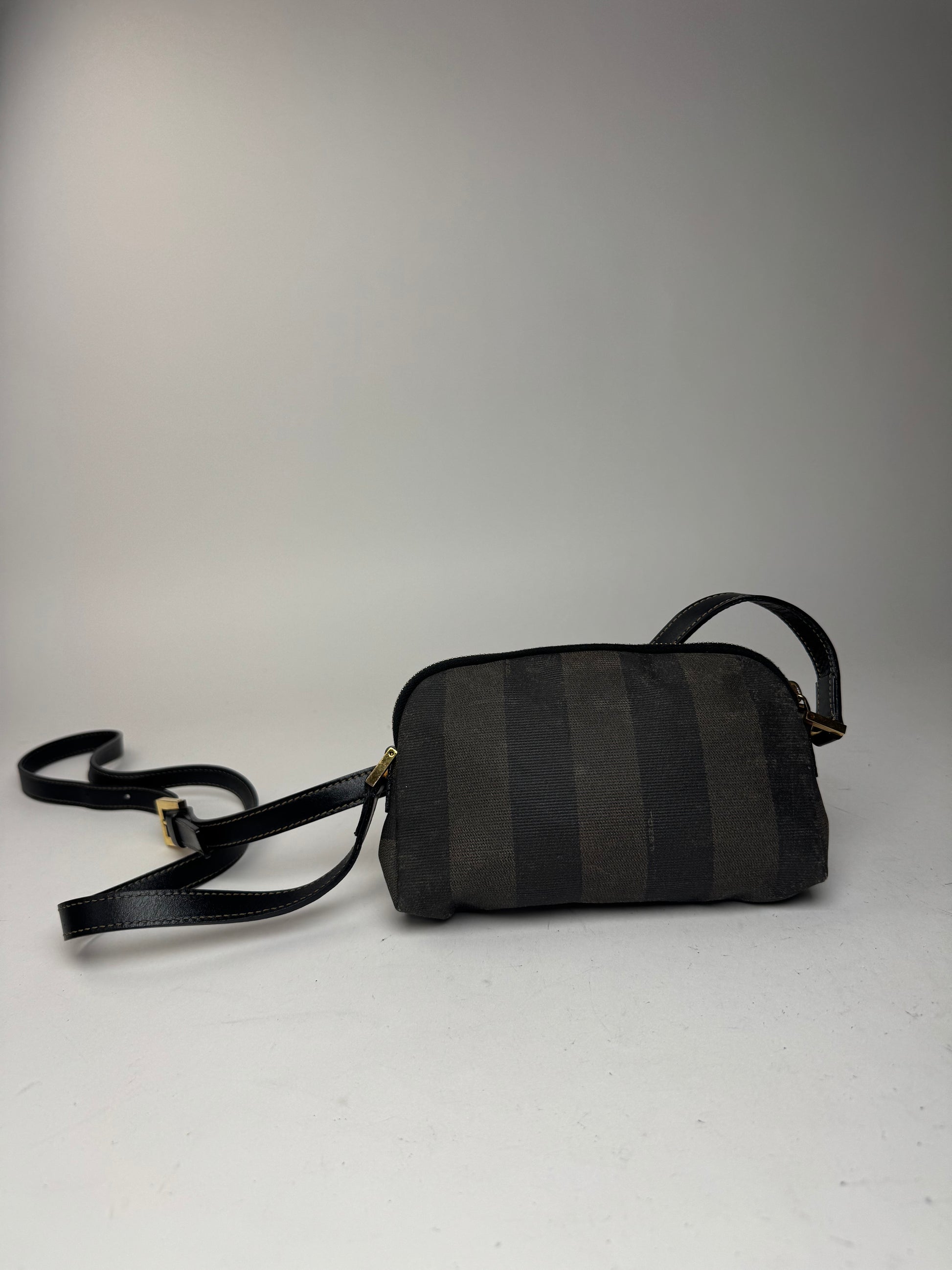 Sac bandoulière vintage Fendi Roma en cuir rayé noir marron