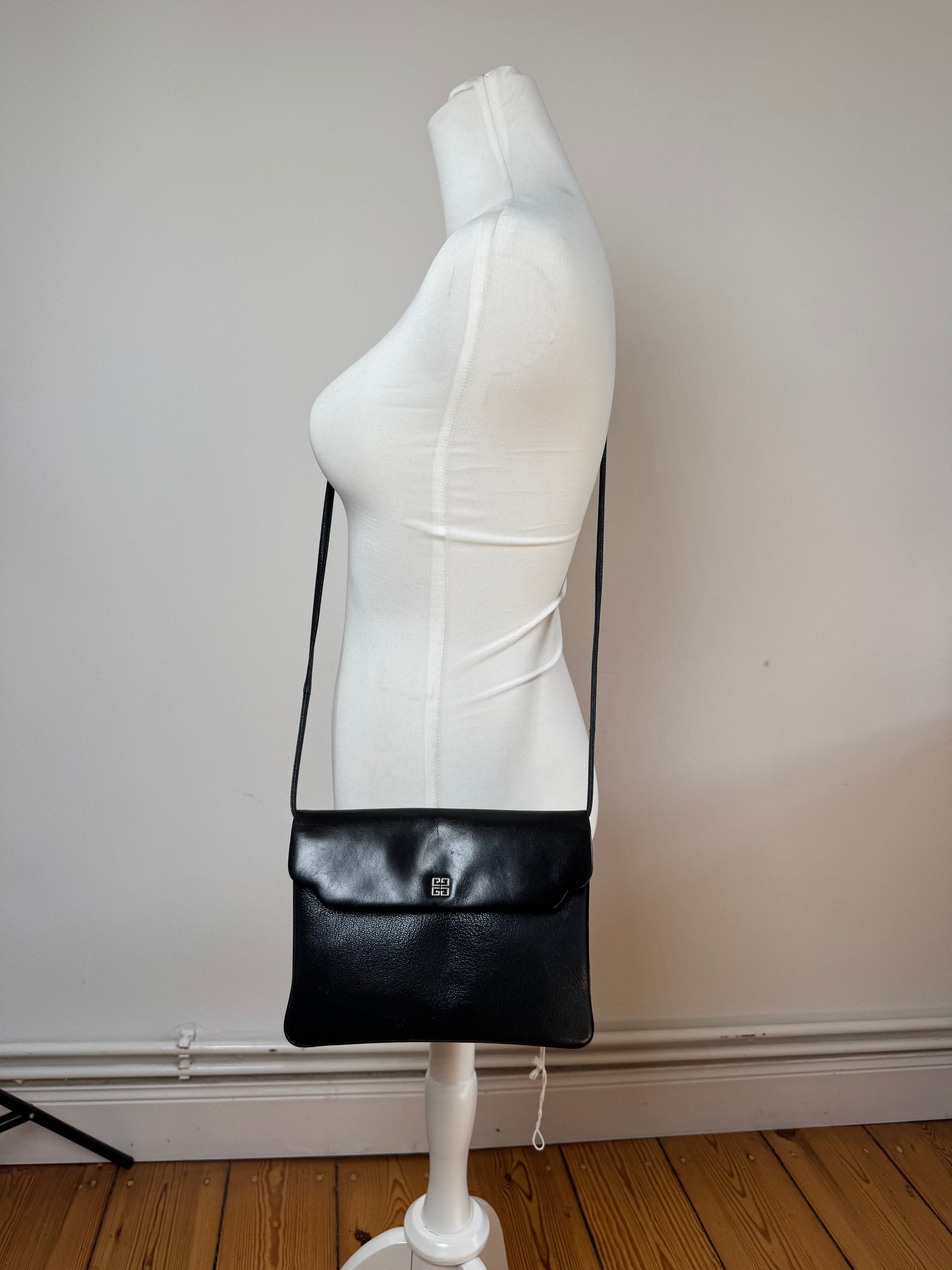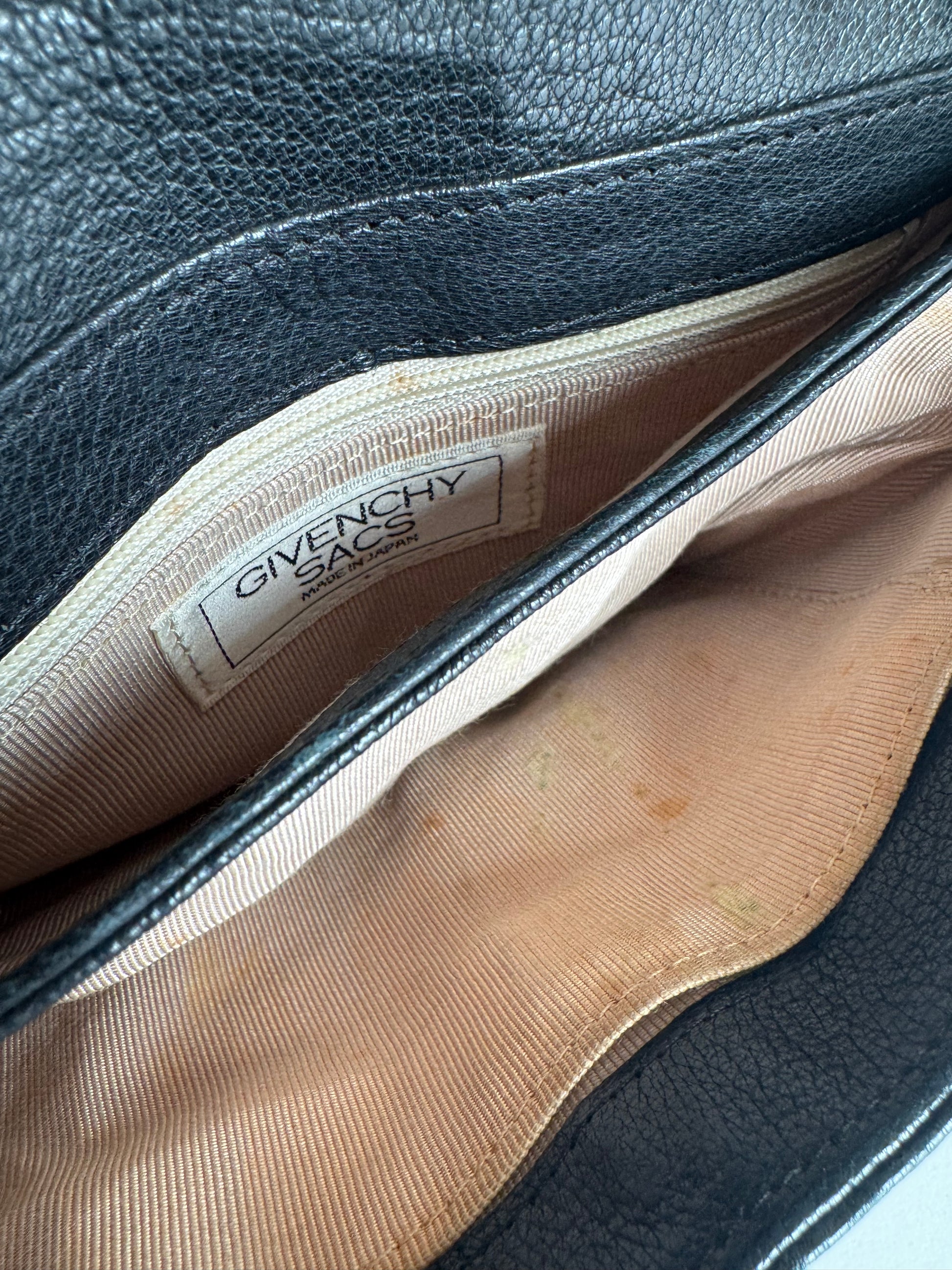 Sac à main double usage en cuir noir vintage GIVENCHY.