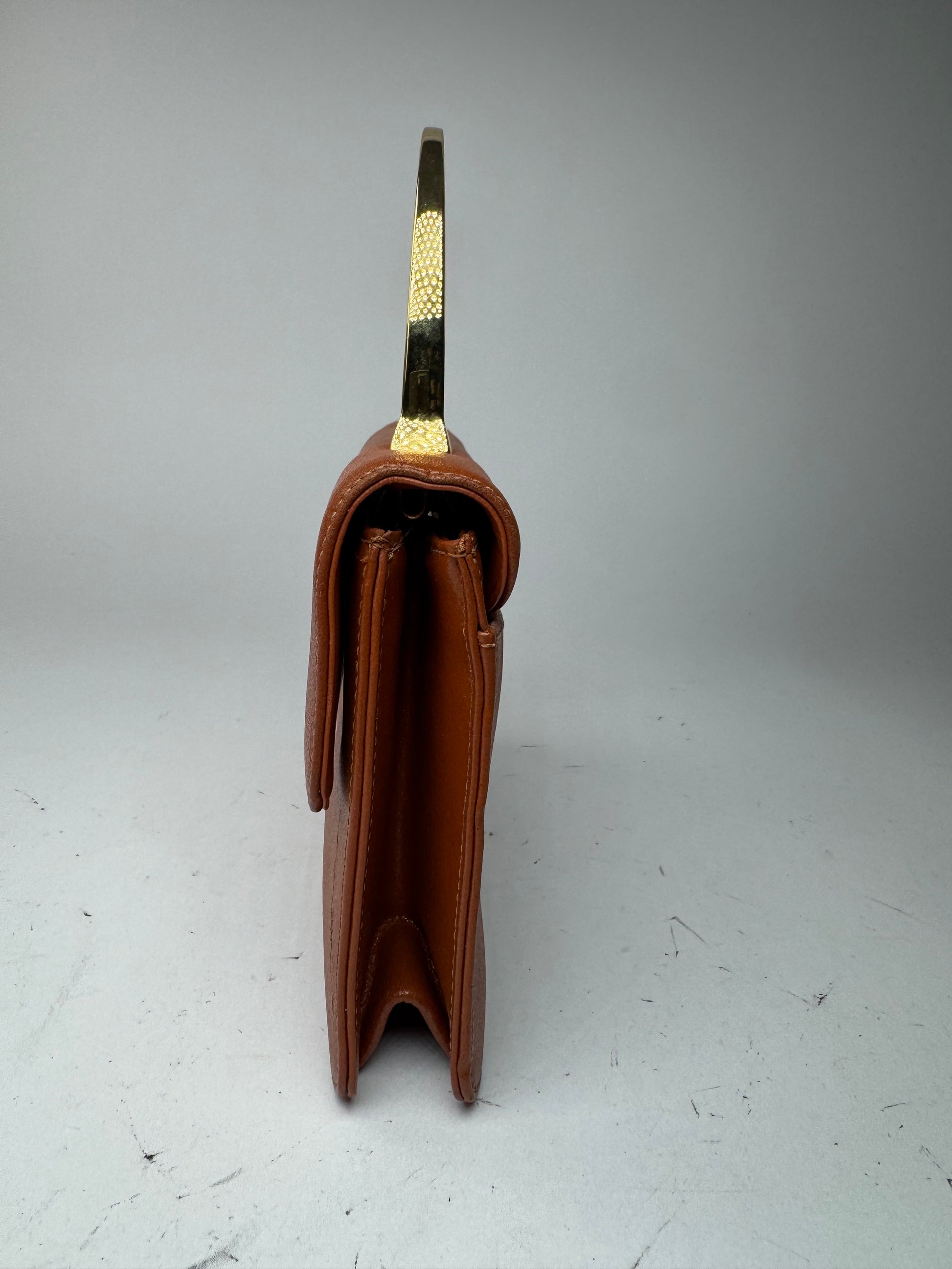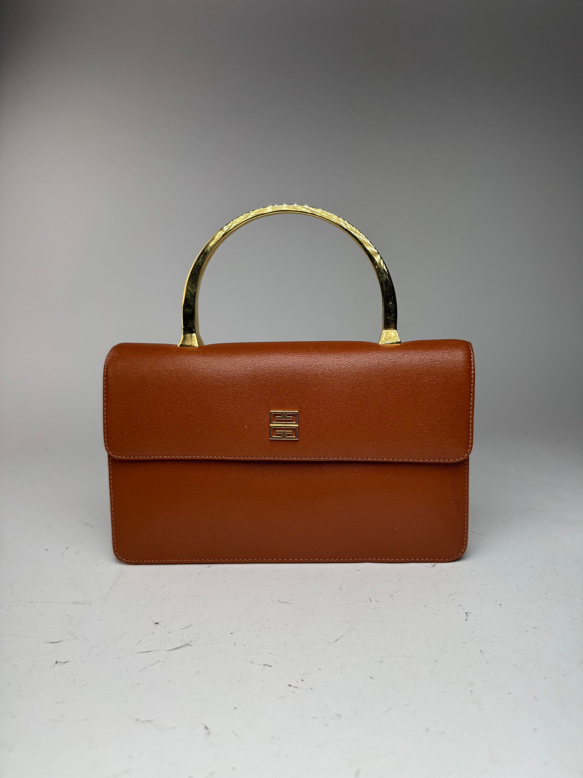 Sac GIVENCHY Vintage en cuir à double usage. Ce sac élégant est confectionné en cuir orange vif et arbore une plaque logo Givenchy en acier doré sur le devant. La poignée est en acier doré assorti, et les passants latéraux permettent d'attacher une bandoulière pour un porté polyvalent. L'emblème Givenchy, conçu comme un « G » entrelacé, s'inspire des motifs géométriques grecs et reflète l'équilibre entre élégance et modernité de la marque.