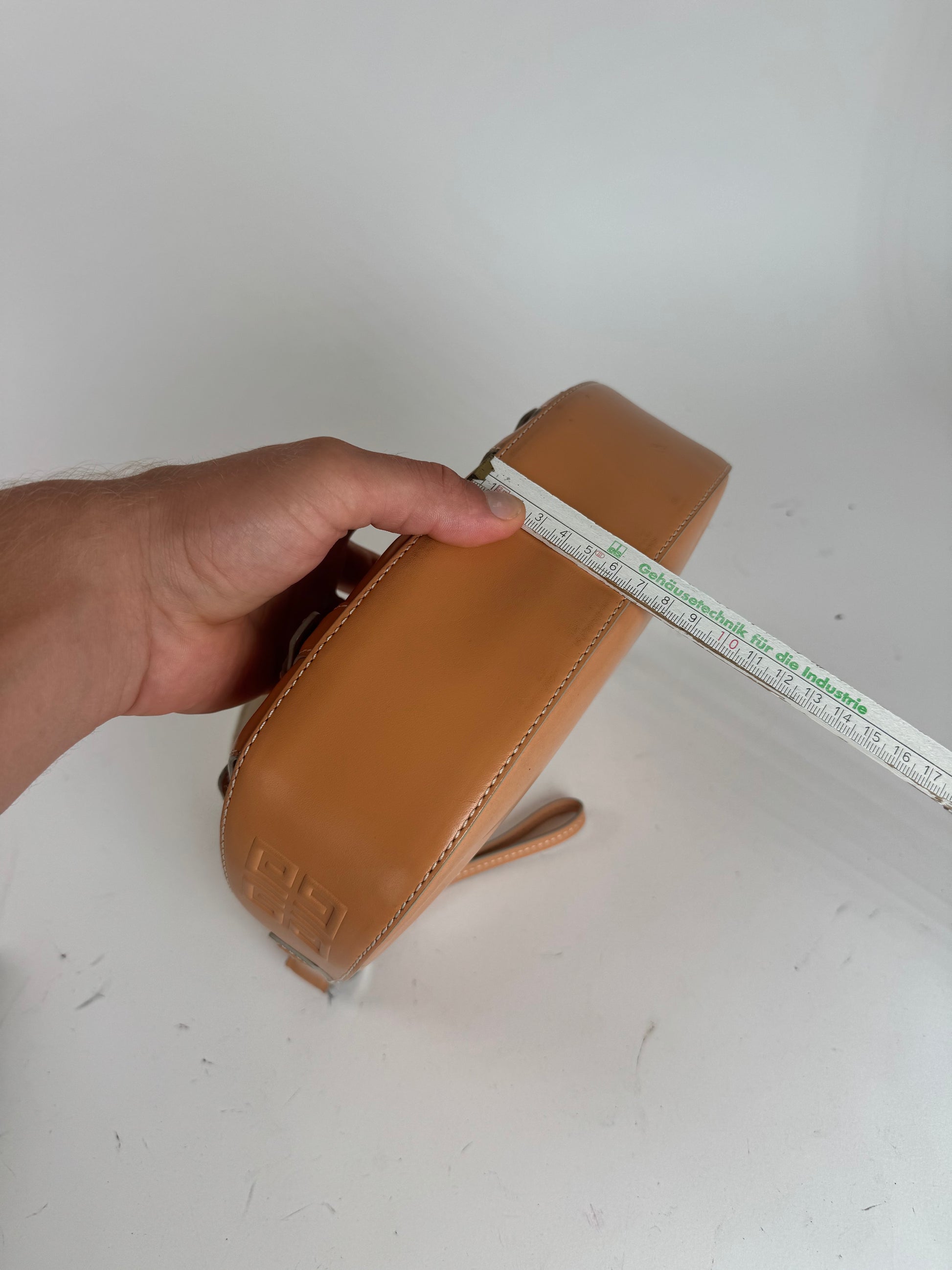 Sac à main GIVENCHY en cuir vintage. Cet élégant sac à main est finement confectionné en cuir couleur camomille. Il est doté d'une fermeture zippée sur le dessus, de deux petites poches avant et d'accessoires en acier argenté. Le logo Givenchy est subtilement embossé sur le côté.