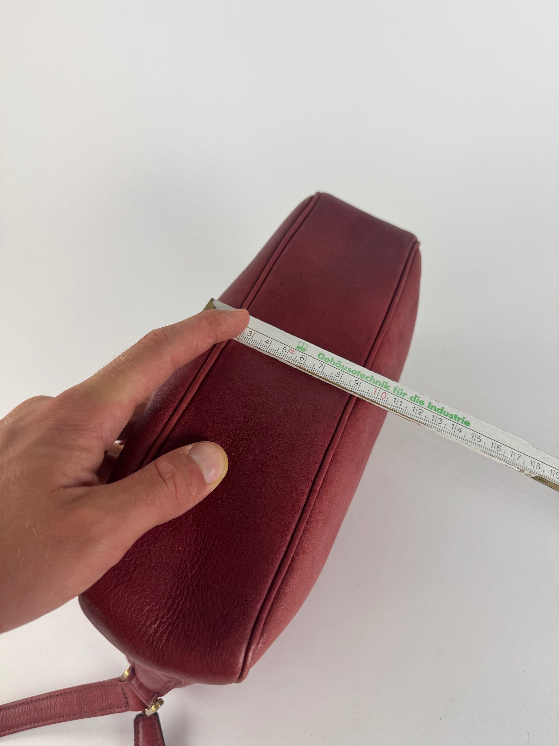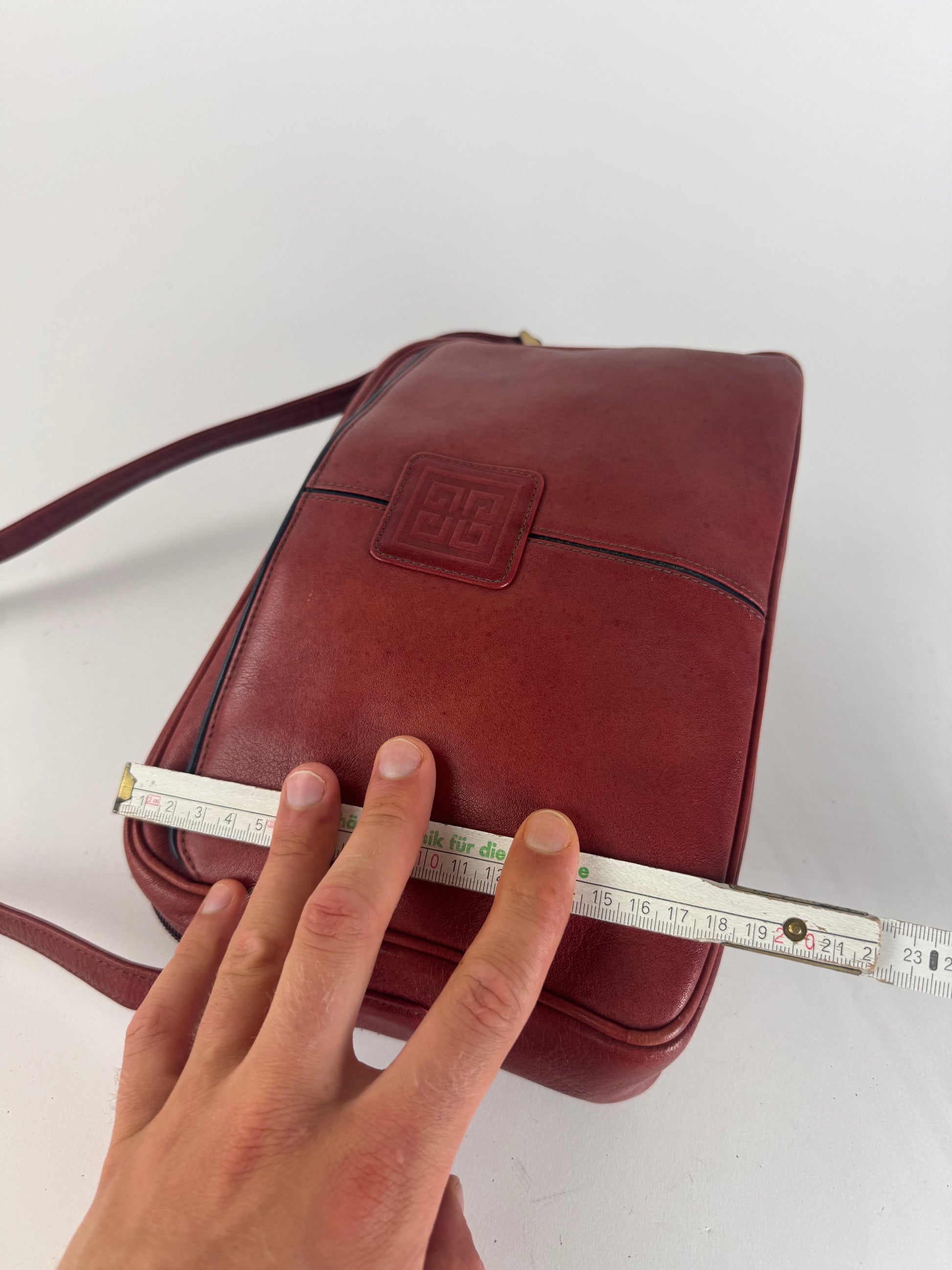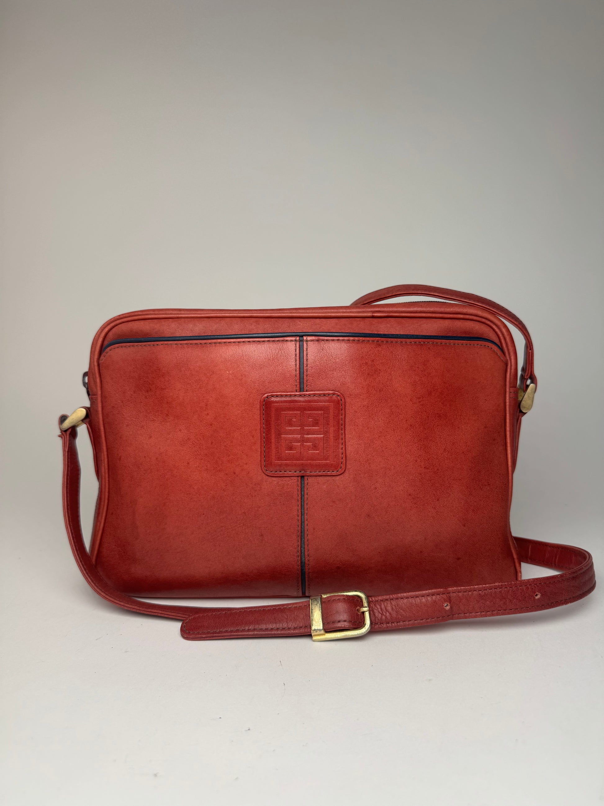 Sac bandoulière en cuir à logo GIVENCHY. Ce sac vintage est confectionné en cuir rouge et arbore une plaque logo Givenchy en acier doré sur le devant. Sa bandoulière réglable permet un porté épaule confortable. Fondée en 1952, Givenchy s'est fait connaître pour son élégance raffinée et ses créations structurées, alliant style parisien classique et minimalisme moderne. Doublé de cuir noir, ce sac est fabriqué en Italie.