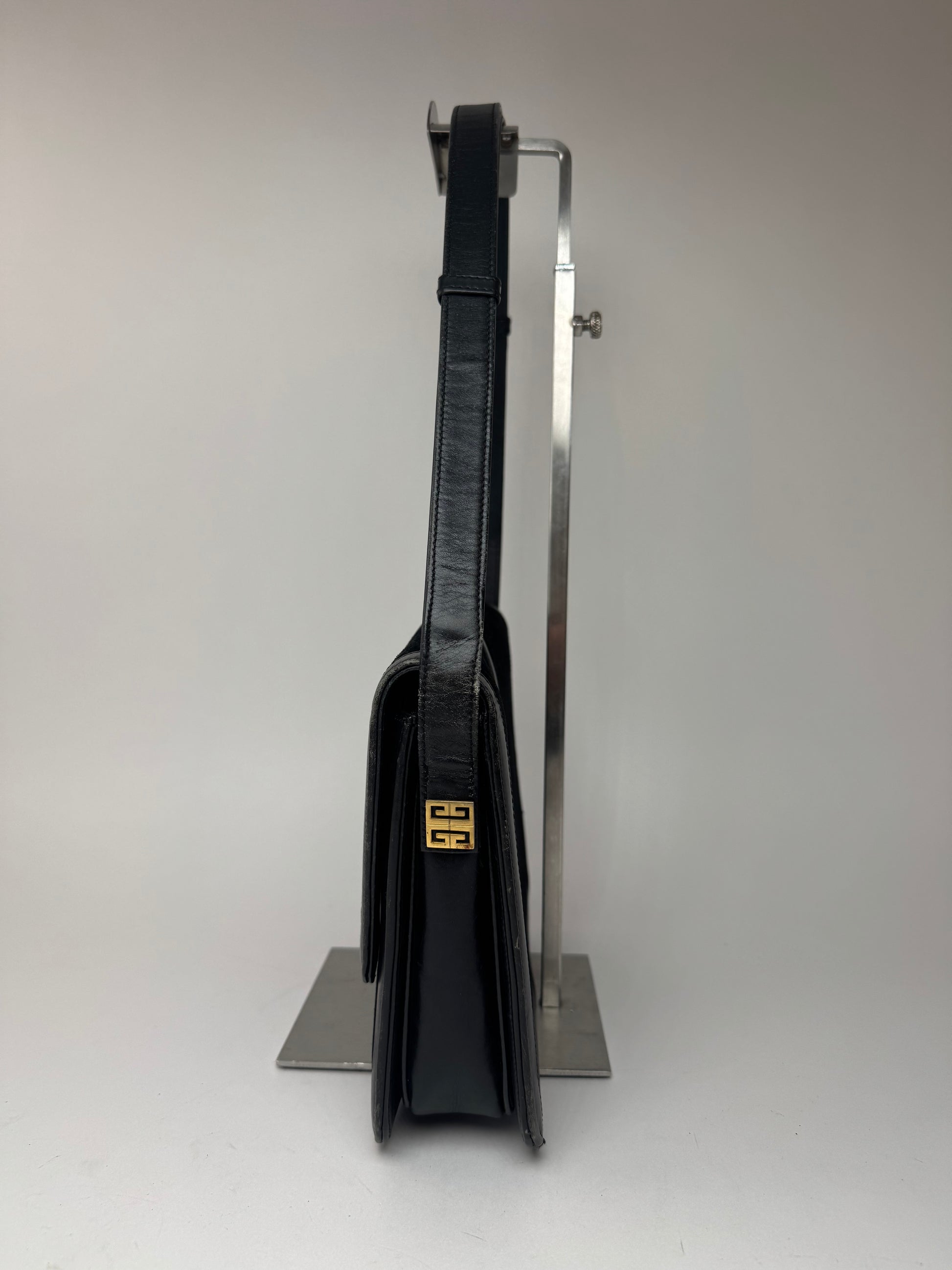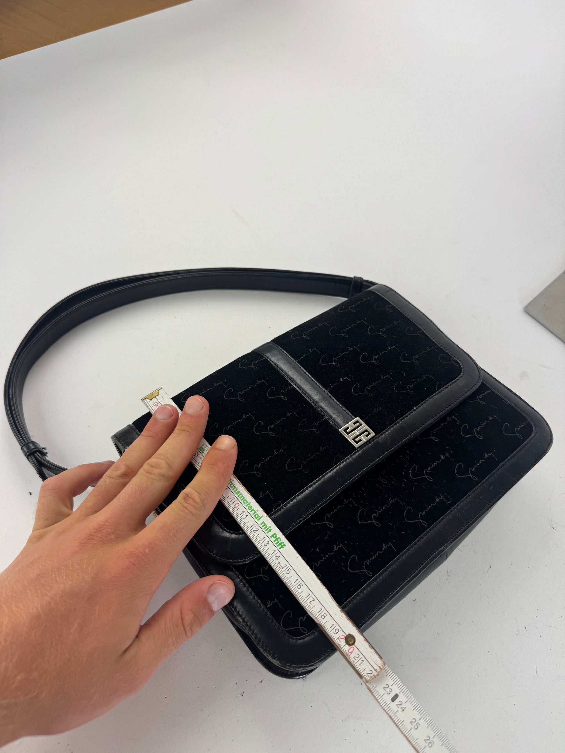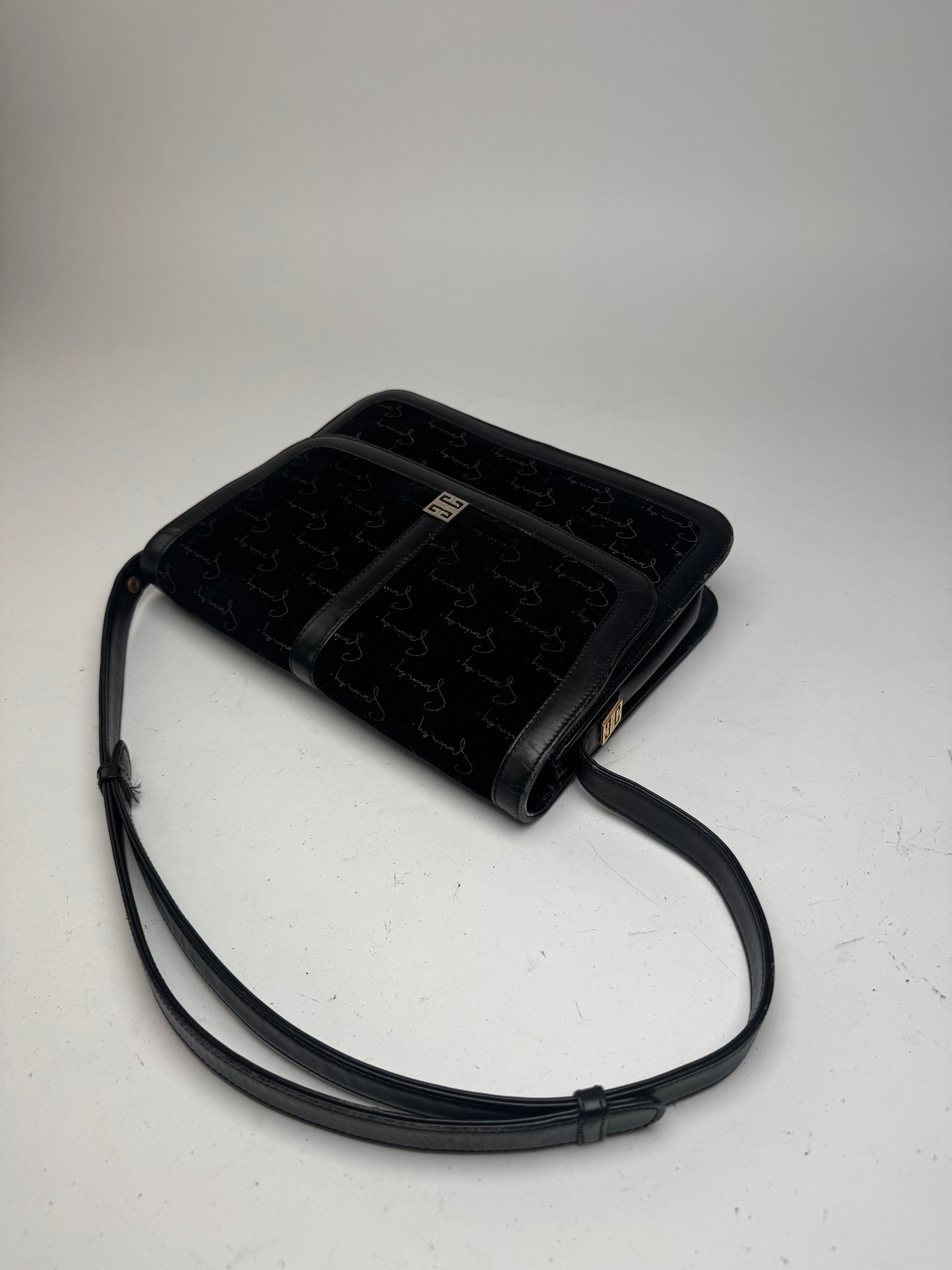 Sac vintage Givenchy en laine et cuir monogramme noir marron